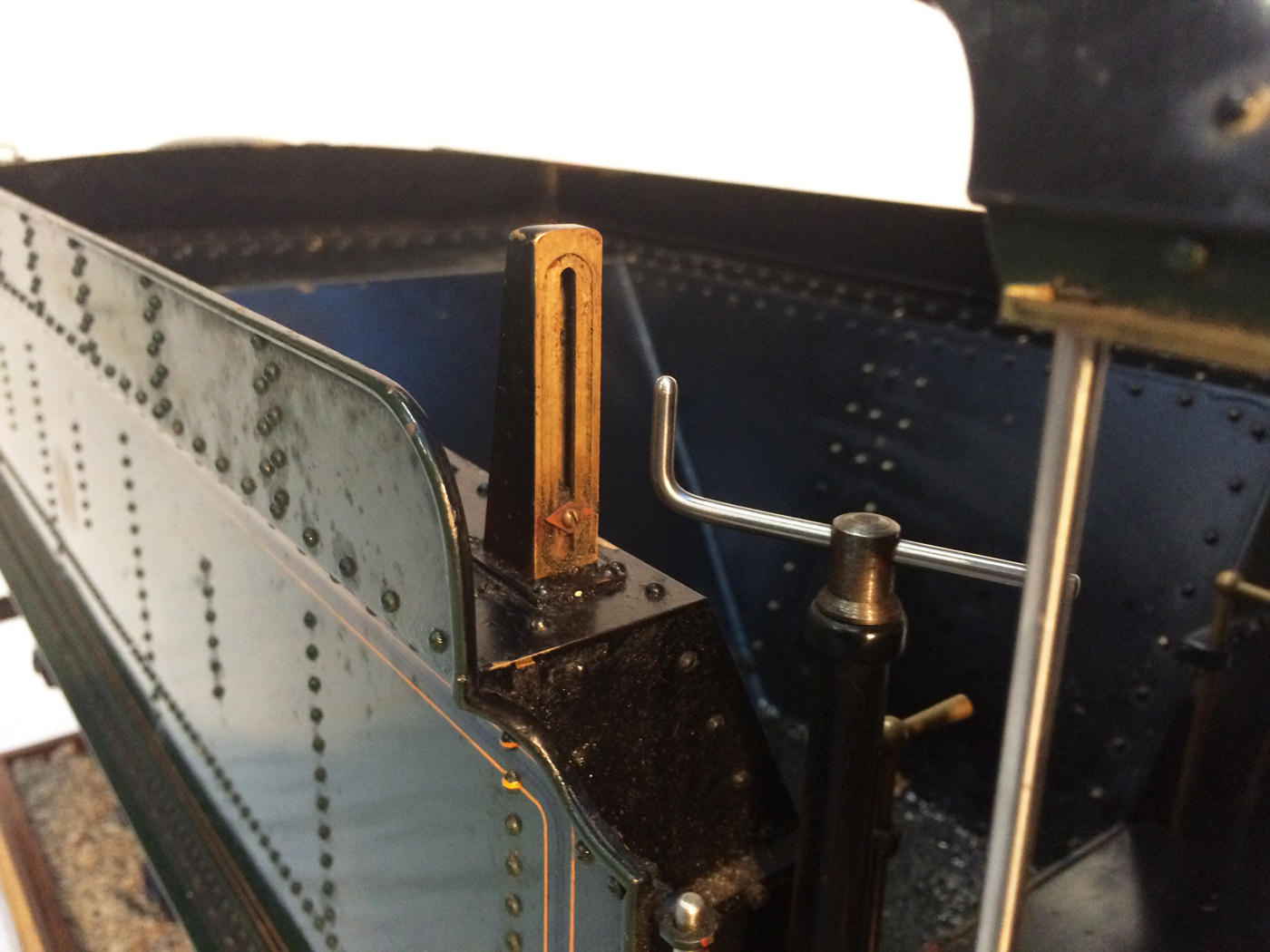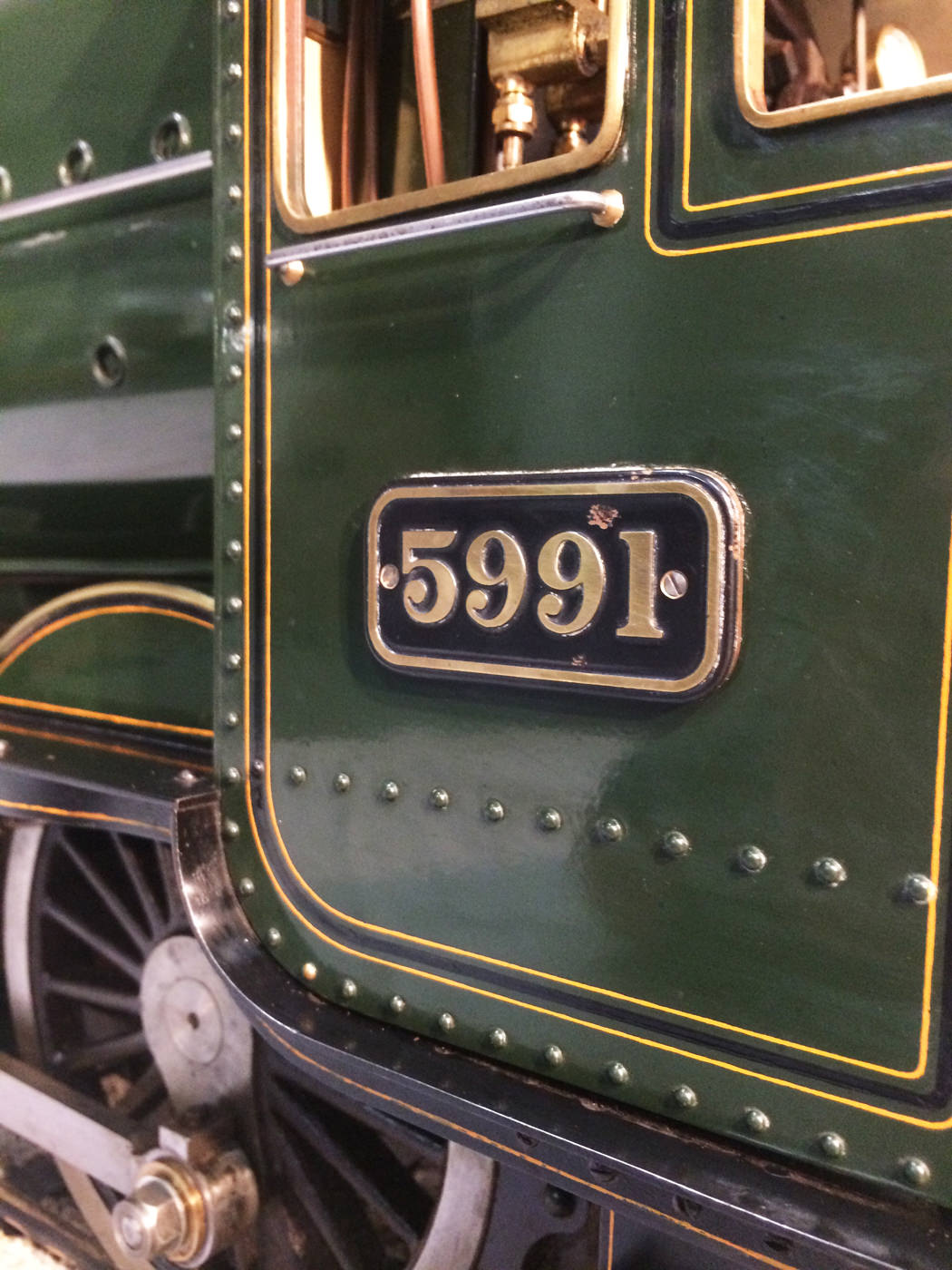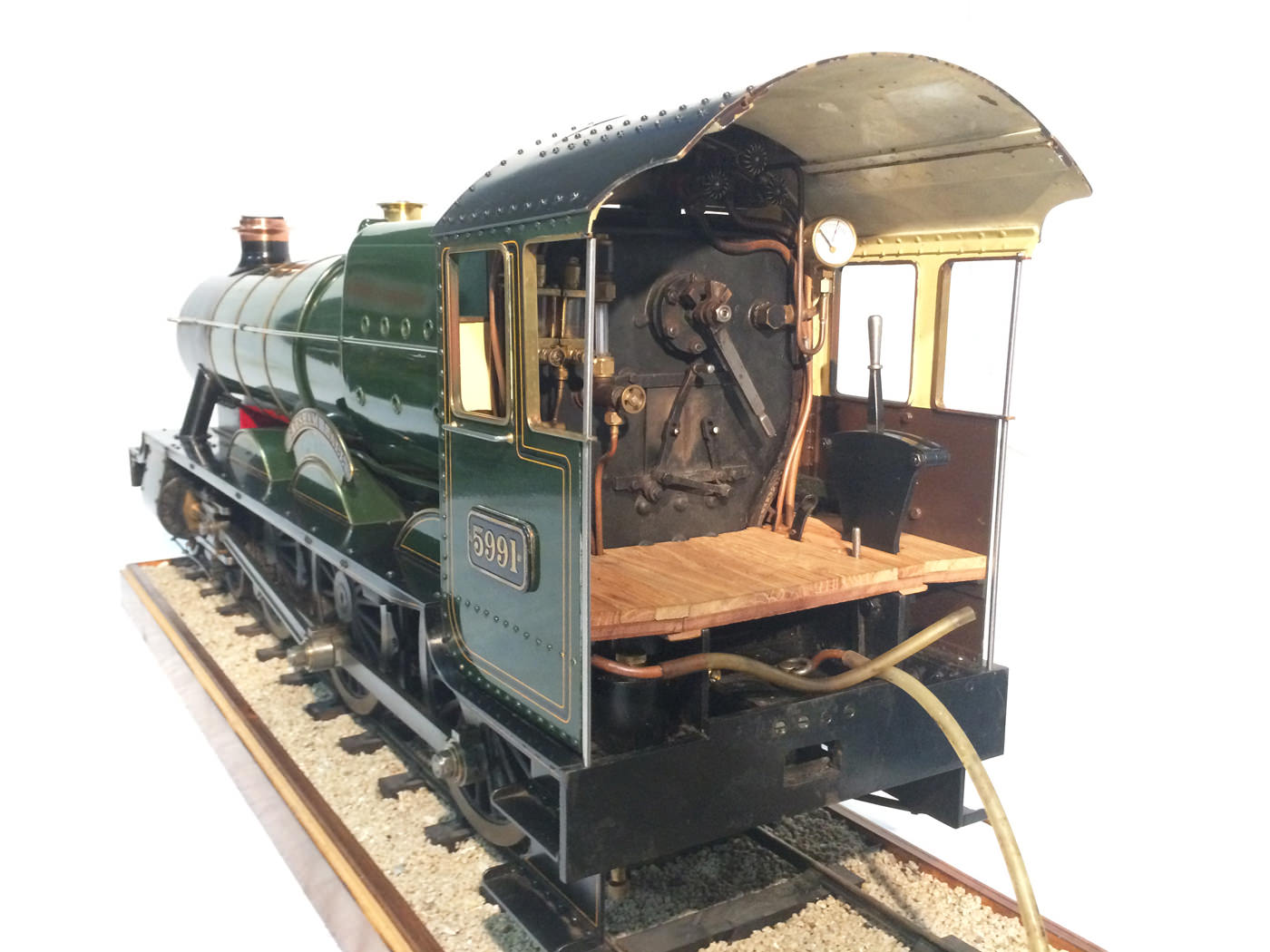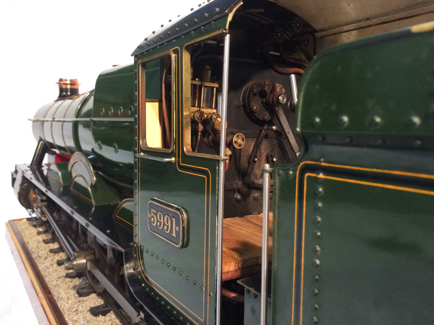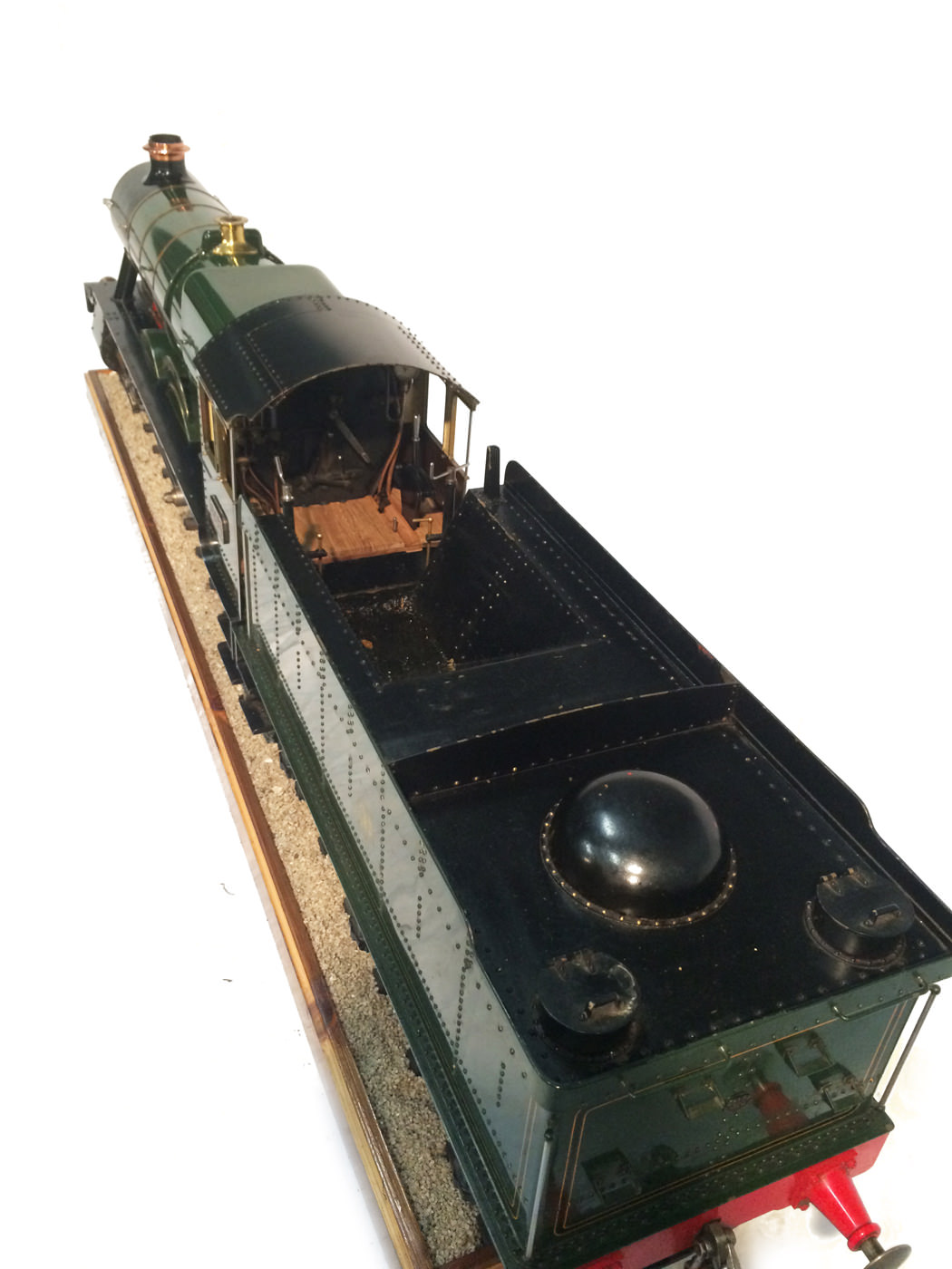 As implied, this is made to the Greenly drawings, and as such is not an absolutely perfect, prototypically accurate and detailed model.  That said, it's not far off, and is certainly a very nice looking and reliable steamer ready to perform.  There are twin injectors, a mechanical axle pump and of course the hand pump in the tender for the water.  Lubrication is through a displacement hydrostatic lubricator, feeding through twin sight feeds on the footplate.  Draincocks are of course footplate operated, and the reverser is quite an unusual sprung pole reverser.  You push down on the lever and it releases from a notch under the arc.  It's surprisingly comfortable to use, and certainly does away with all that winding if you intend using the loco on the ground level where points and the opportunity to shunt present themselves.  A great loco to perhaps get involved with the GL5 world!