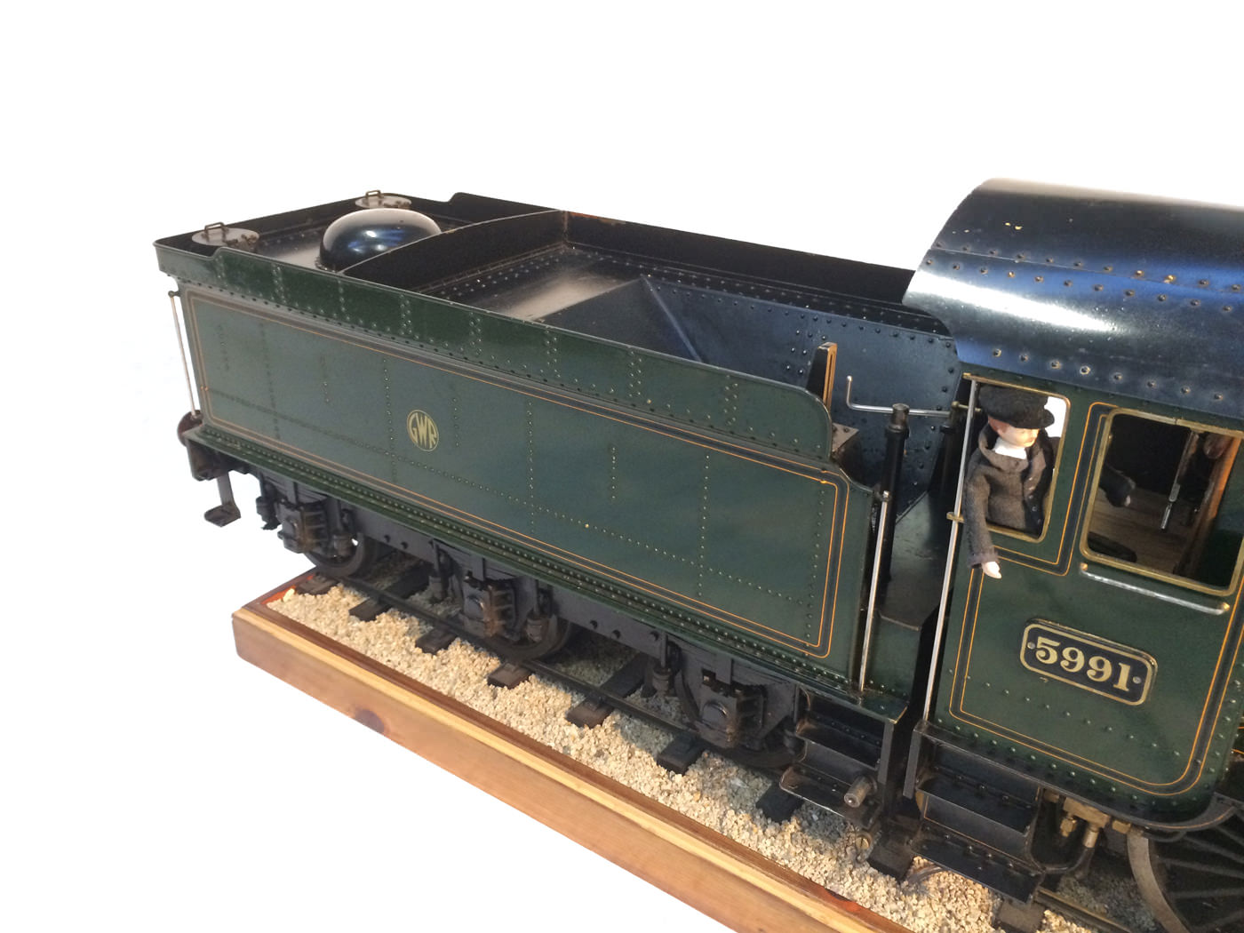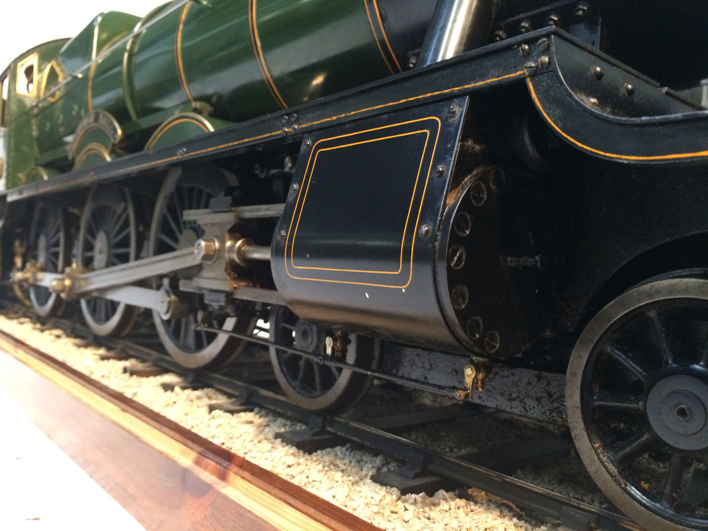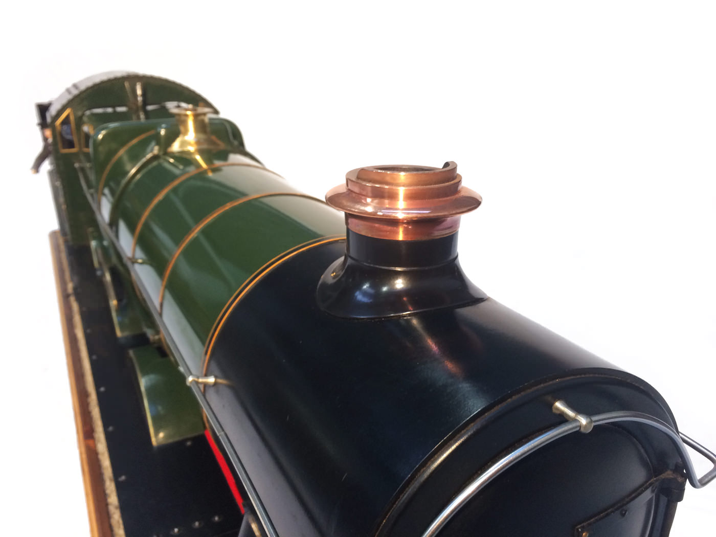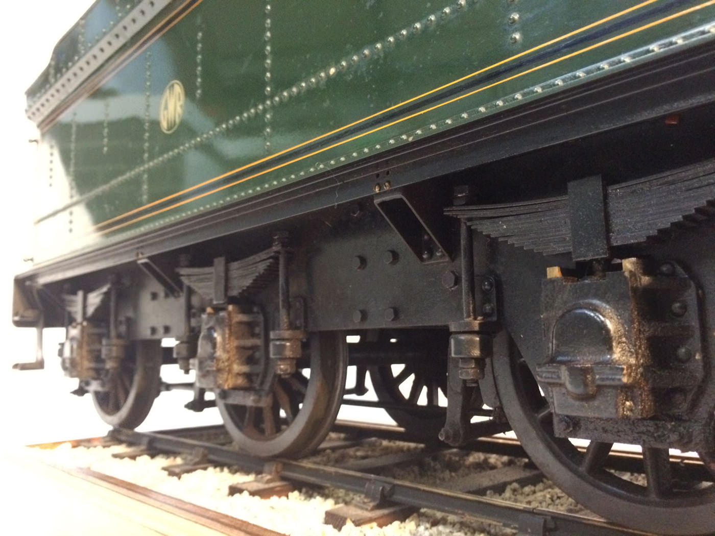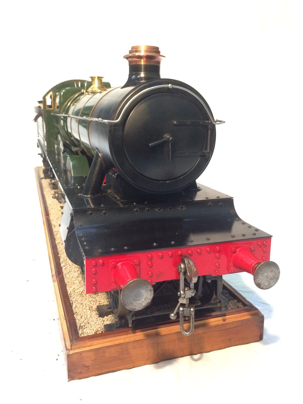 As implied, this is made to the Greenly drawings, and as such is not an absolutely perfect, prototypically accurate and detailed model.  That said, it's not far off, and is certainly a very nice looking and reliable steamer ready to perform.  There are twin injectors, a mechanical axle pump and of course the hand pump in the tender for the water.  Lubrication is through a displacement hydrostatic lubricator, feeding through twin sight feeds on the footplate.  Draincocks are of course footplate operated, and the reverser is quite an unusual sprung pole reverser.  You push down on the lever and it releases from a notch under the arc.  It's surprisingly comfortable to use, and certainly does away with all that winding if you intend using the loco on the ground level where points and the opportunity to shunt present themselves.  A great loco to perhaps get involved with the GL5 world!