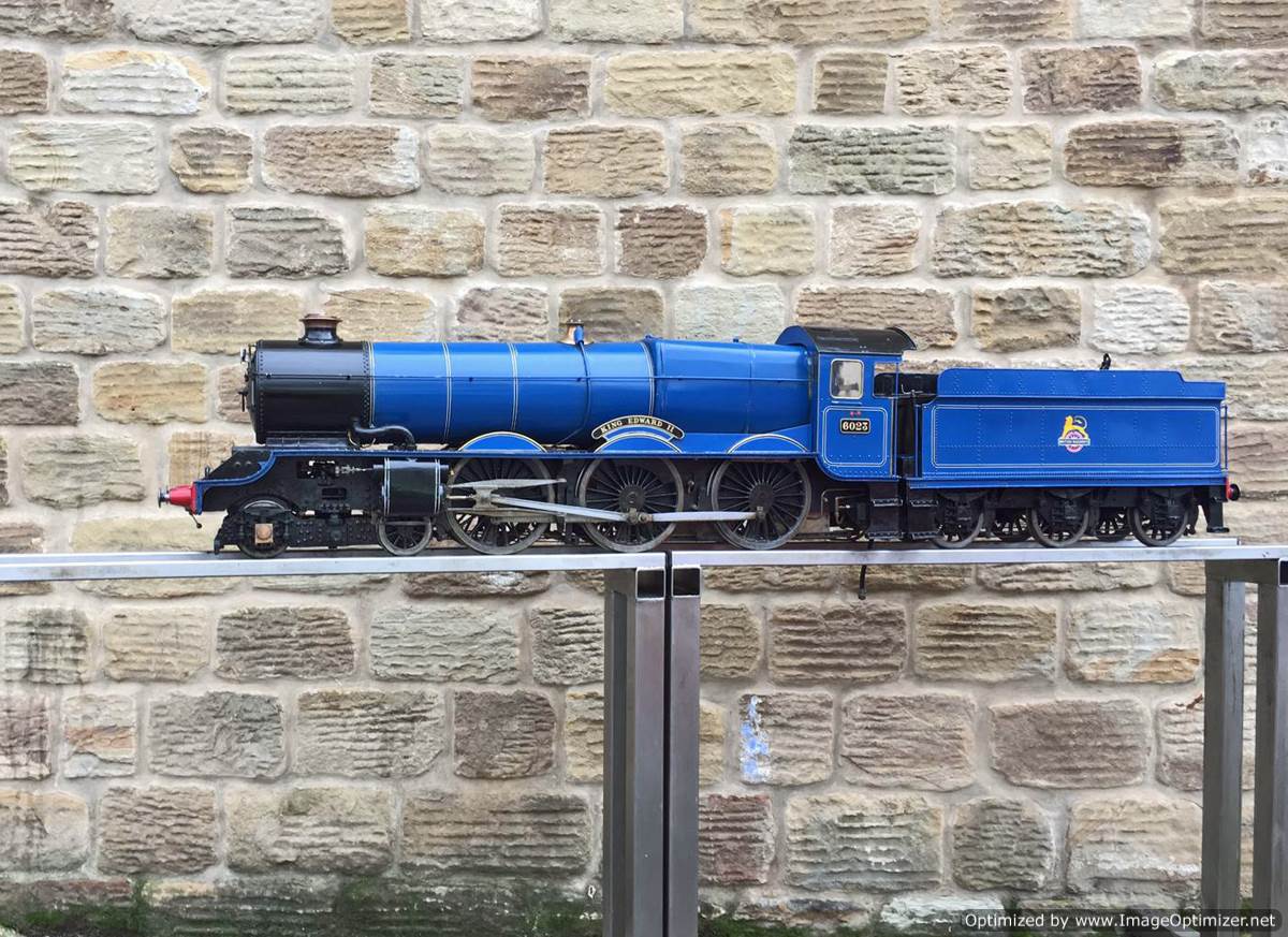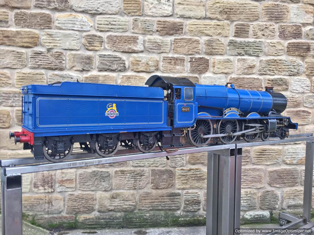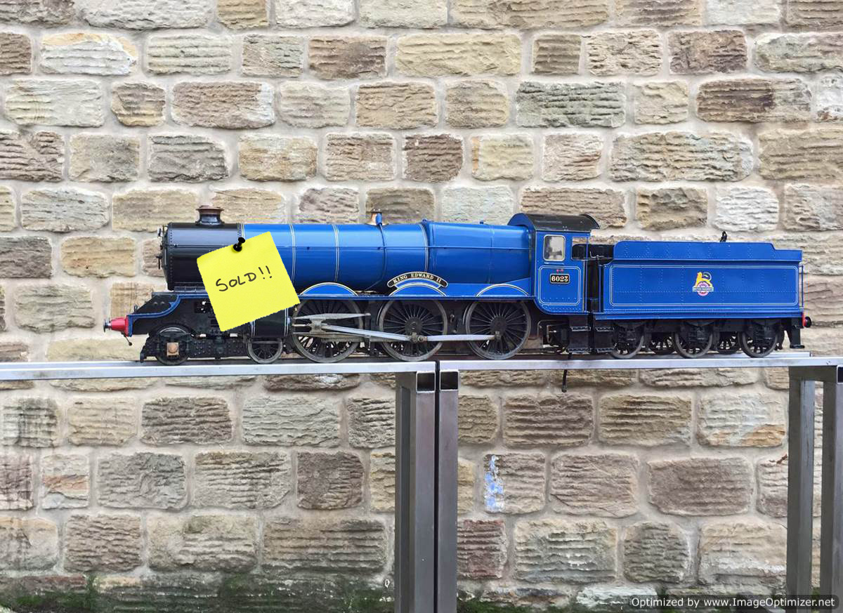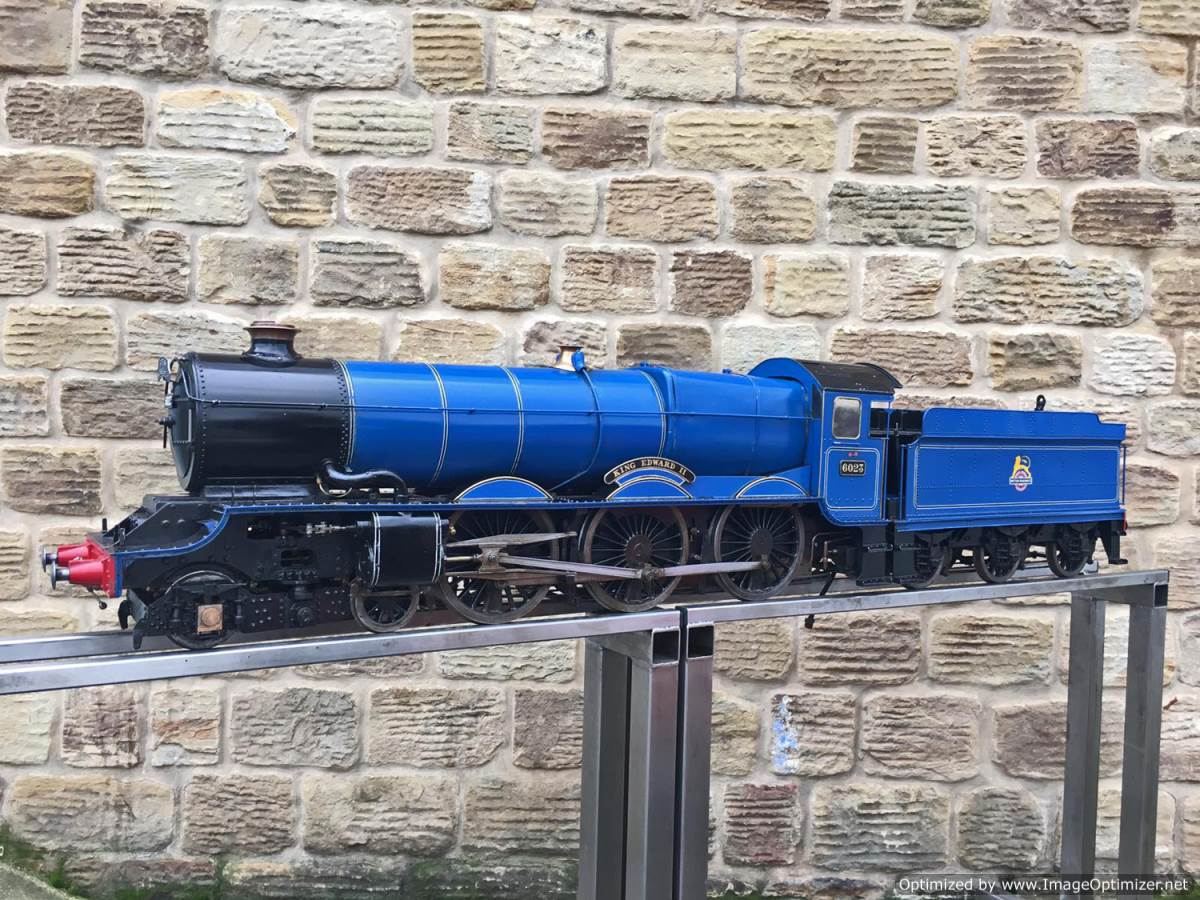 Here we have a 5″ gauge GWR King Class, 6023 ‘King Edward II’. Originally finished in 1996, and made to a good mode engineering 'functional' standard rather than to be a super detailed model. The model has clearly been a popular runner coming with a full and detailed boiler history for the professionally made silver soldered copper boiler, and although showing obvious signs of use,the loco's bottom end is still in good condition without too much wear and tear in any of the bearings. The BR blue is for us a refreshing change from the great many green King's that have been built over the years. The paintwork is a little tired here n there, but it certainly doesn't detract too much from the overall impressive presence of a King in BR blue!