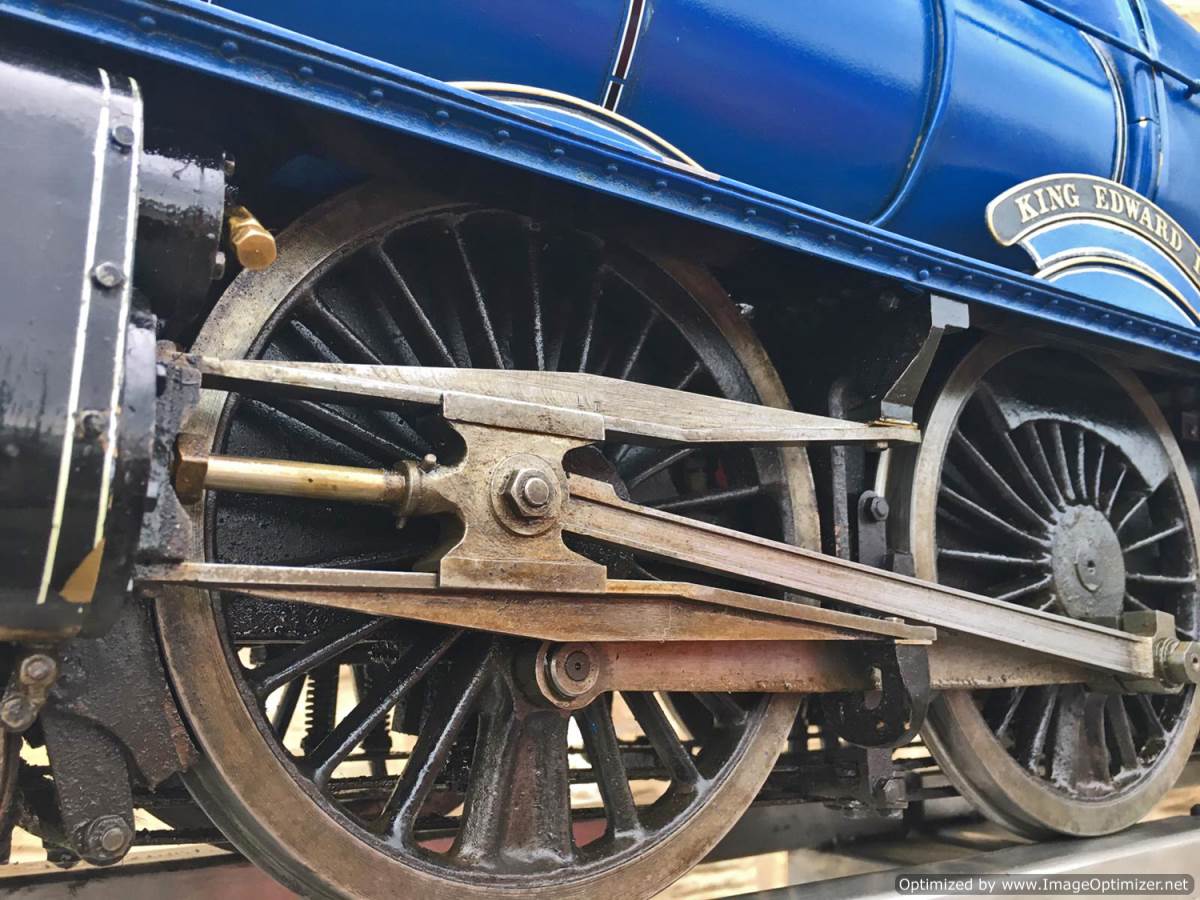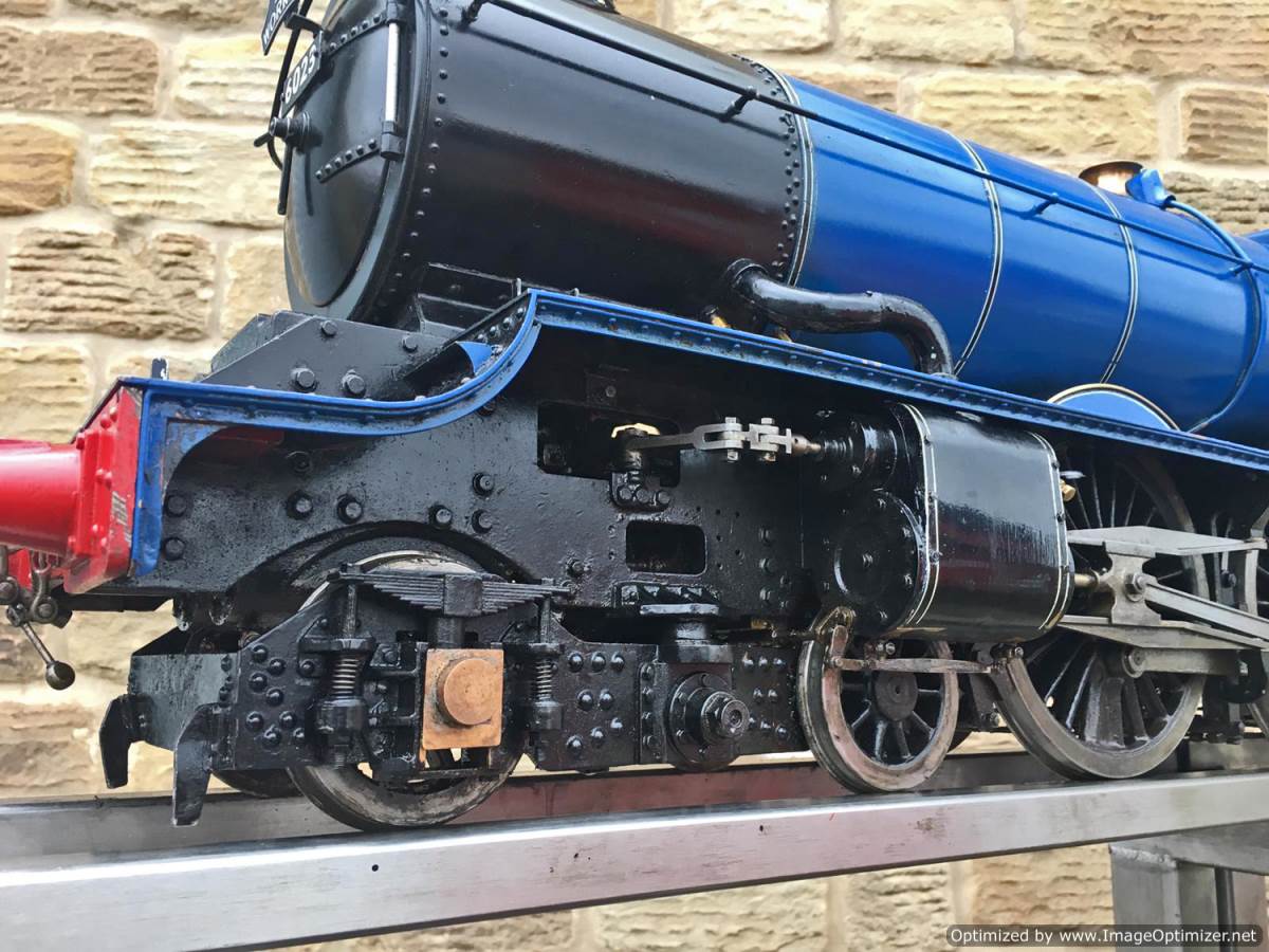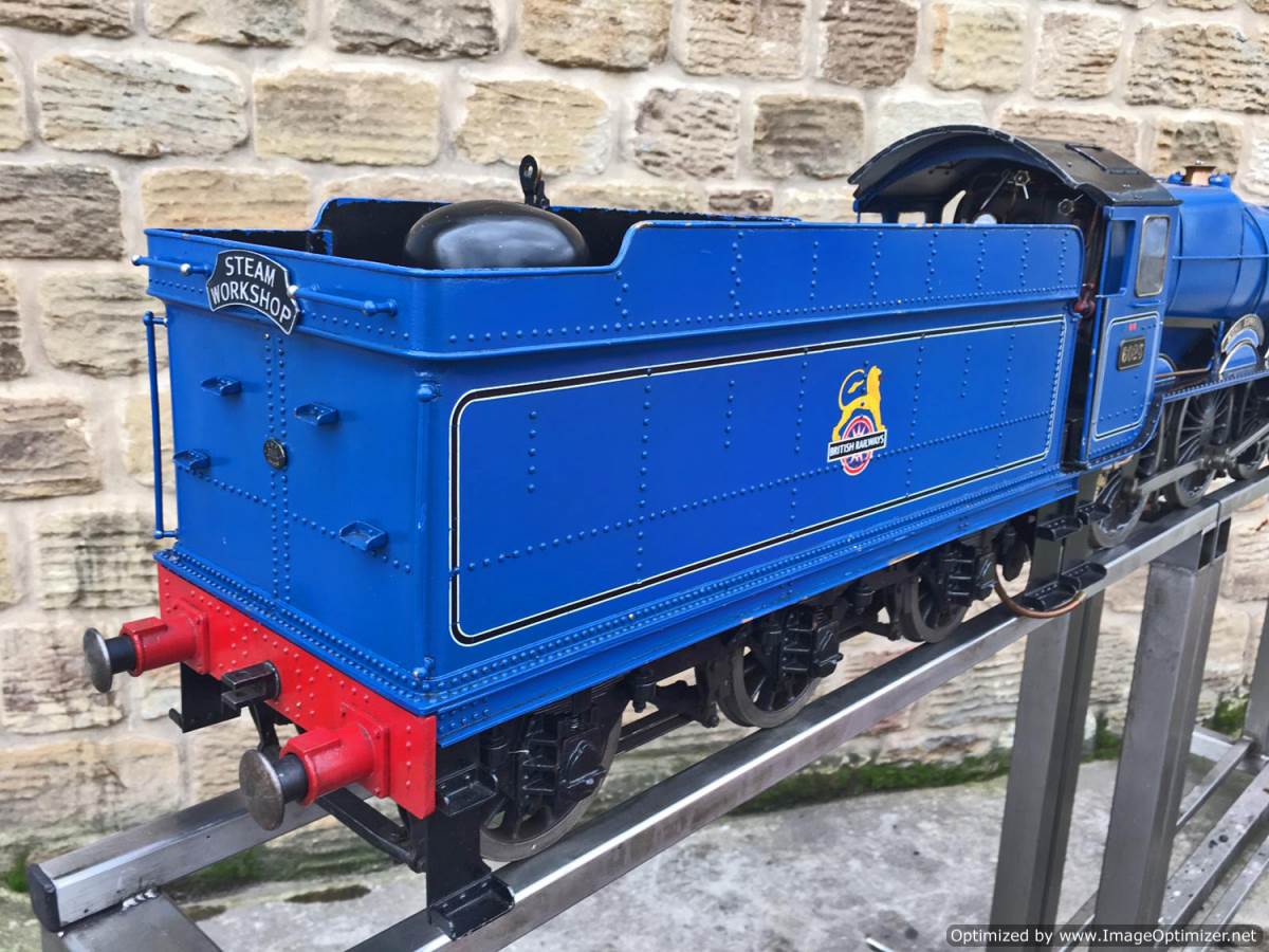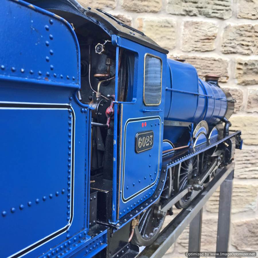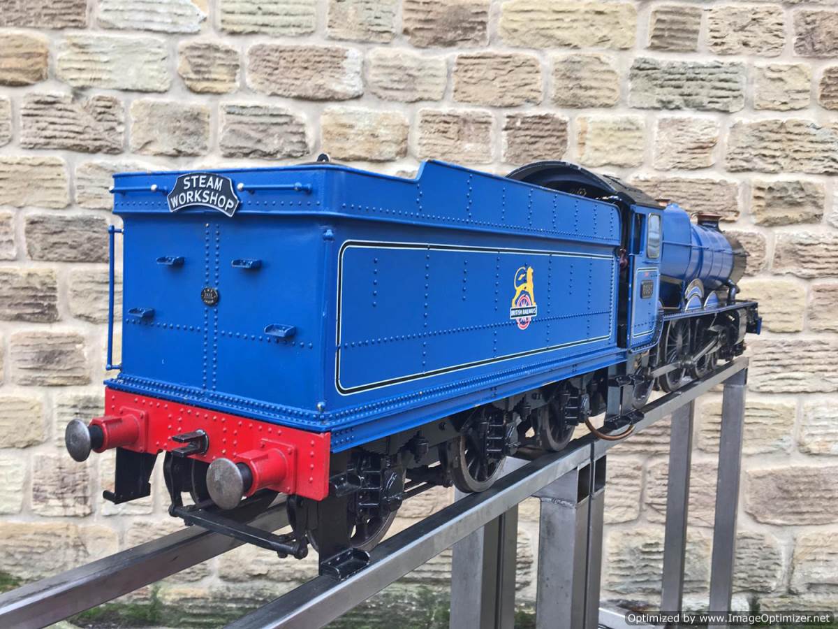 Here we have a 5″ gauge GWR King Class, 6023 ‘King Edward II’. Originally finished in 1996, and made to a good mode engineering 'functional' standard rather than to be a super detailed model. The model has clearly been a popular runner coming with a full and detailed boiler history for the professionally made silver soldered copper boiler, and although showing obvious signs of use,the loco's bottom end is still in good condition without too much wear and tear in any of the bearings. The BR blue is for us a refreshing change from the great many green King's that have been built over the years. The paintwork is a little tired here n there, but it certainly doesn't detract too much from the overall impressive presence of a King in BR blue!