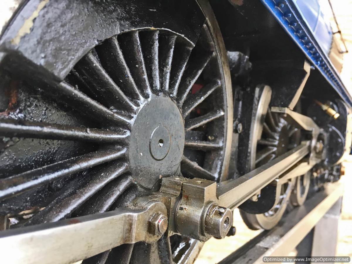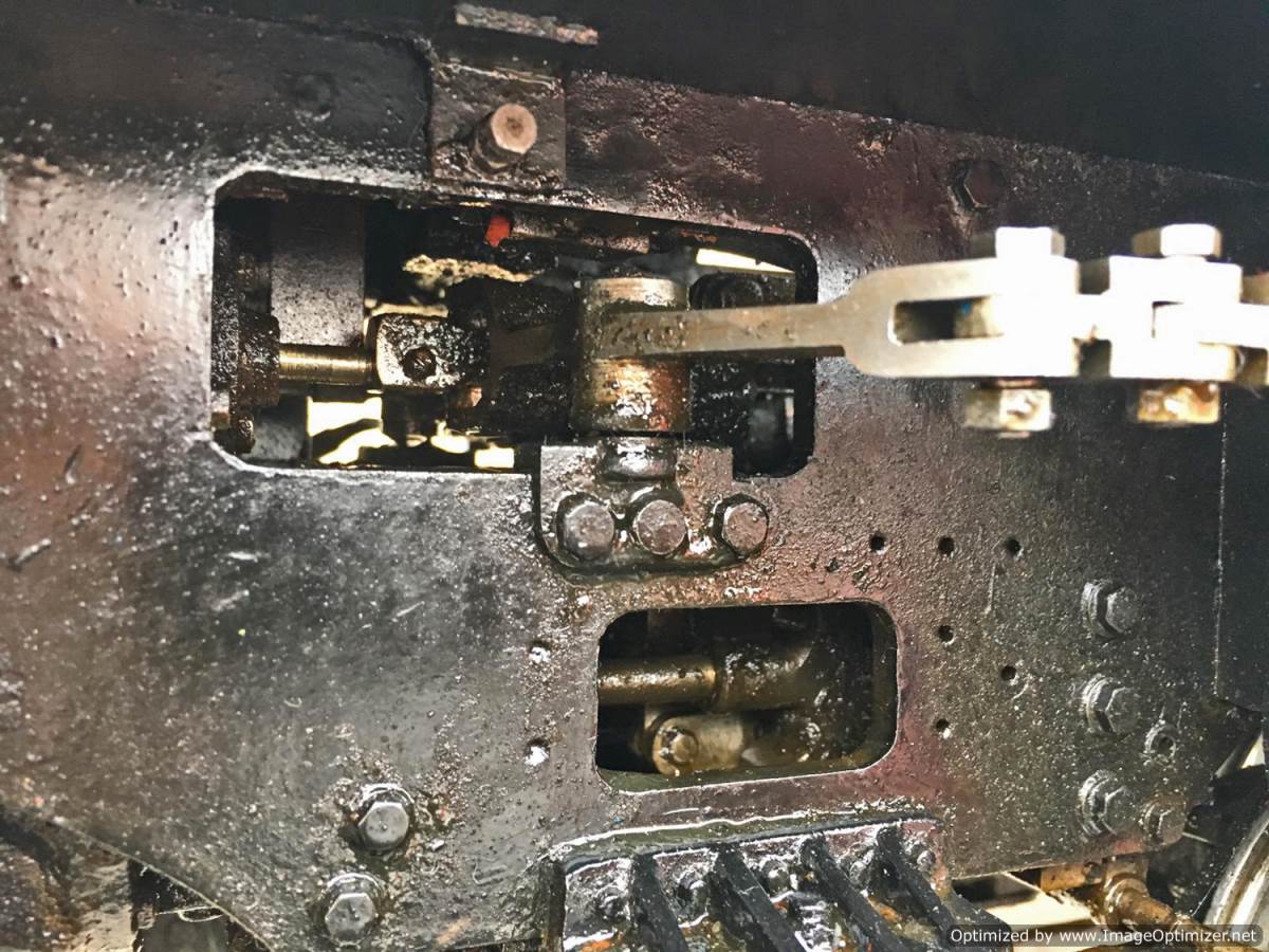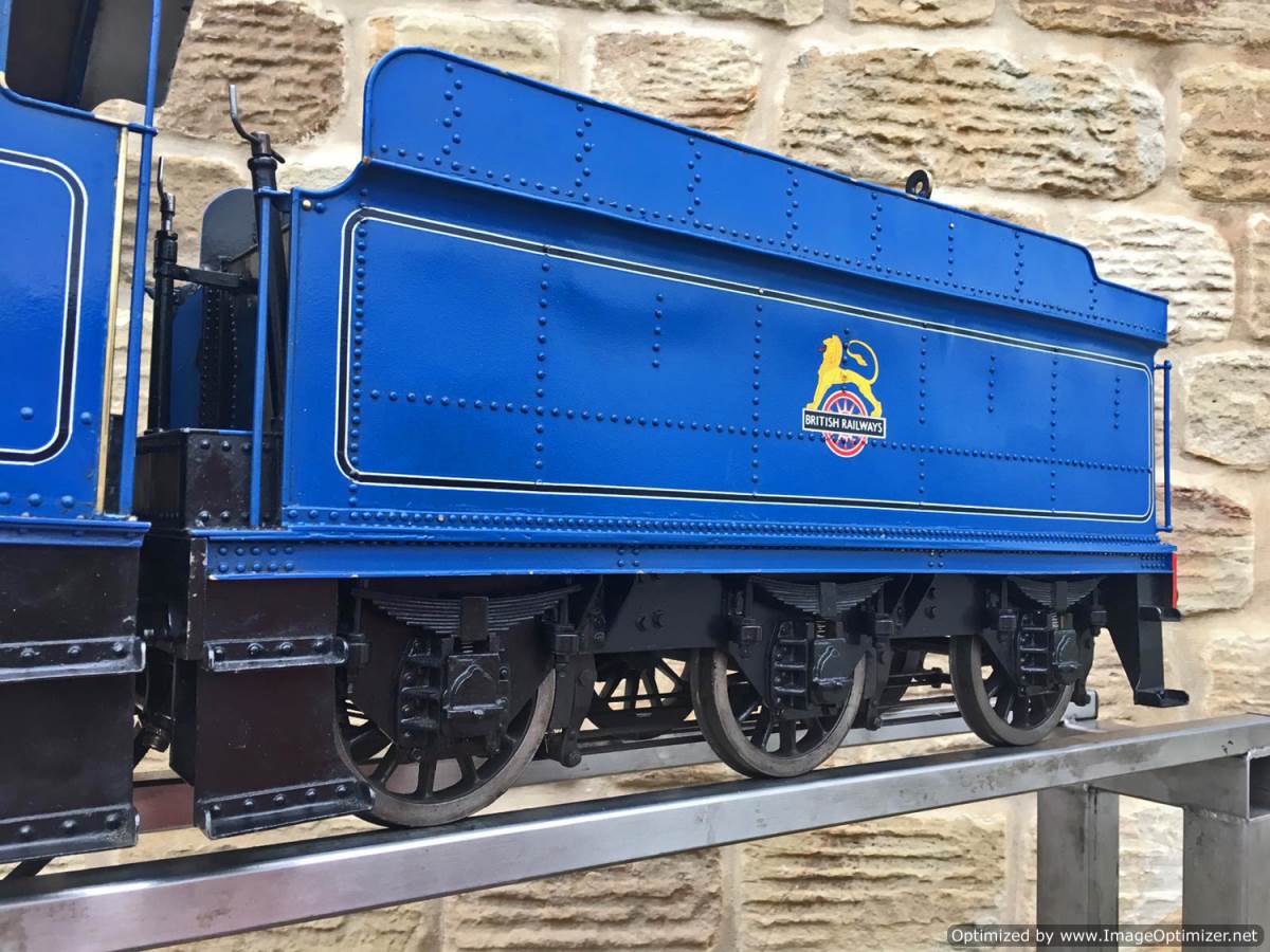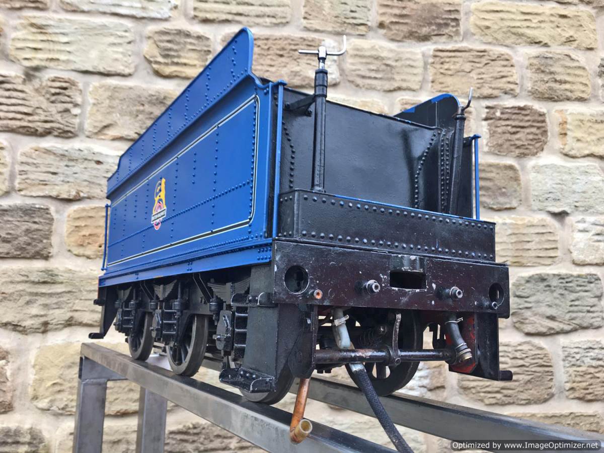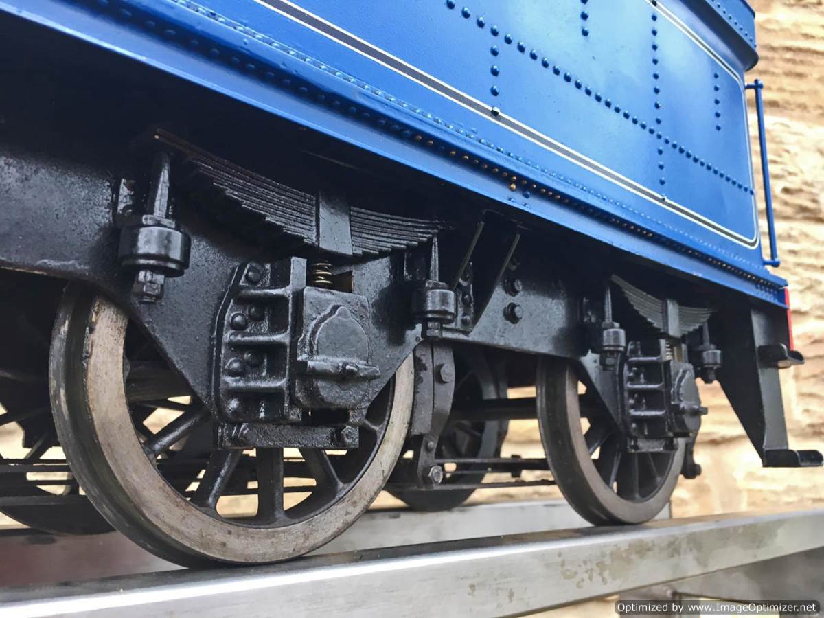 A full 4 cylinder model of course, and fitted with an injector, twin axle pumps between the frames and a footplate mounted bypass valve and of course the hand pump in the tender. There's also a float with handy visual read out on the rear tender pate so you can see how your tender water level is going! Lubrication is mechanical with a large reservoir under the right hand running board in front of the cylinder.