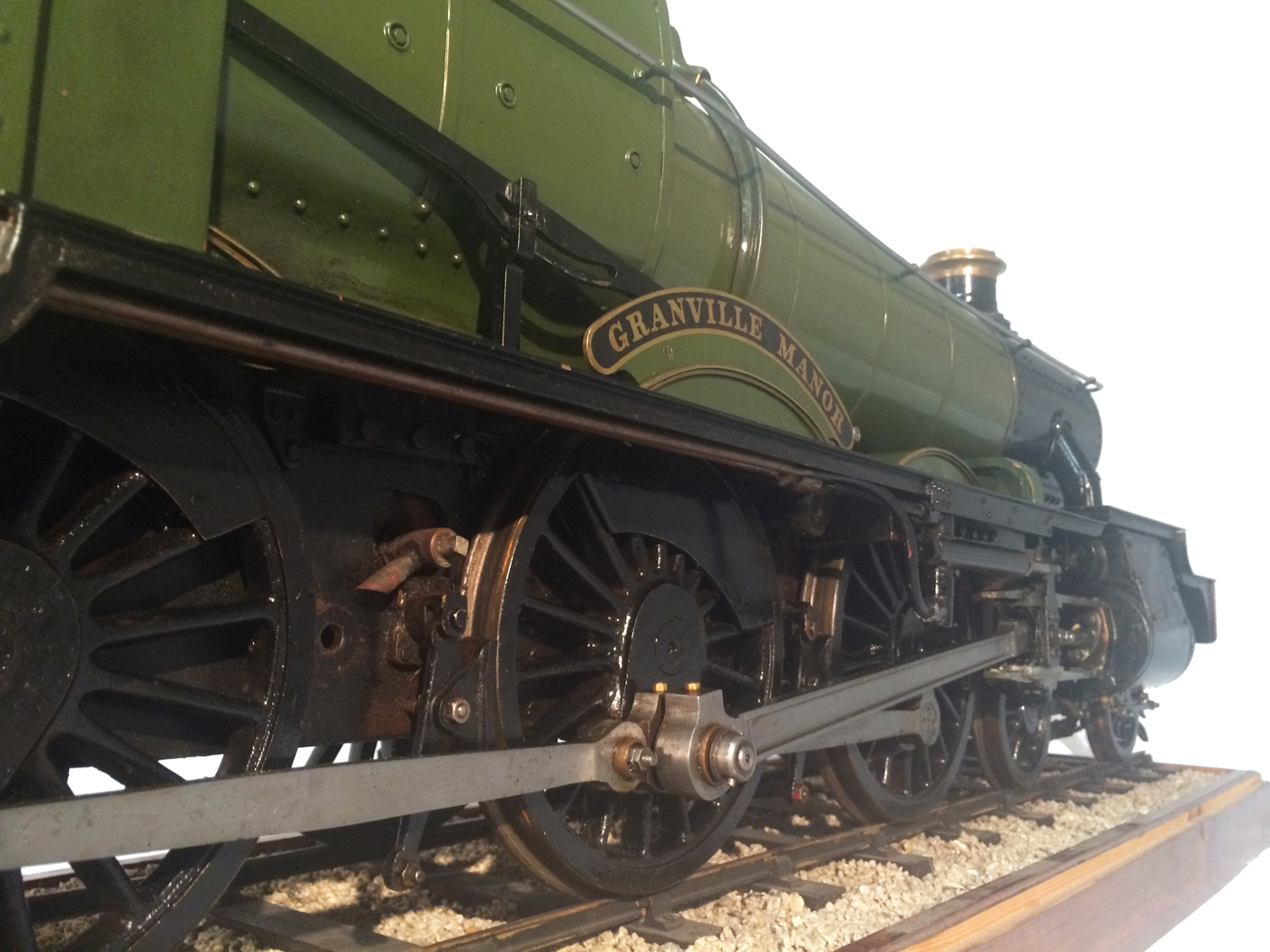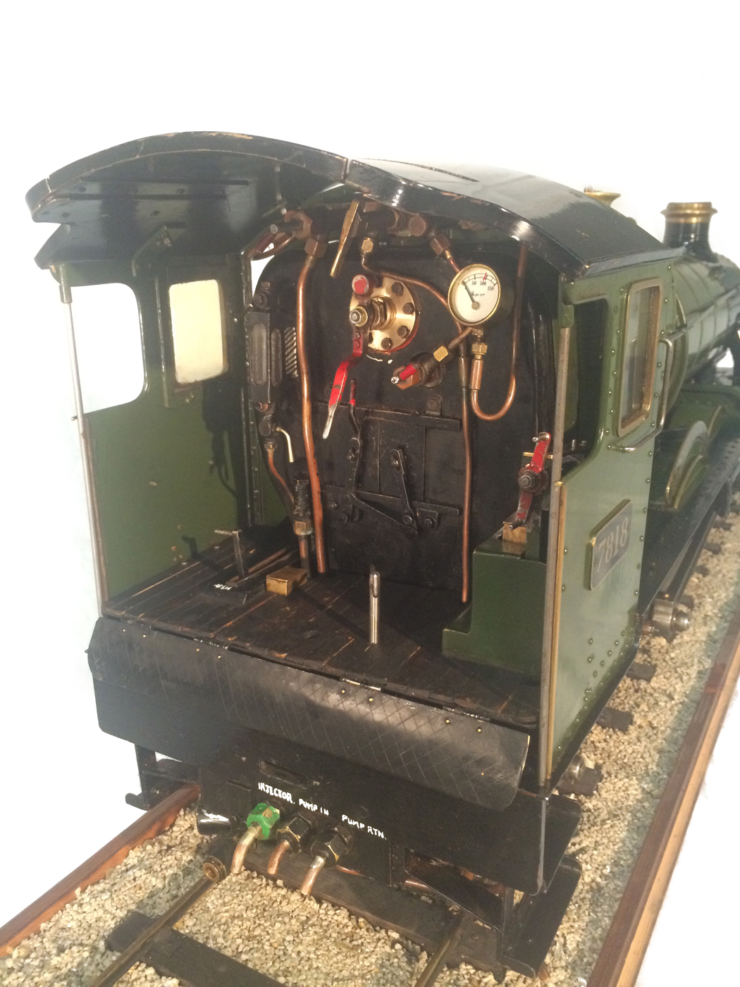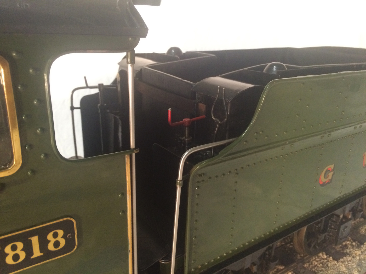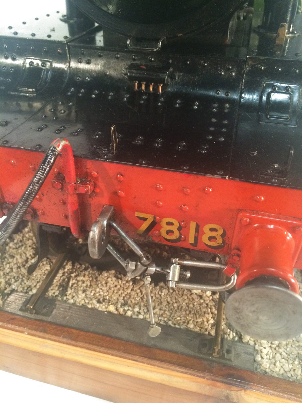 Here we have a nicely detailed 5" Gauge GWR Manor, currently wearing the guise of 7818 'Granville Manor'. There are several nice little touches on this one that just lift it a little above the standard Martin Evans 'Torquay Manor' design, the drawings of which it is, of course made to. She's not a new build, so expect the odd paint chip and slightly 'patina' enriched paint,.... but nothing excessive and certainly the overall effect is one of a very tidy running model rather than it being tatty in any way. When she arrived the regulator was entirely seized up, and there was nothing we could do to extract it delicately (!), so the entire regulator assembly and main steam pipe is now brand new, and made from stainless steel, so it shouldn't give any problems in the future.