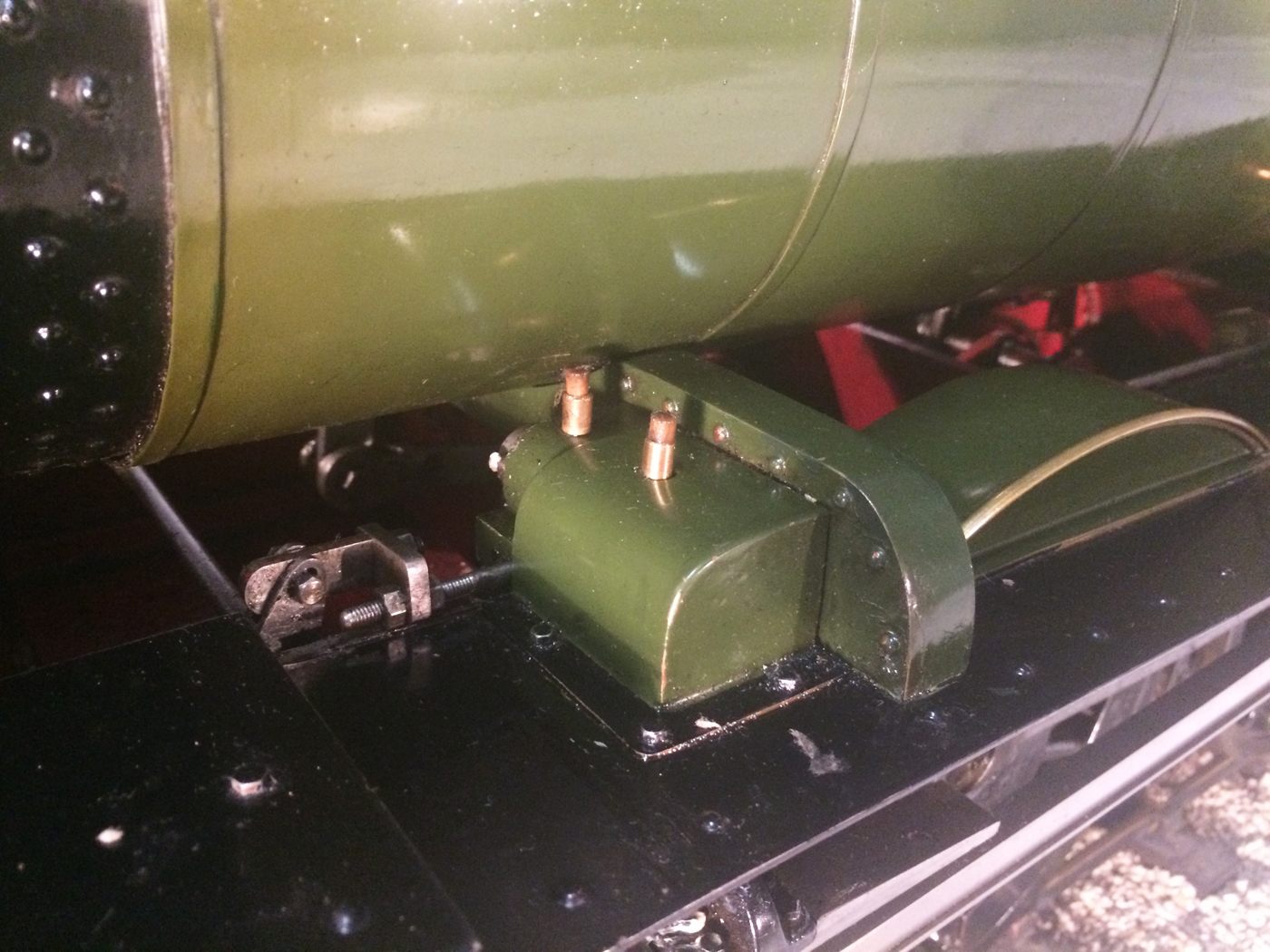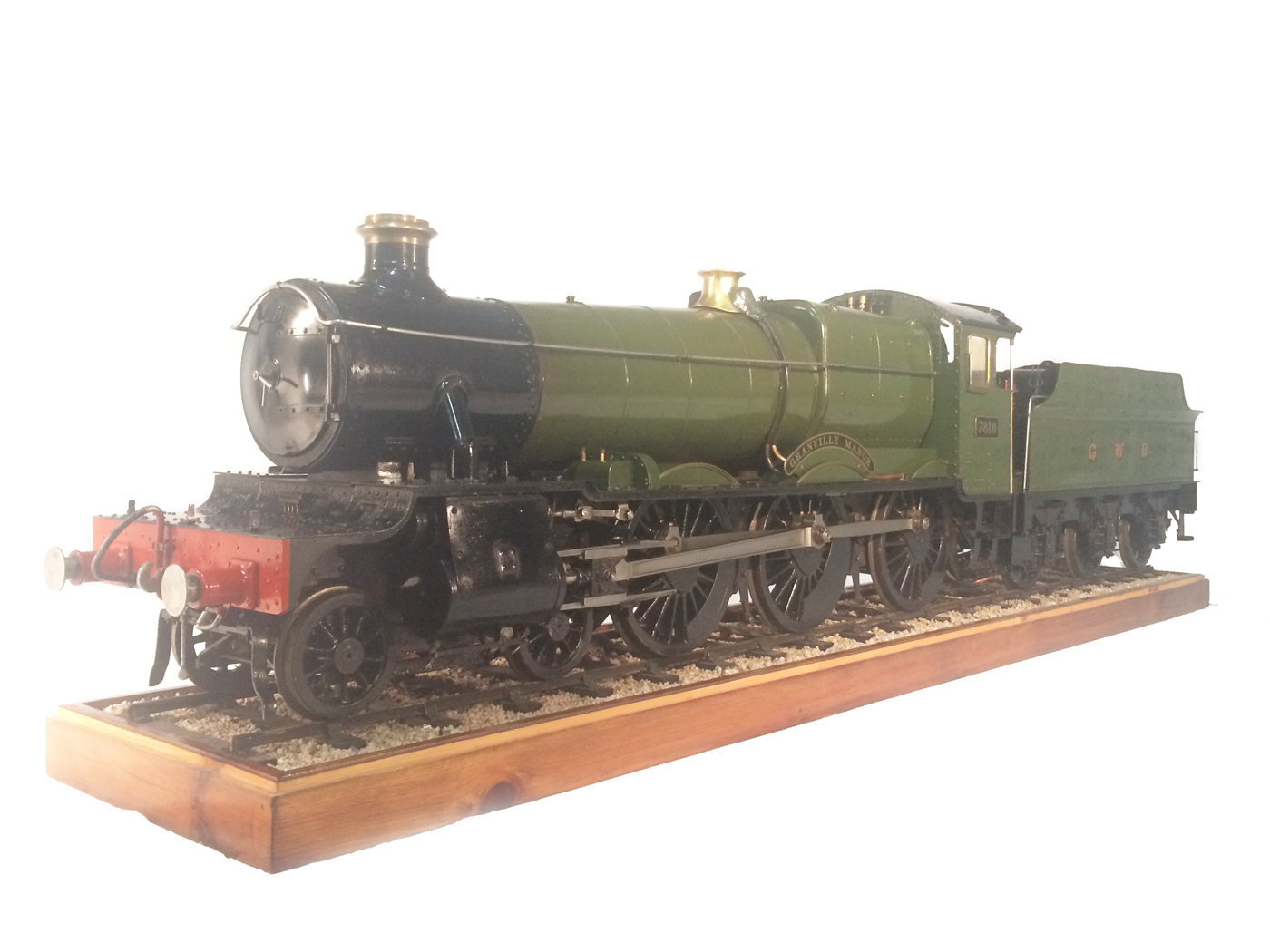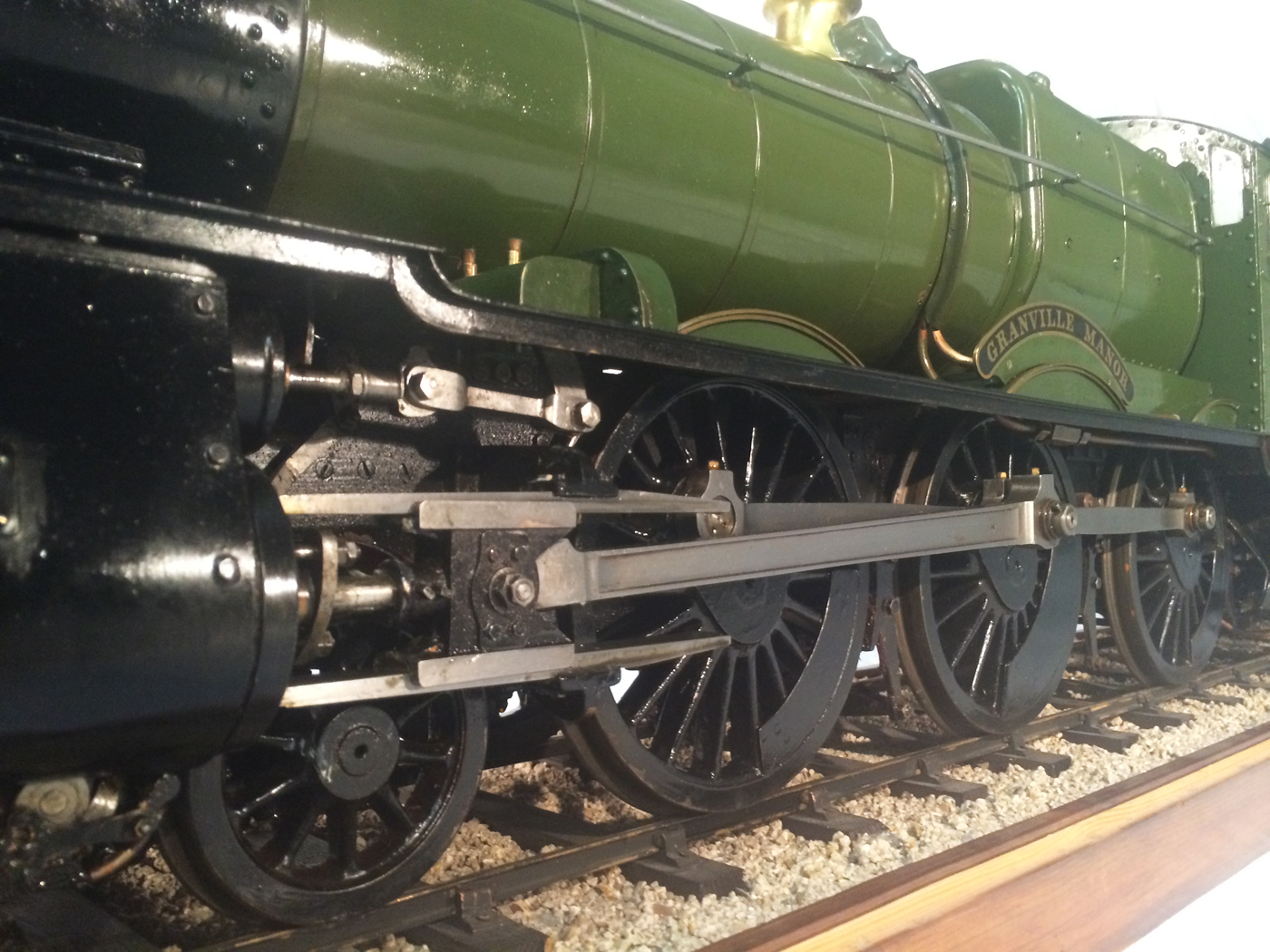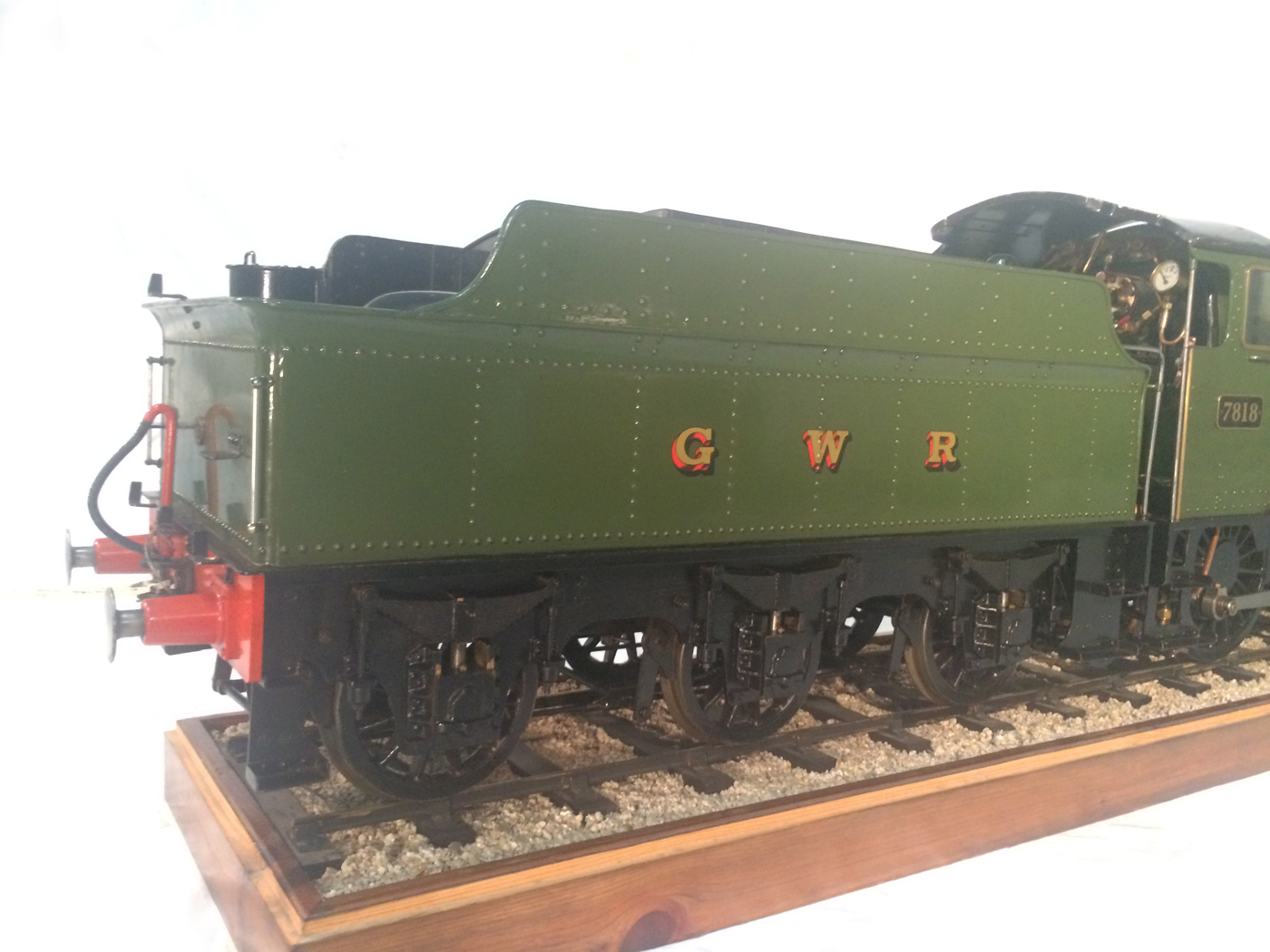 Here we have a nicely detailed 5" Gauge GWR Manor, currently wearing the guise of 7818 'Granville Manor'. There are several nice little touches on this one that just lift it a little above the standard Martin Evans 'Torquay Manor' design, the drawings of which it is, of course made to. She's not a new build, so expect the odd paint chip and slightly 'patina' enriched paint,.... but nothing excessive and certainly the overall effect is one of a very tidy running model rather than it being tatty in any way. When she arrived the regulator was entirely seized up, and there was nothing we could do to extract it delicately (!), so the entire regulator assembly and main steam pipe is now brand new, and made from stainless steel, so it shouldn't give any problems in the future.