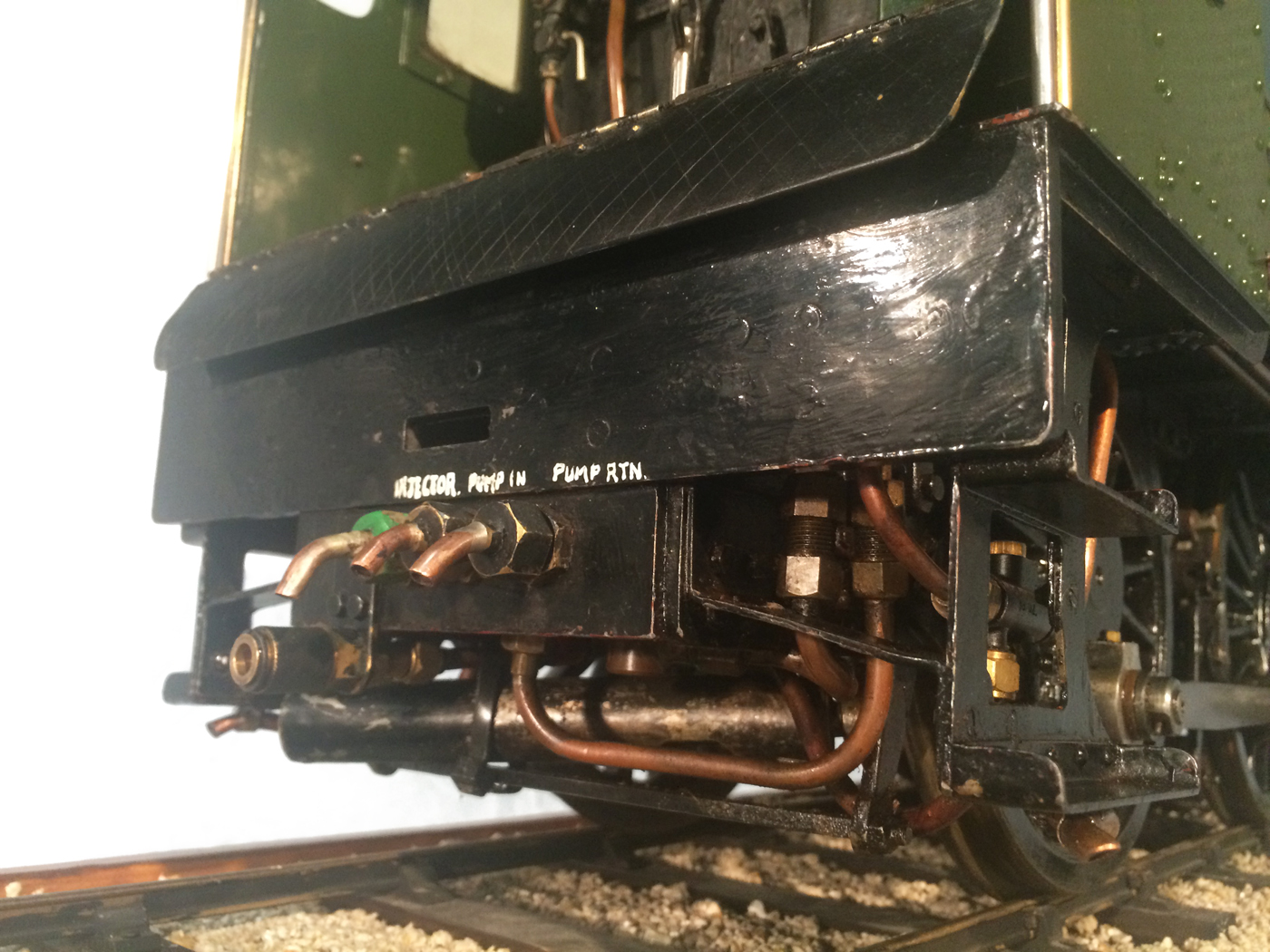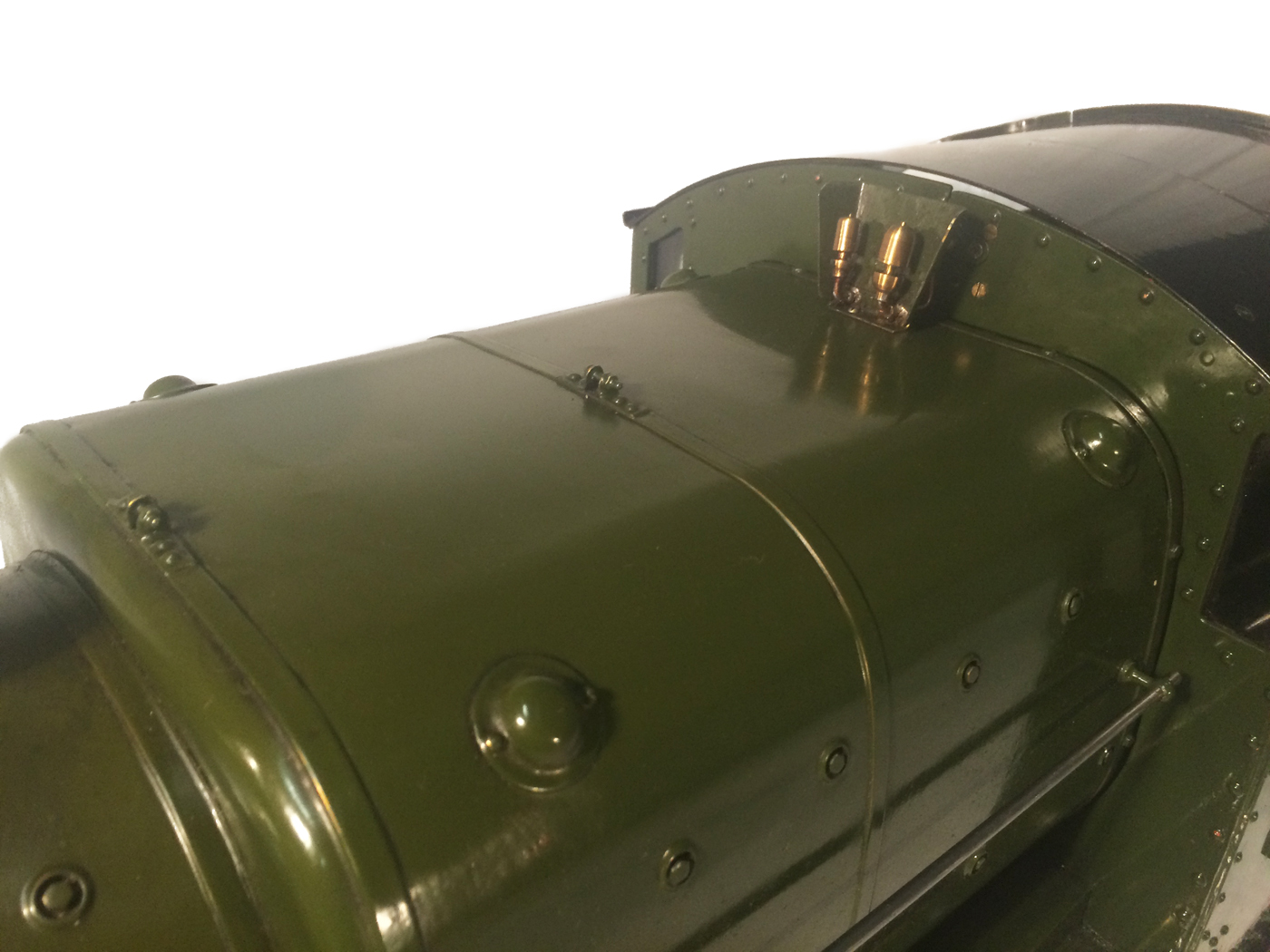 This was the builders last 5" model before moving up into the world of 7 1/4" modeling, and he has since produced a number of fine models in this gauge. The boiler is a professional superheated job, built by Chambers. Water is fed from the usual injector, crosshead pump and the hand pump in the tender. There is a large mechanical lubricator under the front footplate, and although the photos will hopefully do most of the talking, it's fair to say that this is a nice, tidy loco ready to play.