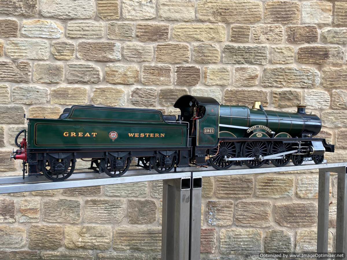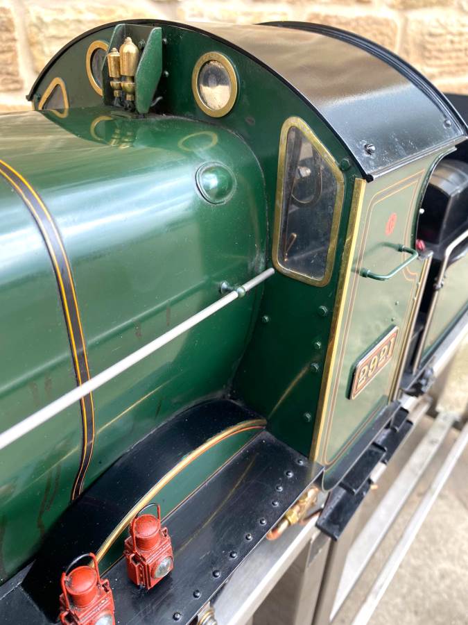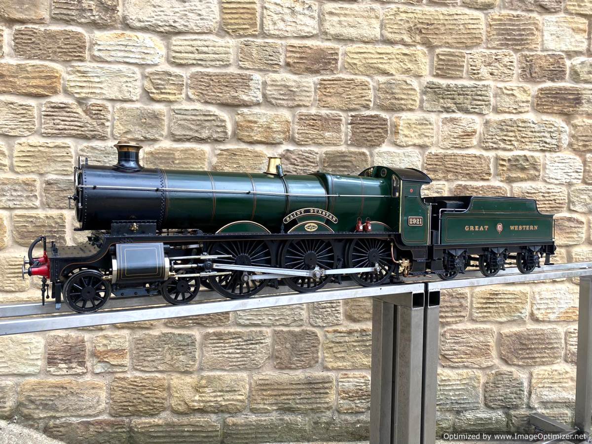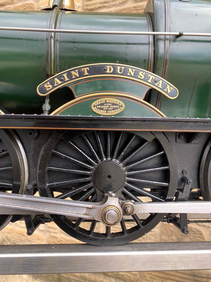 Here we have a lovely example of an extremely pretty prototype. A 5" GWR Churchward Saint, number 2921 'Saint Dunstan'. Built and maintained by a very capable model engineer this is a lovely model with a particularly nice patina giving it a very lovely and authentic feel The copper silver soldered boiler comes fully professionally certificated so there are no concerns from that point of view. Mechanically too it's been well maintained and is all still nice and tight, so we expect that she'll run as well as she looks!