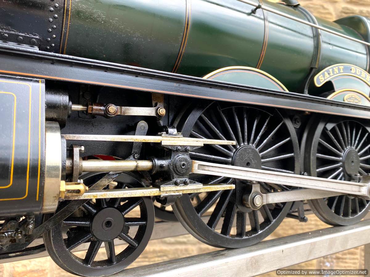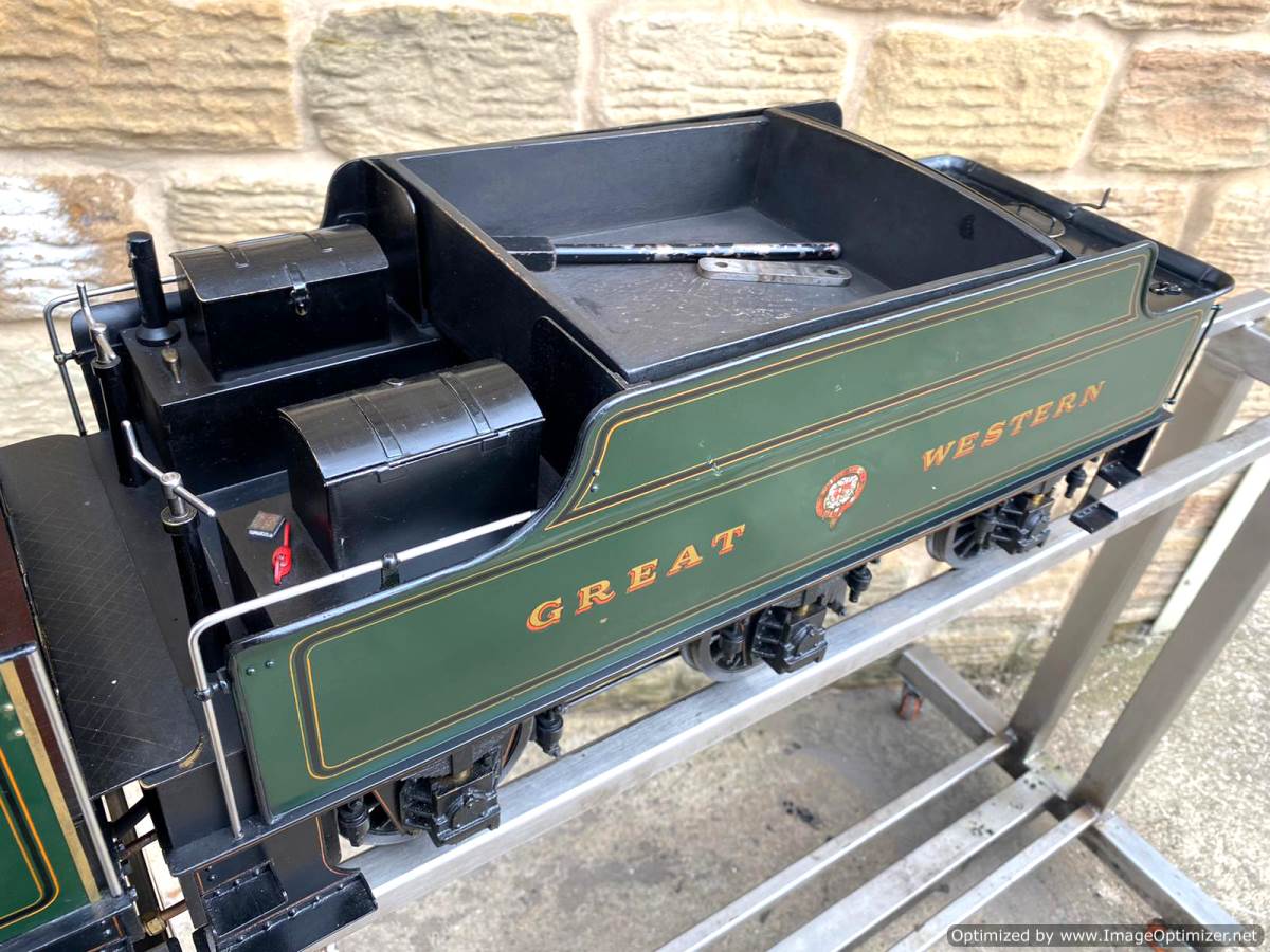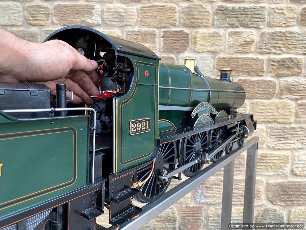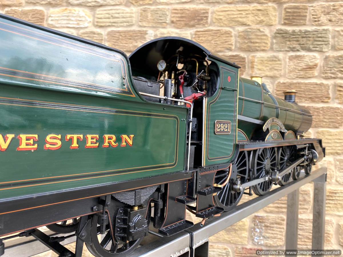 Here we have a lovely example of an extremely pretty prototype. A 5" GWR Churchward Saint, number 2921 'Saint Dunstan'. Built and maintained by a very capable model engineer this is a lovely model with a particularly nice patina giving it a very lovely and authentic feel The copper silver soldered boiler comes fully professionally certificated so there are no concerns from that point of view. Mechanically too it's been well maintained and is all still nice and tight, so we expect that she'll run as well as she looks!