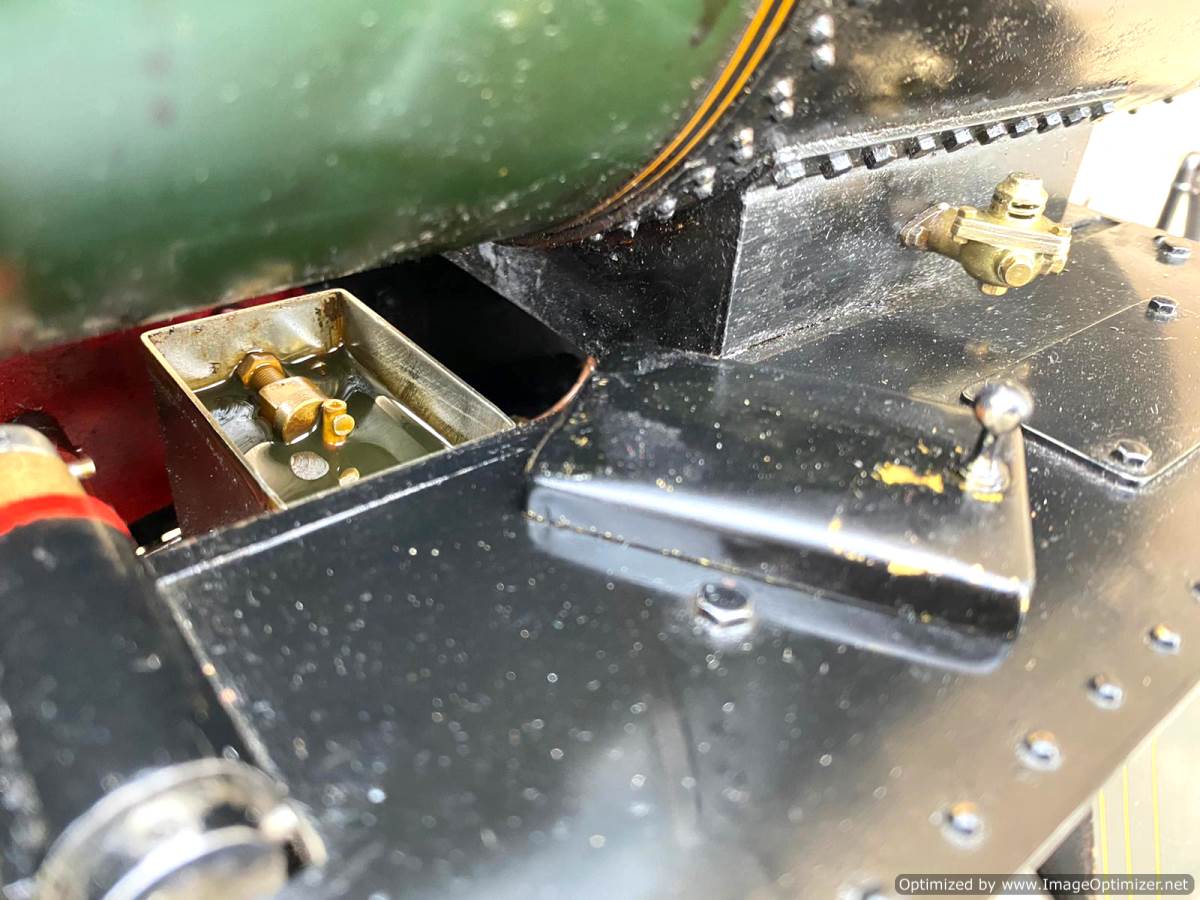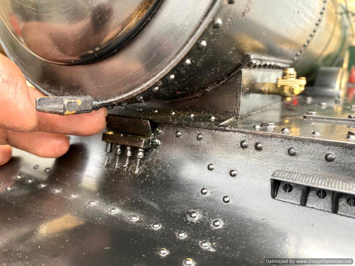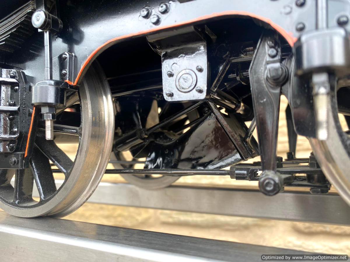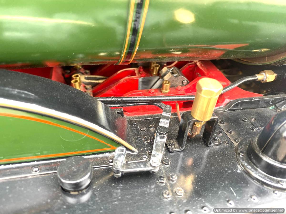Fitted with a pair of injectors as well as a crosshead water pump and footplate mounted bypass valve. There is also a hand pump in the tender. The mechanical lubricator is tucked neatly under the boiler and you can get at it fairly easily from the top to refill. The backhead isn't 'super' detail but it has enough on there to represent a nice compromise between prototypical accuracy and usability. This is a model that has been built to run, and then has had some nice bits of detail dotted about where they aren't going to get in the way of it's practical use. It's a nice balance, and certainly a cracking loco that we are very much looking forward to putting a fire in!
