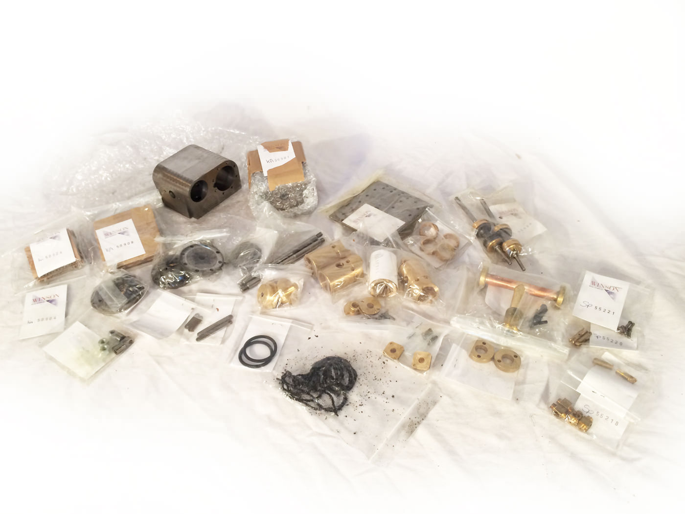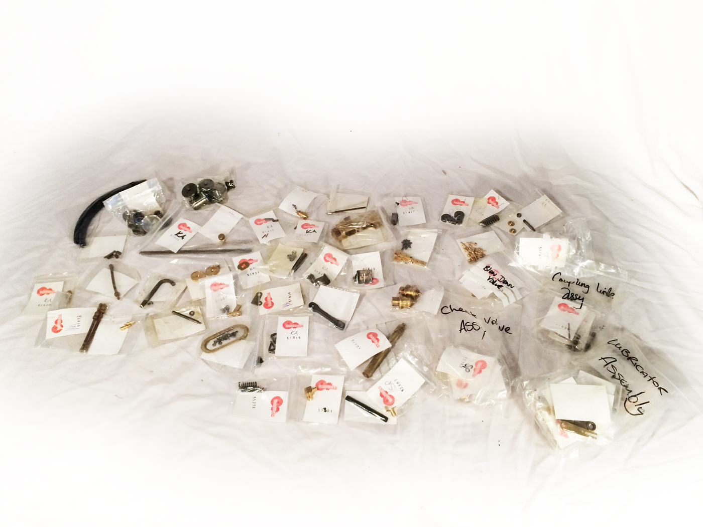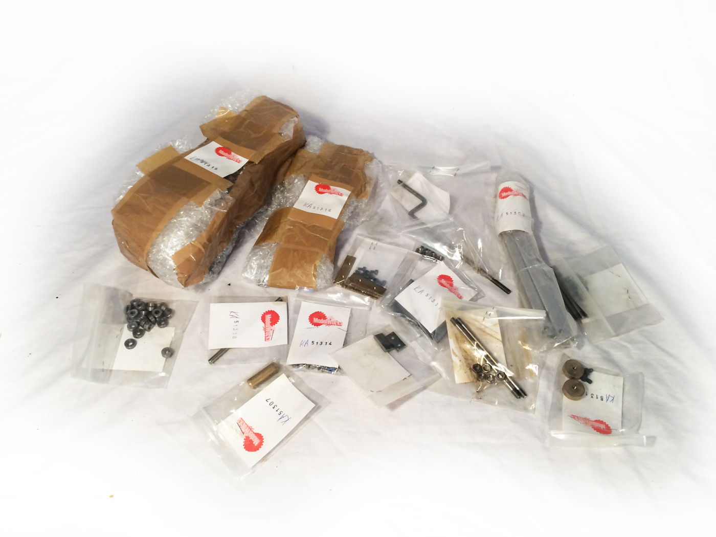The first few kits have been assembled some time ago, and although doused in WD40 to protect the surfaces they show a very light amount of surface rust. It is superficial and will rub off with a decent bit of wire wool. Most of the boxes have only been opened a couple of times to check their contents. Once when the original owner purchased the kit, and once when we did so to make sure that essentially it was all there. Whilst we can't really spend the time checking that every last component is there, we have had a pretty thorough look through and it all certainly appears to be, and as it has come from it's original purchaser, complete with a heafty ring binder of original documentation,.... there is no reason to think anything should be missing. It's also obviously pretty much all still labeled up as you'd expect.