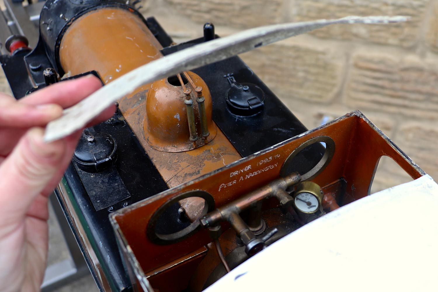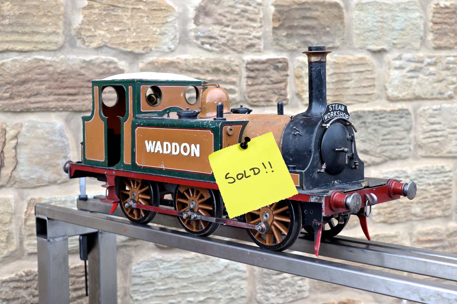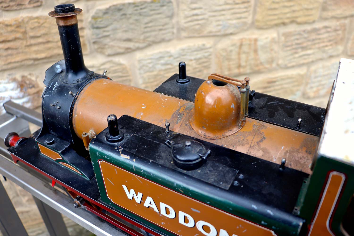 Here we have a dismantled and slightly put back together 5" gauge LBSC C1X 'Terrier' tank 'Waddon'.  Stripped down to fit a new boiler (presumably the original one on it had a problem,.... we haven't checked to be sure).  A new driving wheel has also been turned up to replace the one with the nice flange chip on it.