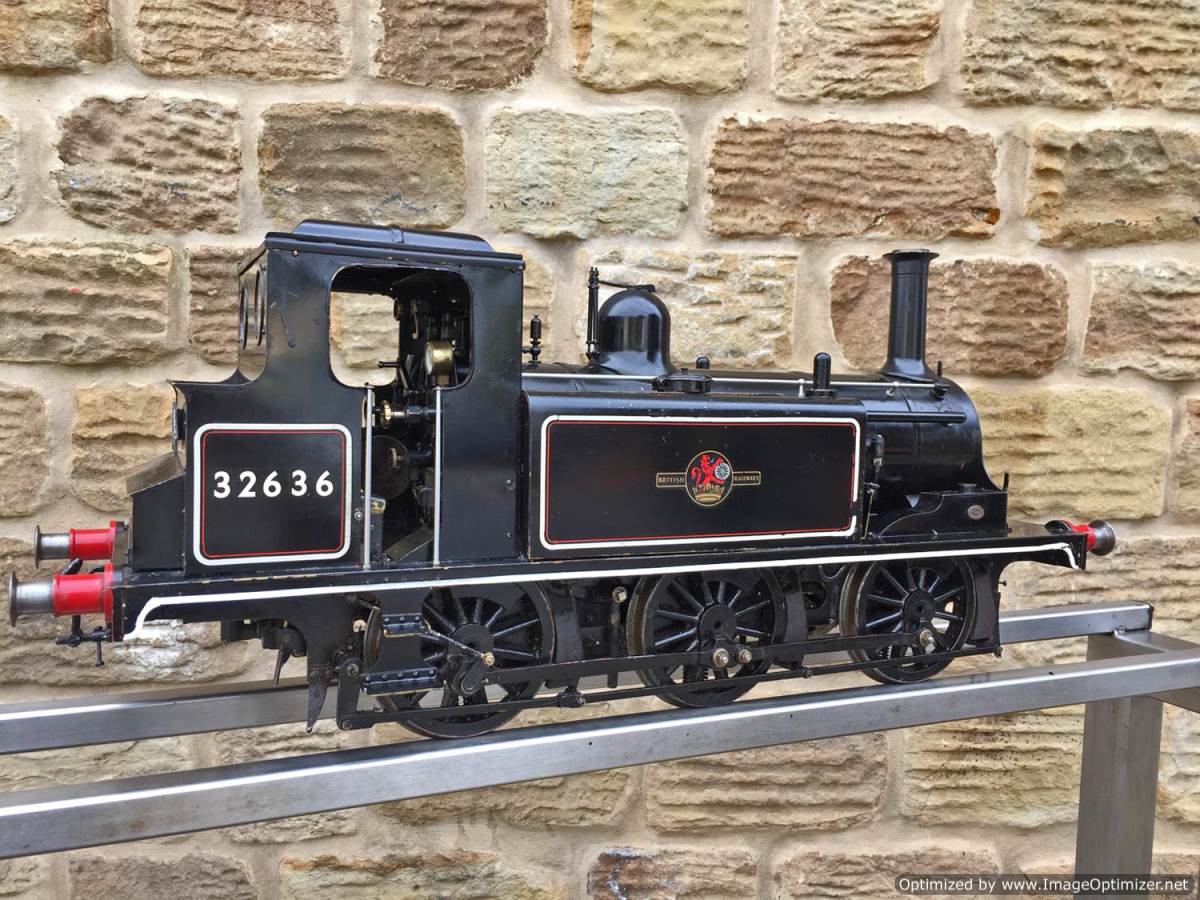 Here we have a 5" gauge LBSCR Terrier tank. Made to Martin Evans 'Boxhill' design. Although this is a cosmetically slightly tired loco, mechanically everything is still nice and tight, so she's still got plenty of life in her! Lubrication is mechanical and on the footplate so it's easy to get at without ruining the lines of the running boards. There is an injector fitted, as well as a crosshead pump between the frames and of course the hand pump inside the side tank. The little oil pots on the front of the tank are plumbed through to the axle boxes and eccentrics as well, so there has been good thought put into setting the loco up to run properly.
