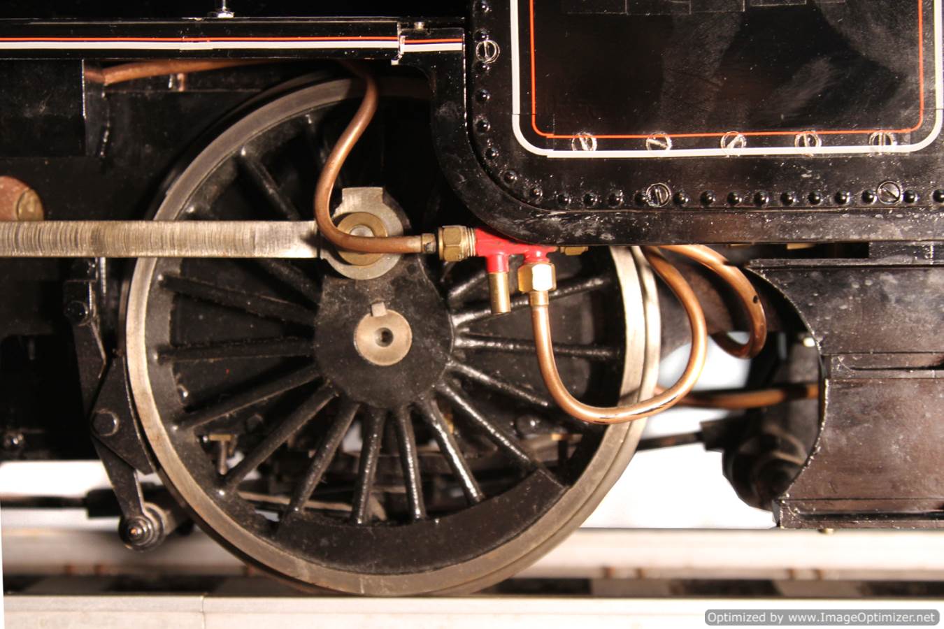 This one has been assembled from a Modelworks kit,... professionally by the looks of things, or at the very least carefully and competently. The paint finish is pretty good, and mechanically there are a few little signs that some if not all of the model engineering work necessary to make a Modelworks kit built locomotive work well has already been done on this one.