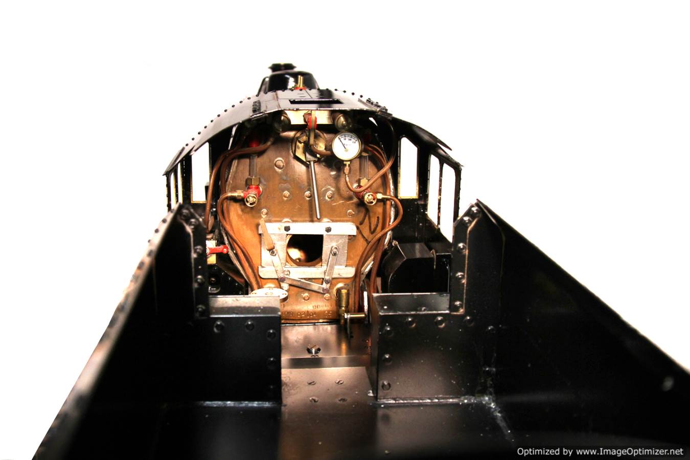 The boiler is a brand new, professionally made silver soldered copper one. There is a hand pump in the tender for water, as well as an injector fitted, and an axle pump between the frames with footplate mounted bypass valve. Lubrication is mechanical and on the running board. We are sorely tempted to fully commission this our ourselves and have a play before we sell it on, in which case it would be worth a decent chunk more, but as we are really busy in the works at the moment with other projects we thought we'd give you the chance to get this one as she stands a little cheaper. You may get lucky here and find out that she just works straight out of the box, (certainly someone with model engineering know how has been involved in the build), but there may also be a few of the usual Modelworks 'snagging' issues to sort out before you're happily flying around your chosen track. Do you feel lucky,.......? 🙂