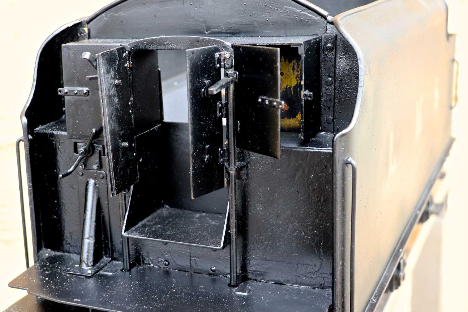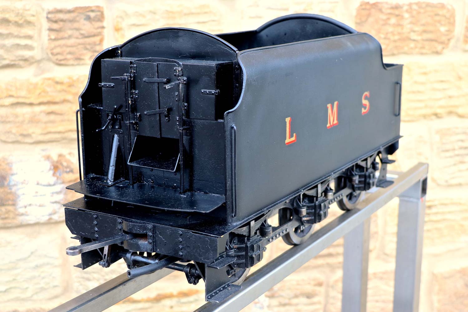 Here we have a nicely engineered 5" gauge LMS Stanier black 5. We are in the process of repairing the cab roof, which as you can see we have taken back to bare metal at the moment,...... but we are sure you'll be able to imagine what it will look like when we've sorted it! 🙂