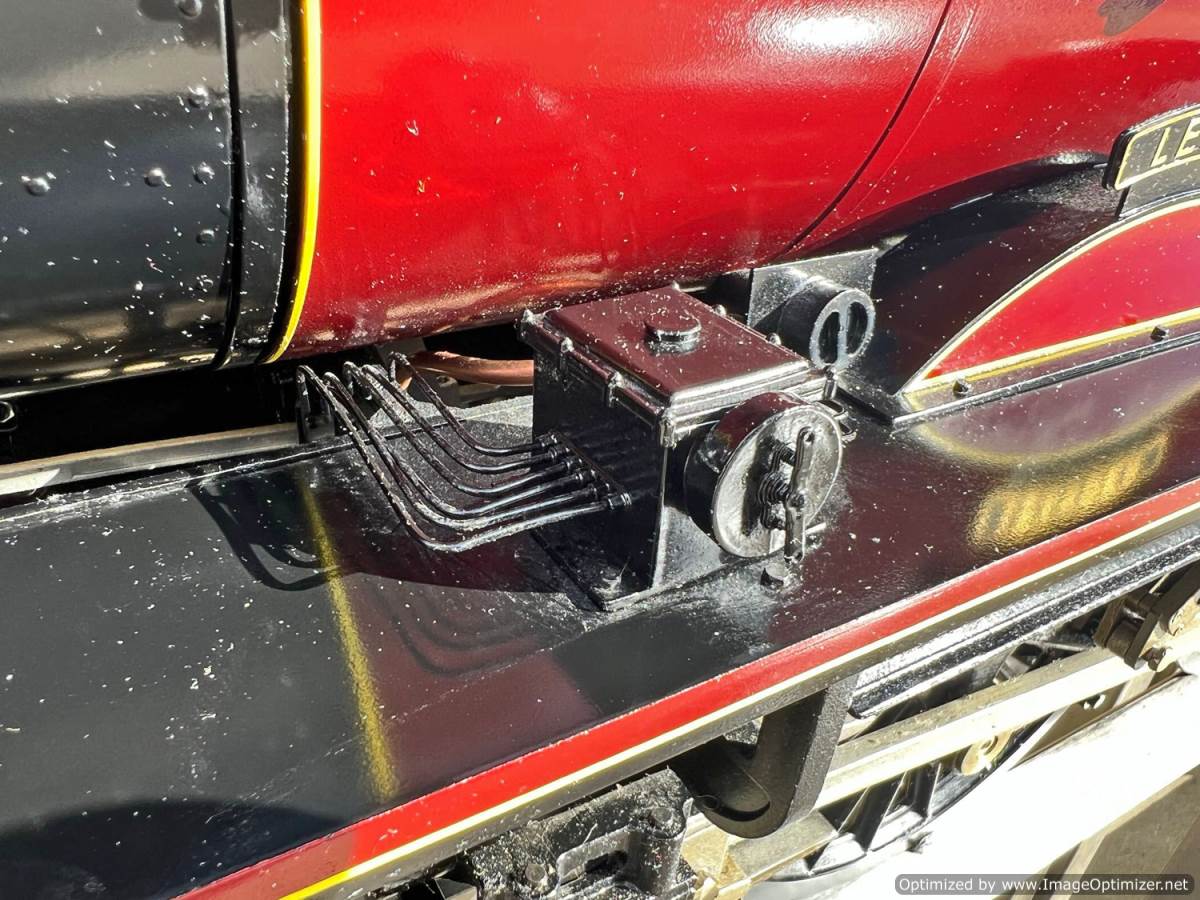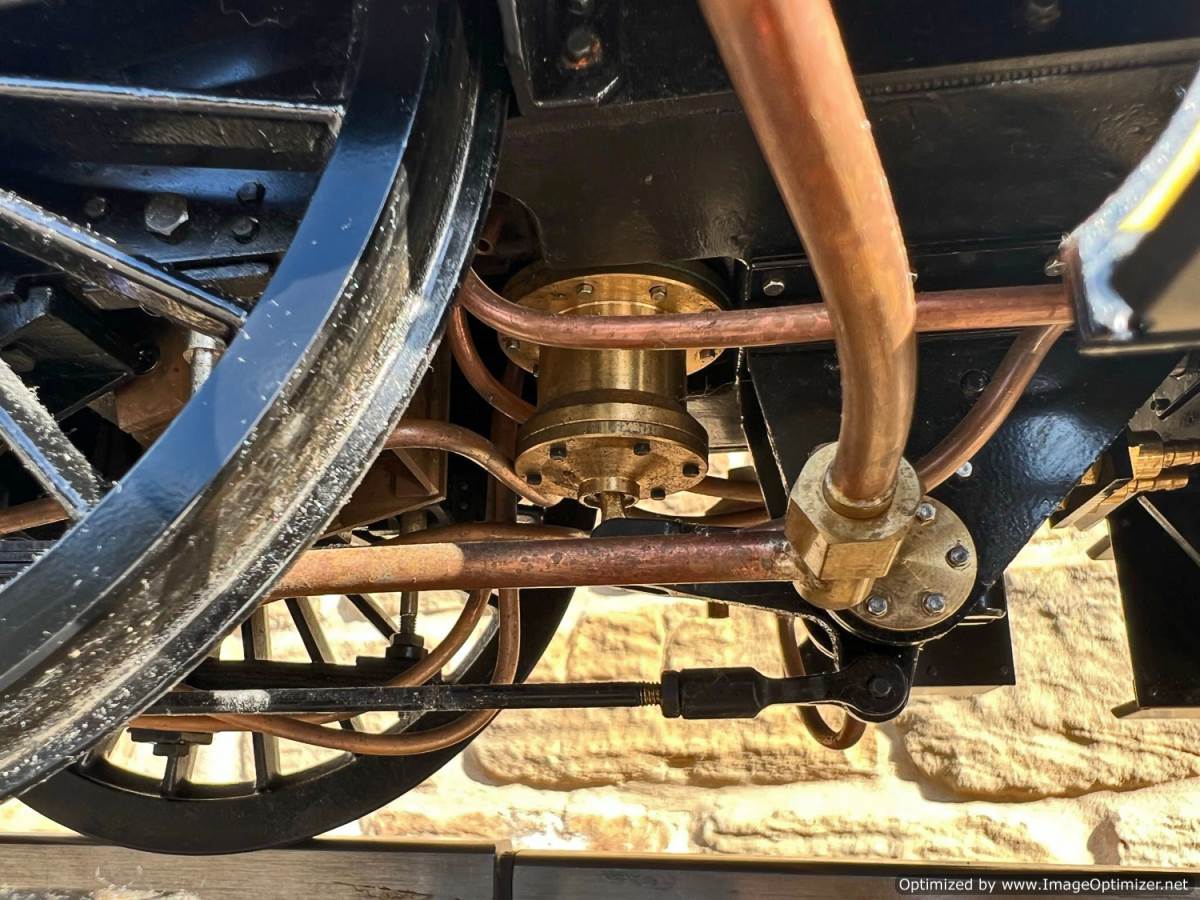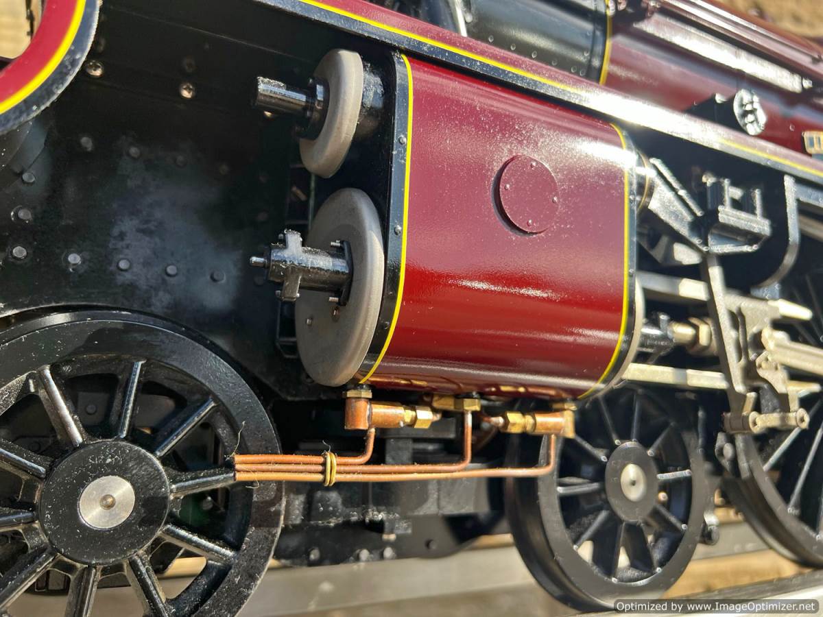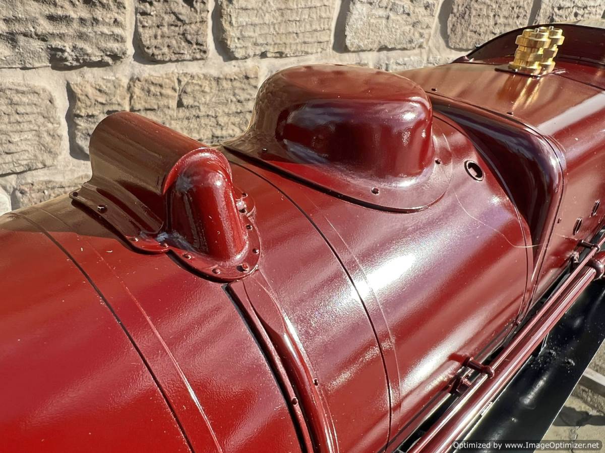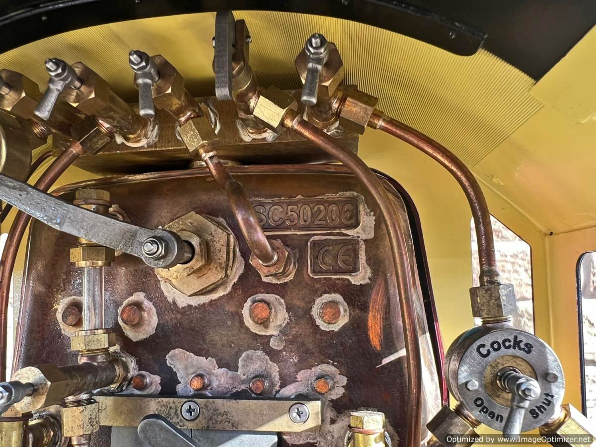 The model has a silver soldered copper boiler, CE marked and hydraulically tested to twice working pressure. The loco was inspected by Mike Pavie before initial delivery including a 1.5 x hydraulic boiler test to ensure there was no leakage from the boiler fittings. The model was also run on air as part of that inspection.