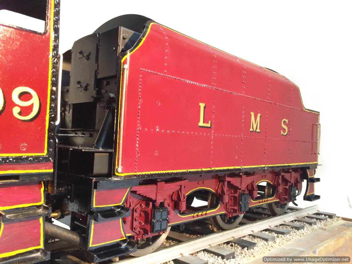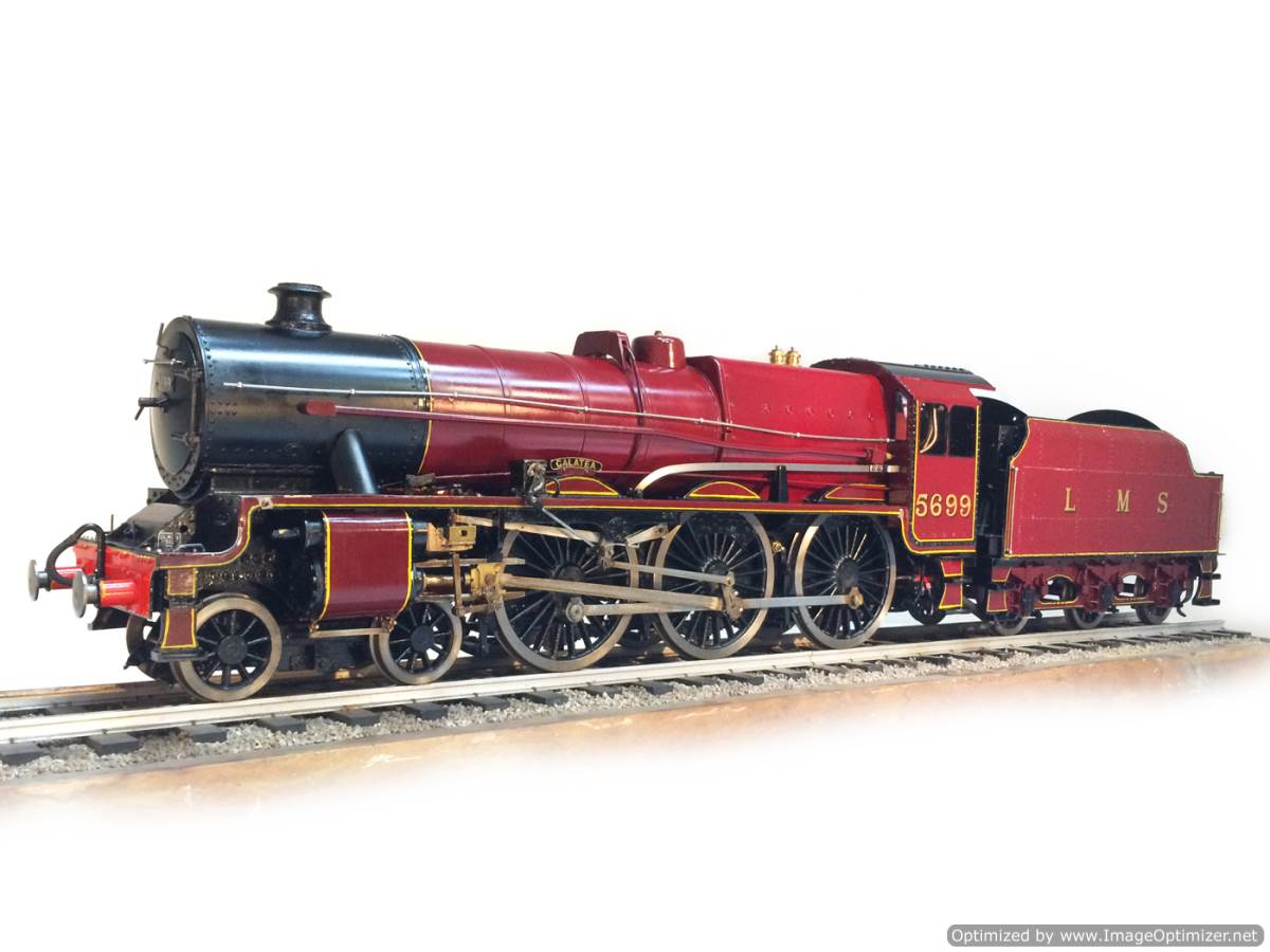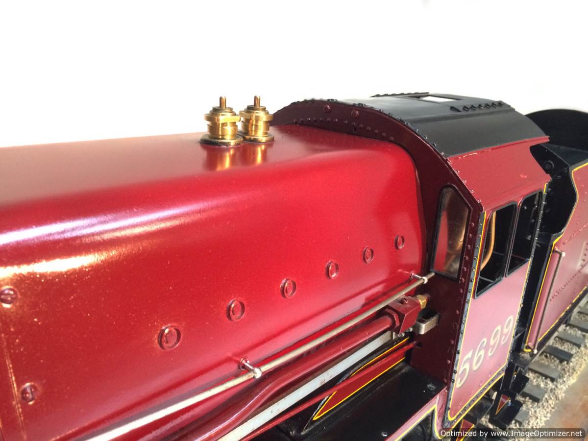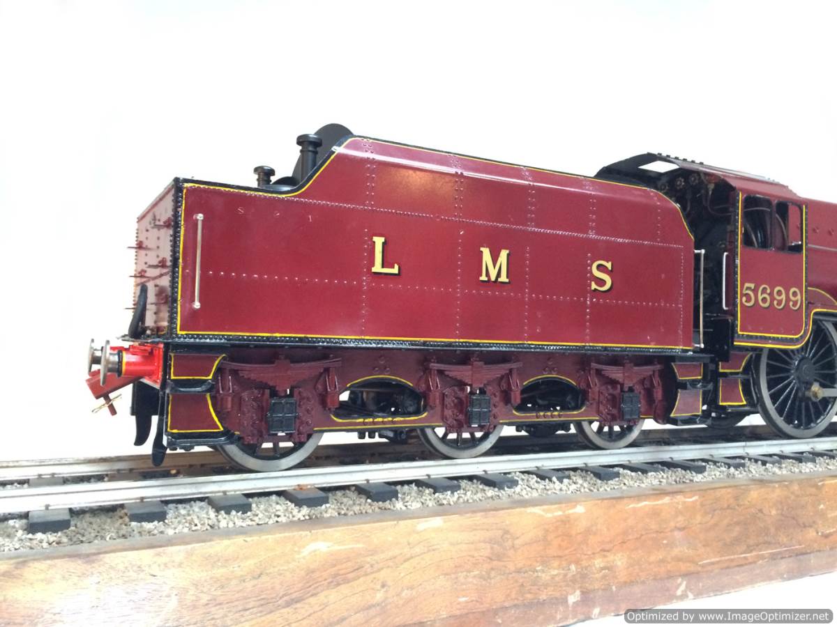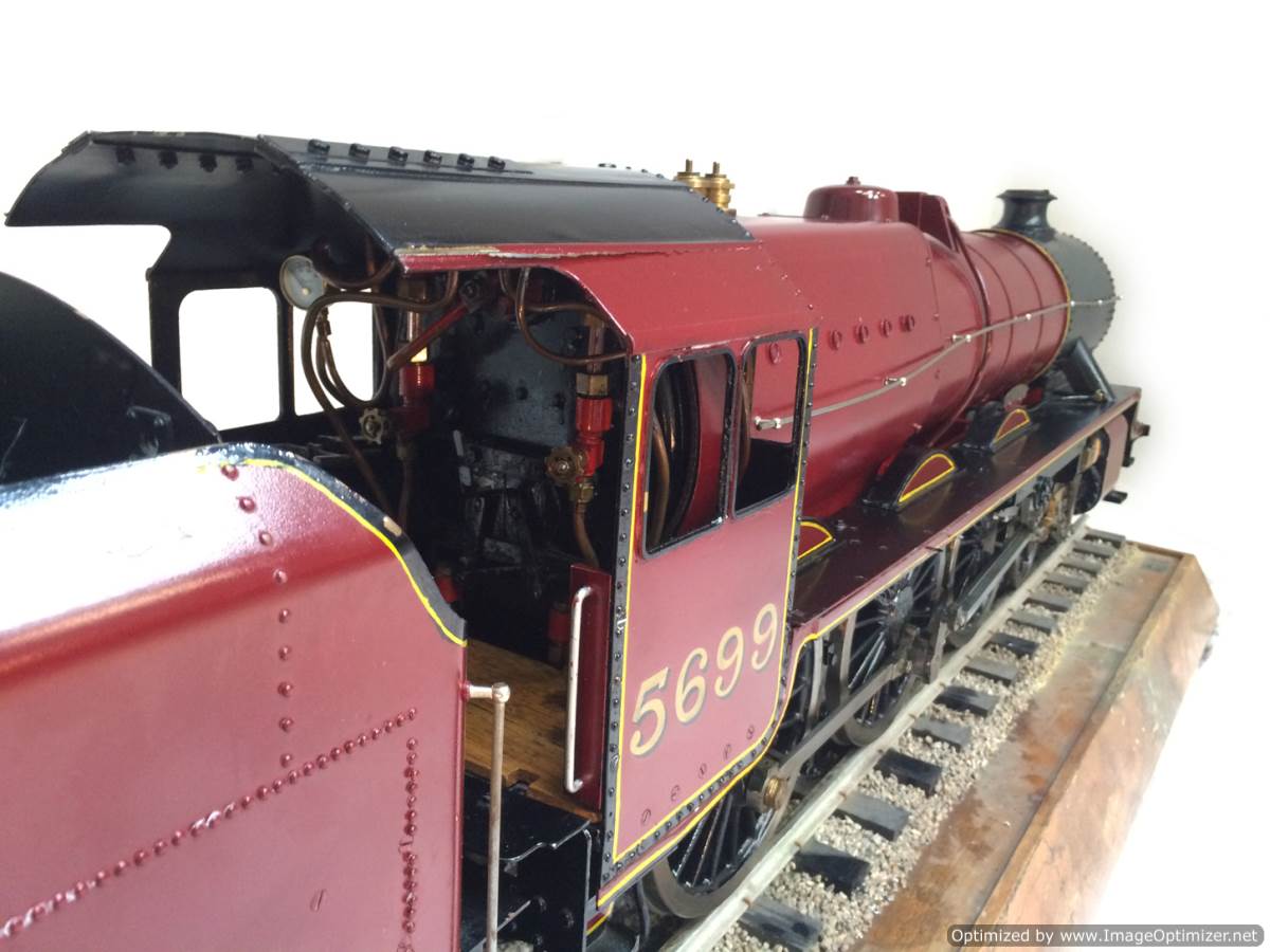 Here we have a brand new and ready to play 5" gauge LMS Jubilee 5699 'Galatea'.  Built from a Modelworks/Winson Kit, but 'sorted out' by a model engineer, this is a full three cylinder model, so no half,.... sorry 2/3rds measures here with a simplified 2 cylinder job.  We've steamed her in the workshop, and all appears generally well.  The loco runs smoothly, and everything essentially works.  It's a brand new model, and only now been steamed twice to our knowledge, and so as you w0uld expect, each time at this early stage there has been some little thing that needs a little tweak.  We nipped up the right hand cylinder gland as it was blowing past, and we found that the injector clack wasn't seating particularly well, (although it didn't stop the injector from doing it's job).  When running in steam, it does still feel a little under powered, so we suspect things could also be much improved by a little more attention to the timing and perhaps a new set of piston rings to help it use the steam better.  The water pump and bypass works and keeps the boiler nicely topped up.  The tender hand pump also does what it should do.  There is a mechanical lubricator on the running board that lubricates, and the boiler is a new professional job that comes with a full 4 year hydraulic cert. She also passed her steam test yesterday so is ready to hit the track.