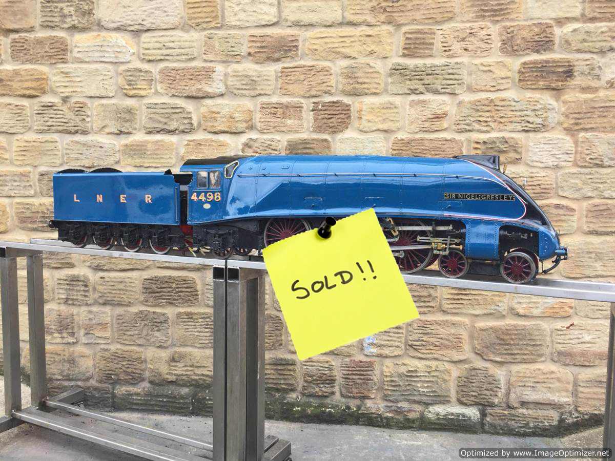 Here we have another rare beast,.... a 5" gauge LNER A4, 'Sir Nigel Gresley'. Built from a modelworks kit, the loco has been tweaked and modified by capable model engineers during the build process and the body (which is generally pretty nicely done) is of course scratch built and not a Modelworks kit product. This isn't a new loco, having spent the last few years on a private ground level railway, but she's still in good cosmetic and mechanical condition. This is a full 3 cylinder loco, so she should be quite fast and powerful, just like the real thing!