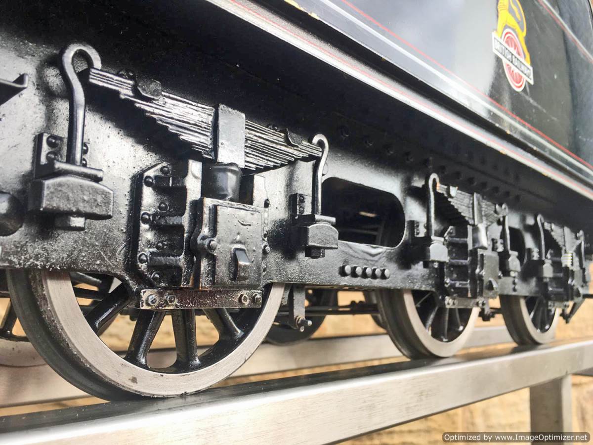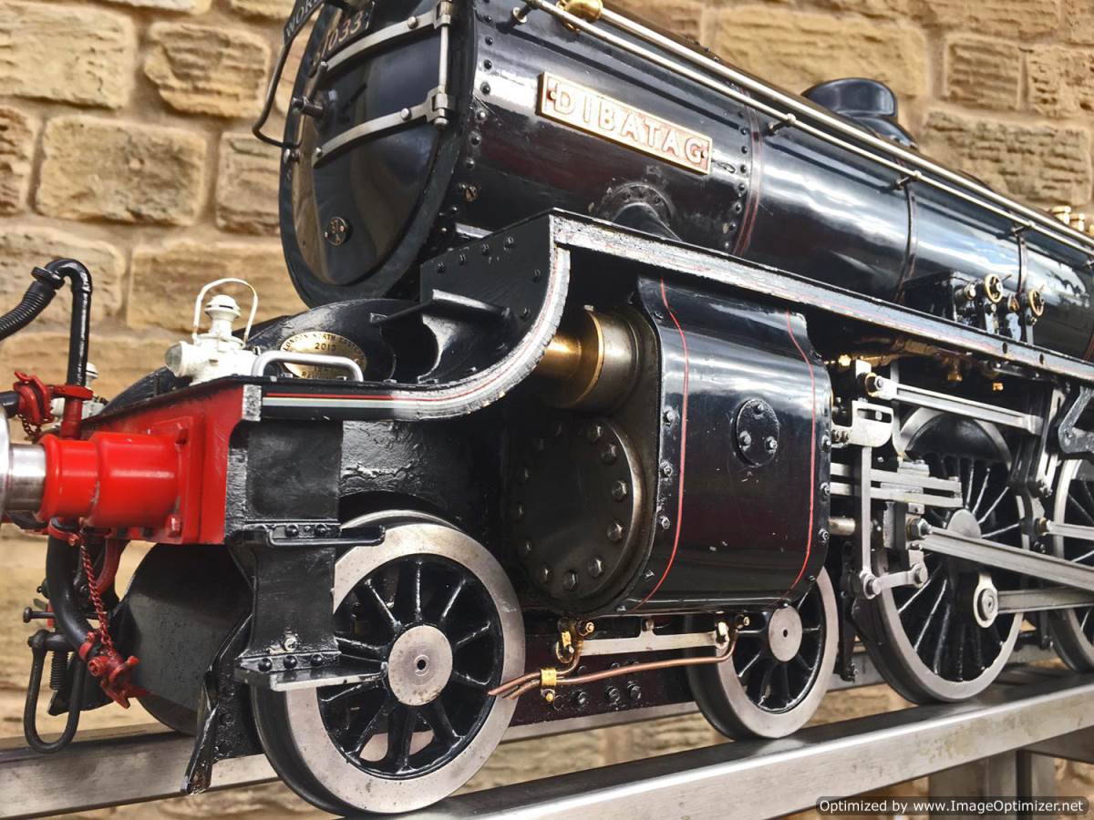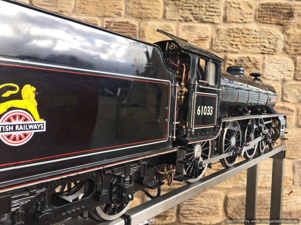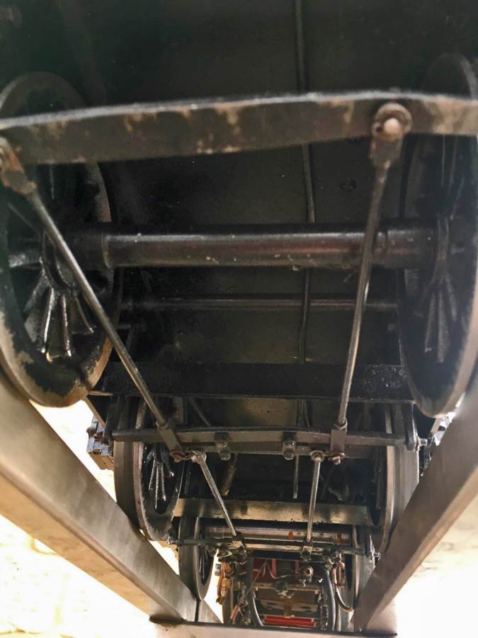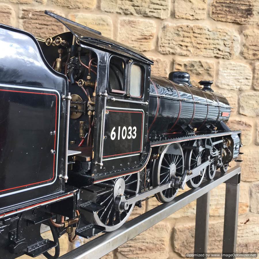 Here we have another example of Martin Evan's extremely well respected 'Springbok' design, which is of course a 5" gauge LNER B1. In this case we have 601xx 'Roebuck'. There's a good deal of extra detail on this model, over and above a basic Springbok. The sand boxes, running board oil pots, nice rivet detailing as well as well machined rods, with subtle little oil reservoirs machined into the bosses. A nicely made thing, that is above the average Springbok. Cosmetically there are a few cracks in the paint around the smoke box, and the odd chop n scrape here and there, but nothing untoward, and all entirely consistent with a running and used model. To that end there's also a little slop here and there in the motion, but again, nothing too major, and certainly nothing that will need any immediate attention, it's ready to play and by all accounts she ought to run very well!