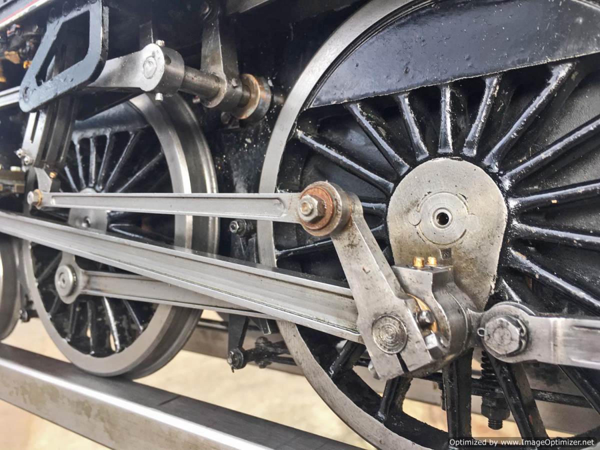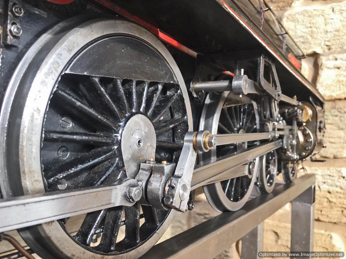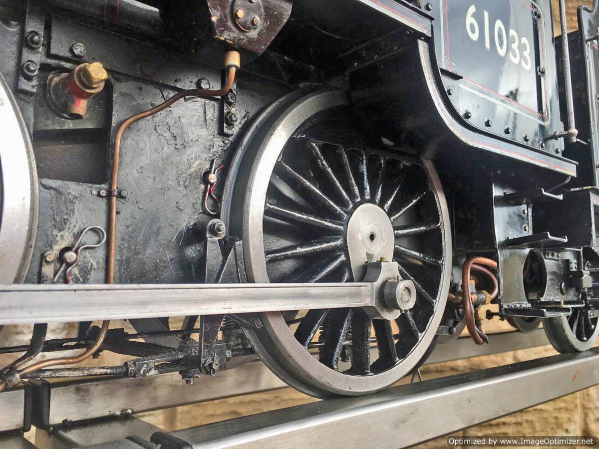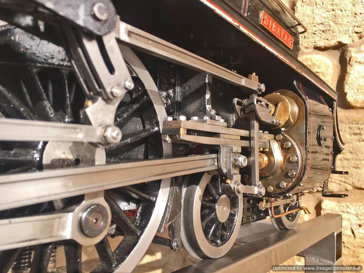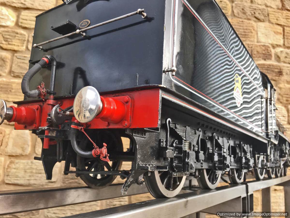 Here we have another example of Martin Evan's extremely well respected 'Springbok' design, which is of course a 5" gauge LNER B1. In this case we have 601xx 'Roebuck'. There's a good deal of extra detail on this model, over and above a basic Springbok. The sand boxes, running board oil pots, nice rivet detailing as well as well machined rods, with subtle little oil reservoirs machined into the bosses. A nicely made thing, that is above the average Springbok. Cosmetically there are a few cracks in the paint around the smoke box, and the odd chop n scrape here and there, but nothing untoward, and all entirely consistent with a running and used model. To that end there's also a little slop here and there in the motion, but again, nothing too major, and certainly nothing that will need any immediate attention, it's ready to play and by all accounts she ought to run very well!