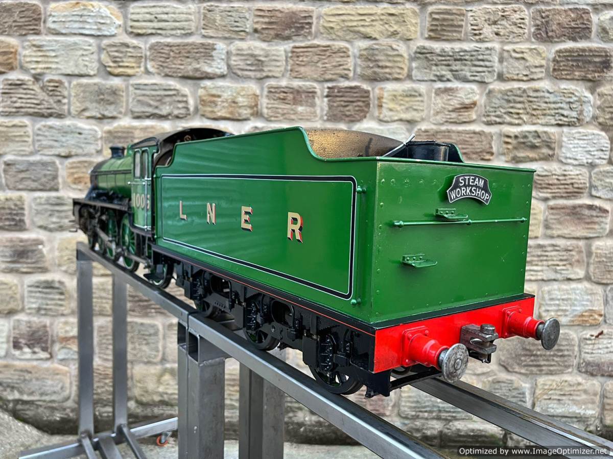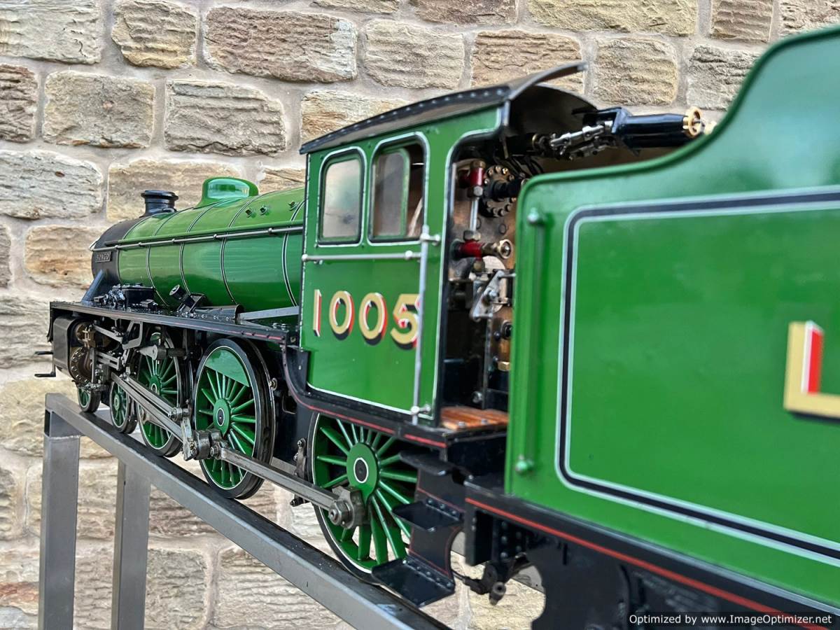 Here we have a particularly well resolved 5" gauge LNER B1. Built, as pretty much all are to the Martin Evans 'Springbok' design, but done with engineering finesse and loads of added detail to make this one a great looking machine. As you can see from the photos it has some nice touches like the steam generator on the front running board, the sand boxes, scale lubricators, footsteps and generally well executed rivet detailing. The machining work is also first rate, with delicate fluting and castellated nuts, showing that the model engineer here had a good level of skill.