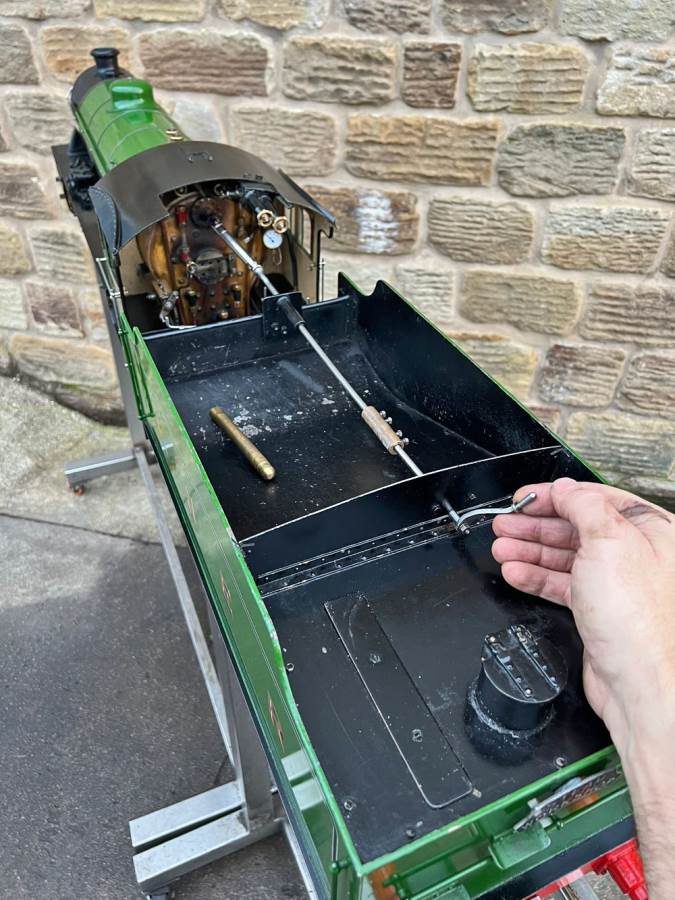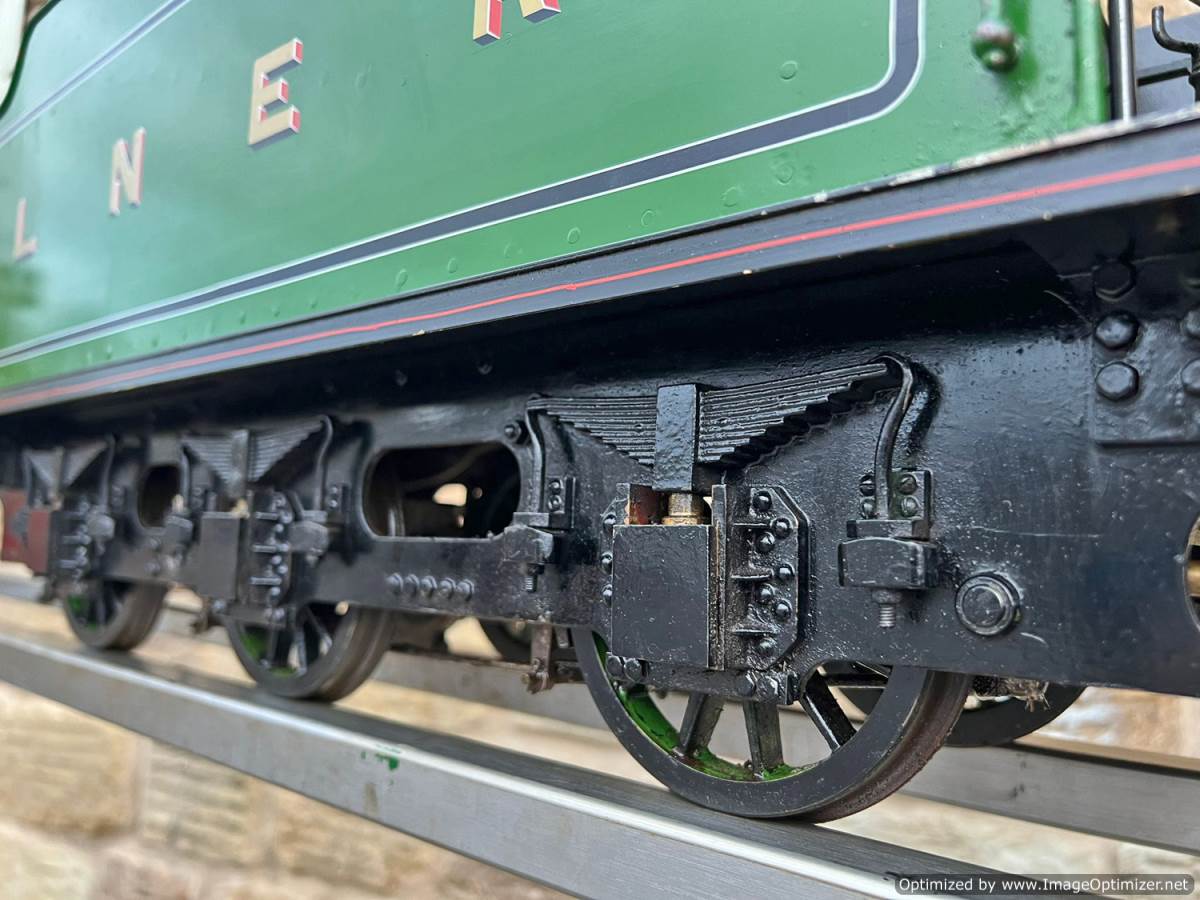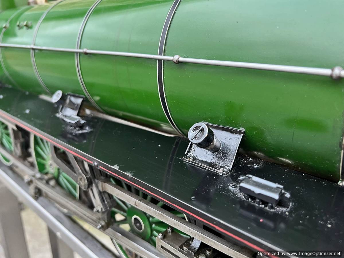 Fitted with a pair of injectors, as well as an axle pump on the tender, running through a bypass valve also on the front of the tender. There's also a hand pimp fitted too as you can see from the photos. Lubrication is mechanical and tucked under the front footplate, with the pair of Wakefields on the running board being dummy detailing. There are also remote driving extensions so that the driver doesn't need to lean over the long tender when driving, which is always a handy touch to look after your back!