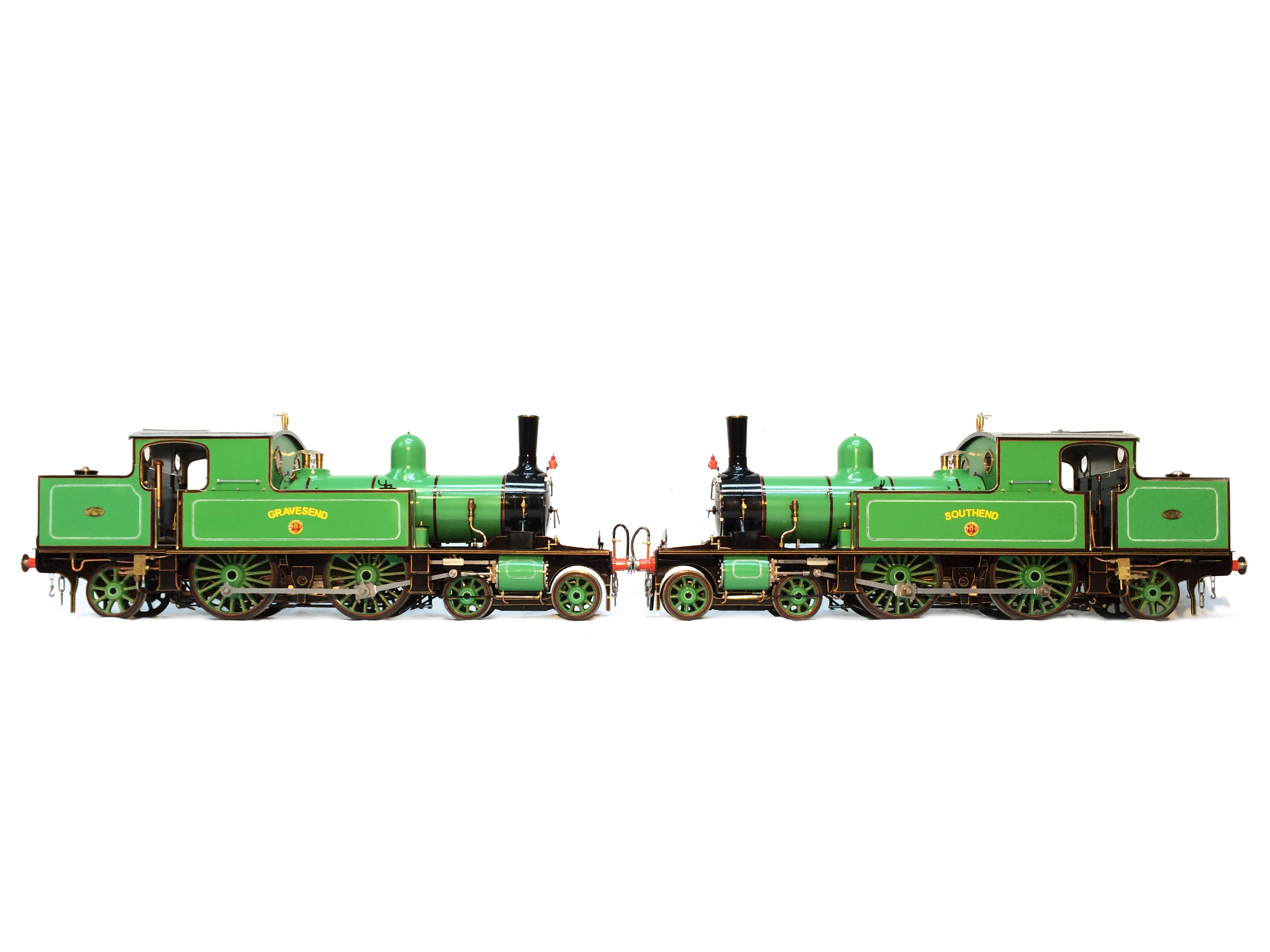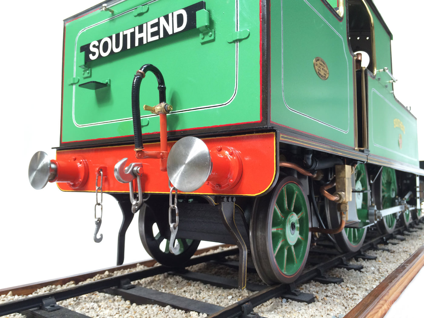 Here we have a brand new 5" gauge London Tilbury & Southend Railway Whitelegg 4-4-2 tank.  We'd be pretty confident in declaring it to be unique had we not got an identical pair!  However, apart from the second one that we have in, we are pretty sure that you'll not bump into another.  These have come to us from a well respected and prolific model engineer.  He's built a great many models over the years and often builds in pairs.  These two (the first of which 'Southend' being offered here) were built a few years ago, and have only ever been test steamed once, just to ensure that everything works as it should.