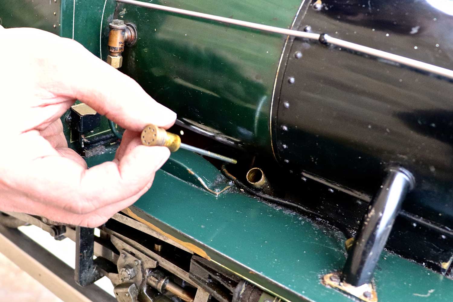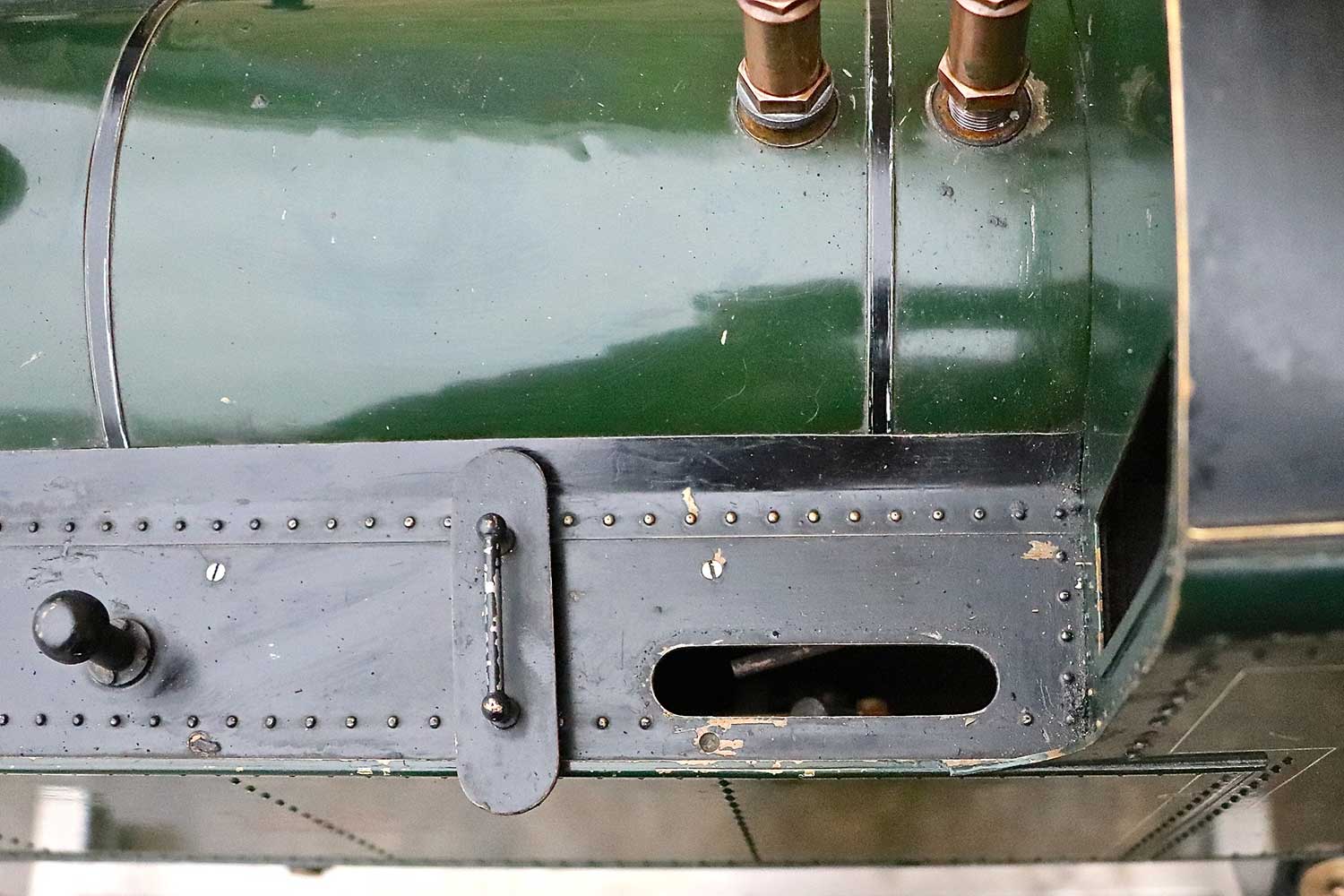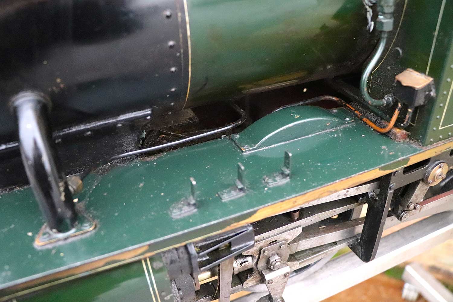 The rest of the model seems mechanically in pretty decent condition.  It's clearly been a well run engine, but certainly has life in her yet!  One that we would have loved to have sorted and rebuilt here in the works, but sometimes we have to be sensible in the way that we pick our battles, and even if we managed to fix the boiler, the time involved in stripping it down and rebuilding/re-painting would be too high to make it an economic reality.  But for someone with their own workshop and 'free' time,..... there is a cracking loco here that will be a powerful and interesting thing when brought back to life!