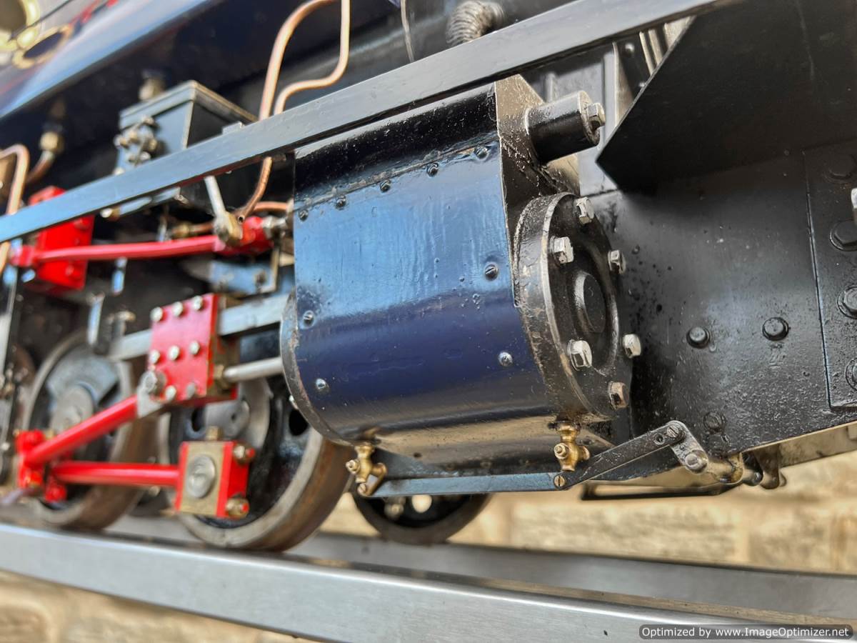 Everything is in good order, with good quality machining and no significant degree of wear and tear in the Hackworth valve gear. Fitted with an injector, as well as an axle pump and footplate mounted bypass valve, and of course a hand pump in the tender. There's also a steam pump on the running boards as an extra and more exciting way of adding extra water too! Lubrication is mechanical, although there is also an extra pair of displacement lubricators fitted directly into each valve chest, which are ideal for winterising the loco.