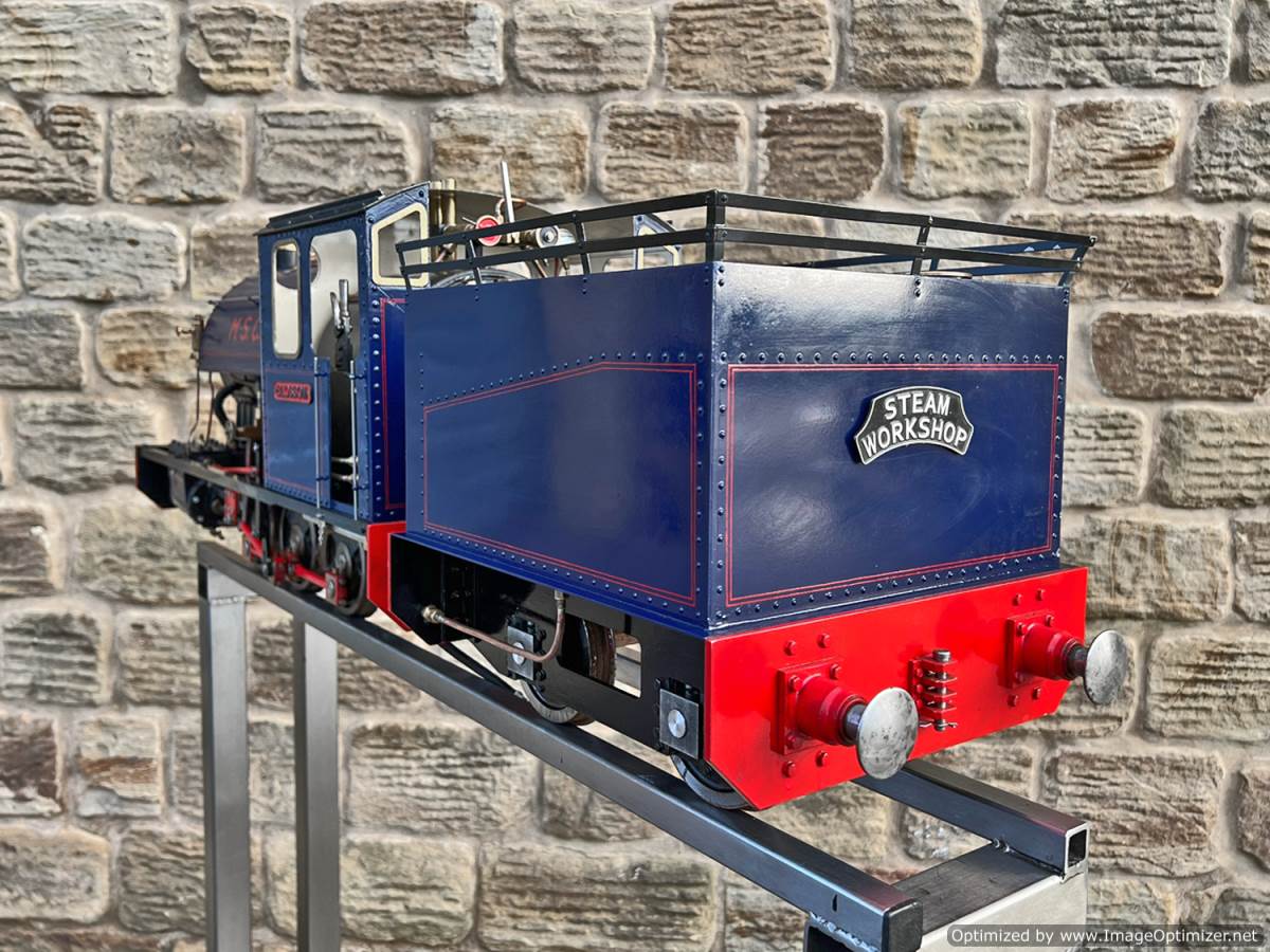 Here we have a 5" gauge 'Metre Maid' 0-6-0. Essentially an extended 0-6-0 take on the Sweet Pea design, and not a particularly commonly built model. Quite a well resolved example this one. The cut down cab and chimney give it a stocky and purposeful look, and the tender balances the whole thing nicely. The big saddle tank, extra water in the tender and the extra set of wheels over a Sweet Pea makes for a more powerful and capable machine.