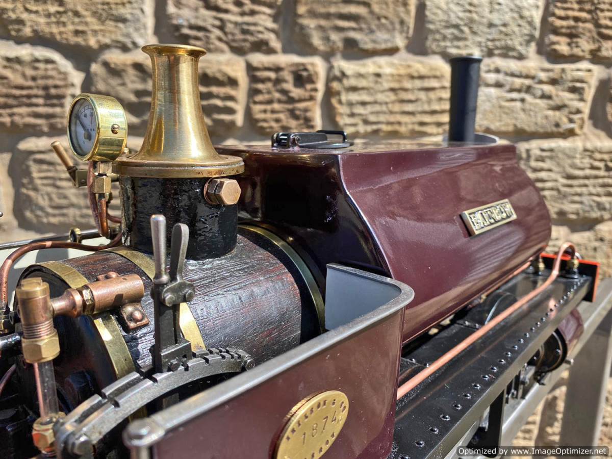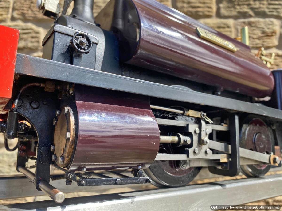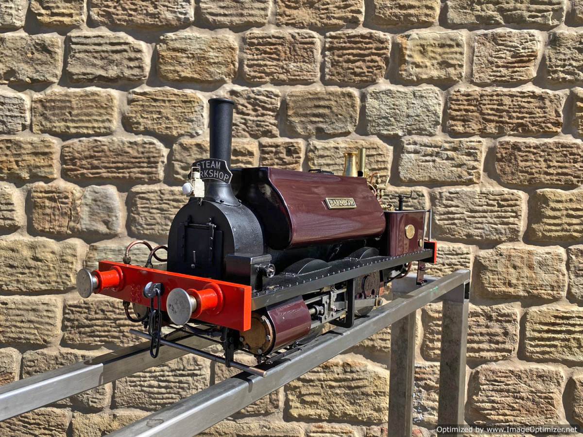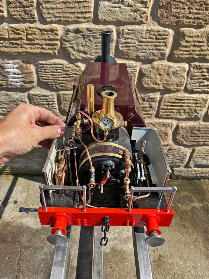 Here we have a super pretty little 5" gauge Neilson & Co. Coffee Pot saddle tank. Built to the published 'Gemma' design by D Malcom. The prototype was originally produced in 1874, and Neilson's built a good number of locos to this basic design and supplied them to all manner of industry. Even the GER and subsequently the LNER has a few which they classified as Y5's. The name plate incidentally is currently just popped on with blu-tack and the tank is un-marked beneath them, so it can go nameless or indeed be 'personalised' if you so wish.