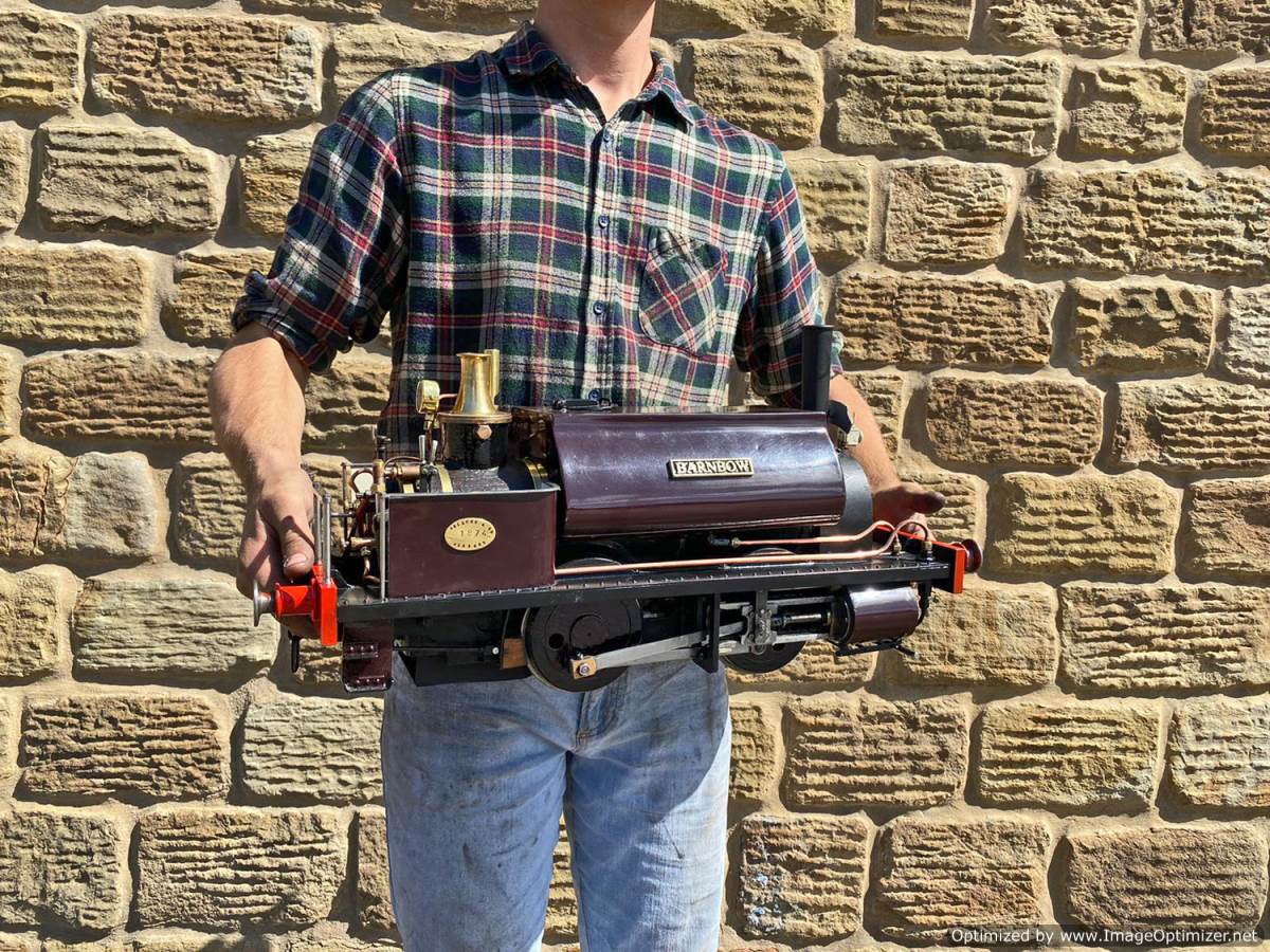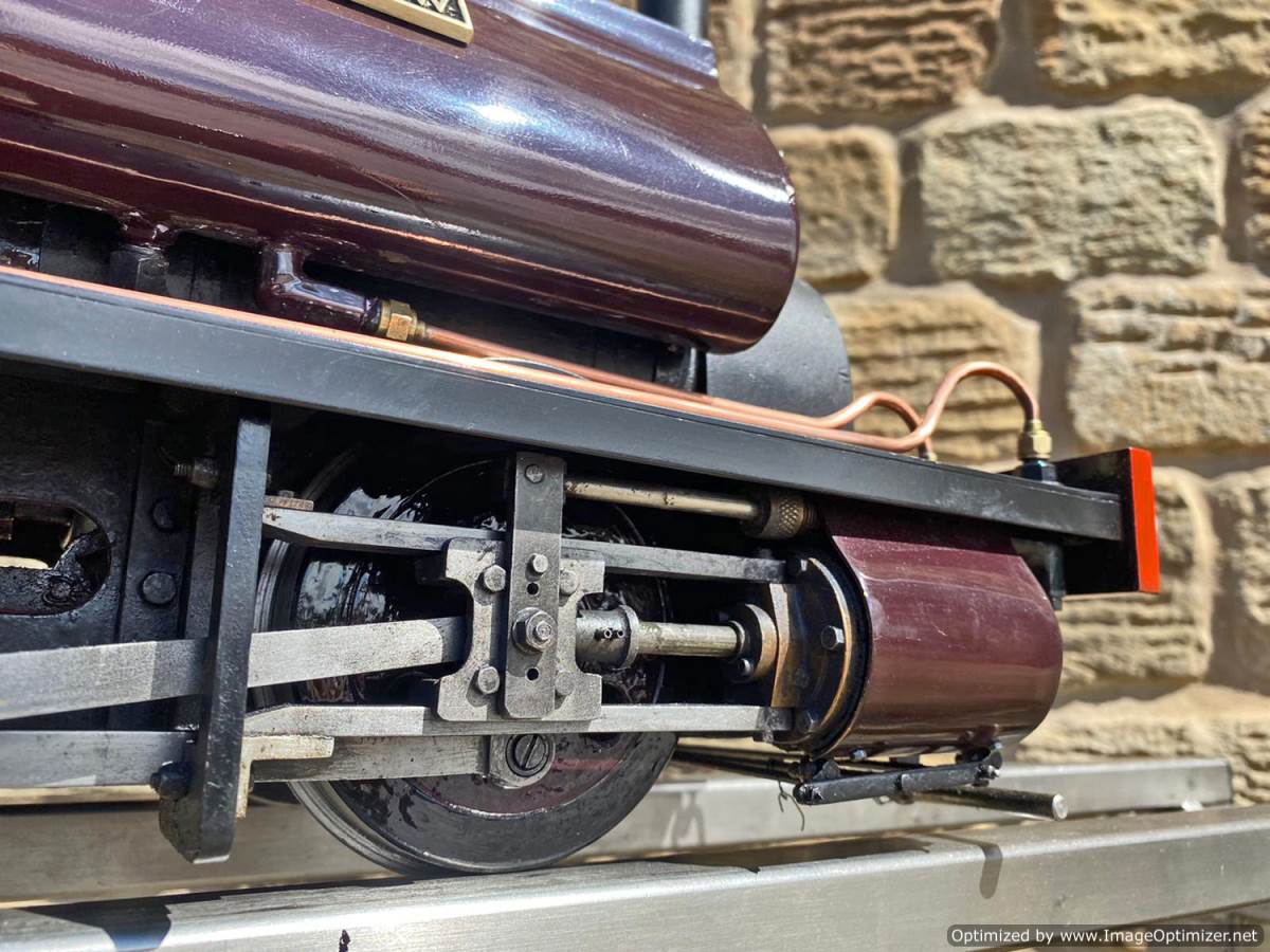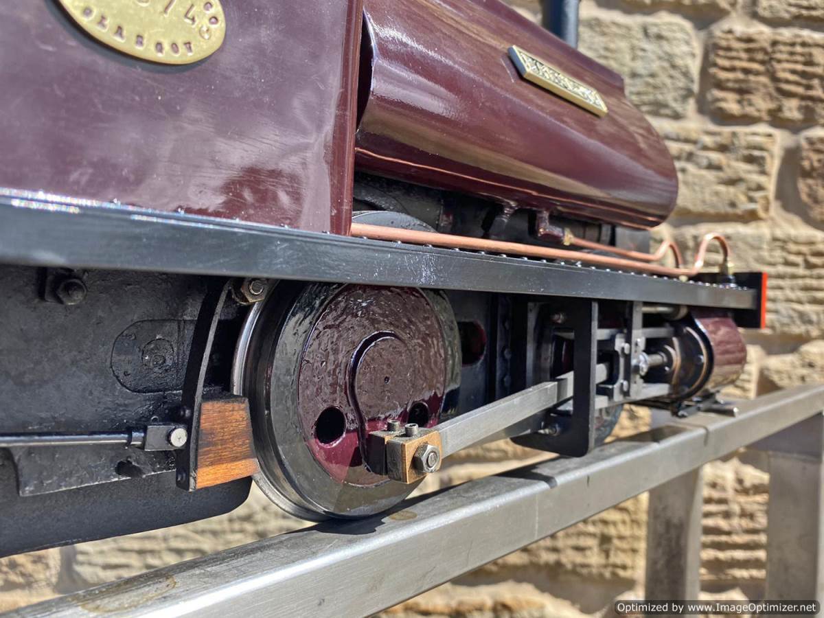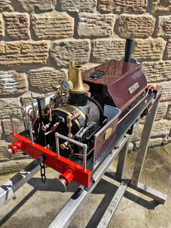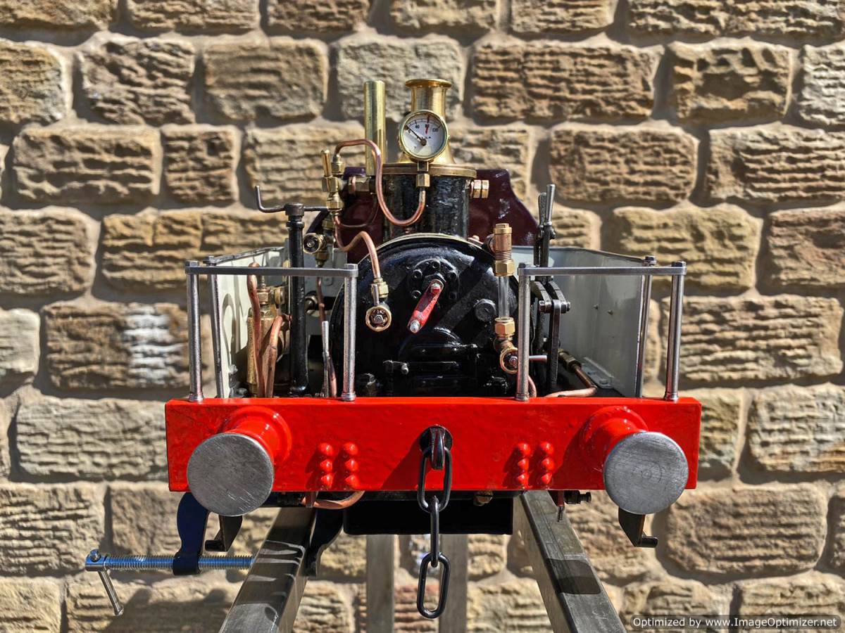 Here we have a super pretty little 5" gauge Neilson & Co. Coffee Pot saddle tank. Built to the published 'Gemma' design by D Malcom. The prototype was originally produced in 1874, and Neilson's built a good number of locos to this basic design and supplied them to all manner of industry. Even the GER and subsequently the LNER has a few which they classified as Y5's. The name plate incidentally is currently just popped on with blu-tack and the tank is un-marked beneath them, so it can go nameless or indeed be 'personalised' if you so wish.