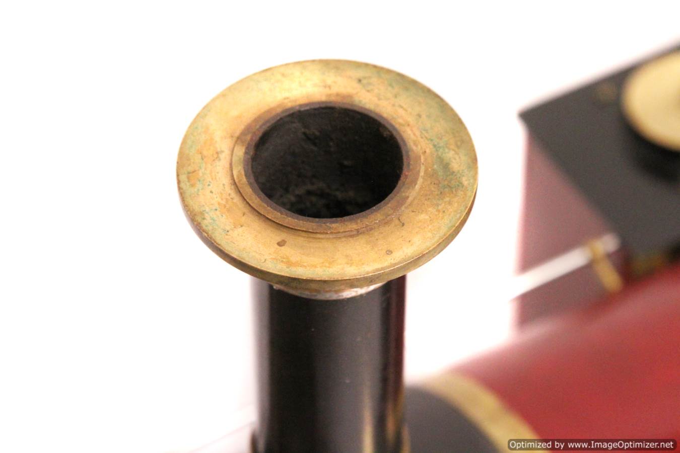 So to this little fella.  It came to us from a private garden railway where sadly due to ill health the engine had fallen into disuse over the last few years.  Although she's been enjoyed, as evidenced by the odd paint chip and scuff, the overall condition of the model is pretty good.  The valve gear is all still nicely tight, and the boiler, being the professional silver soldered copper Polly one, is still in fine condition.  All the original paperwork is here, as well as a fresh 4 year hydraulic certificate and a new annual steam test so that you are ready to hit the rails for the new year!