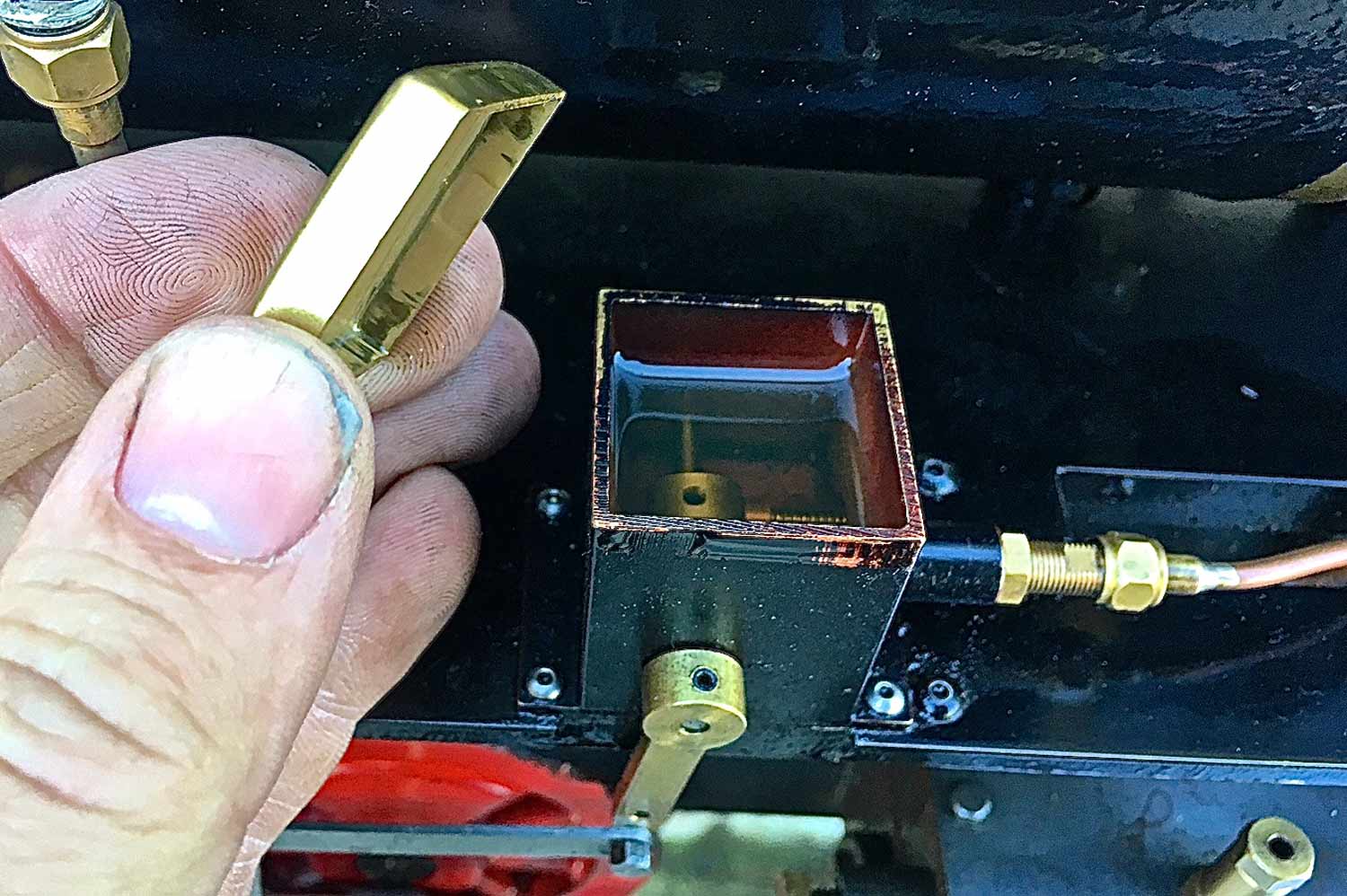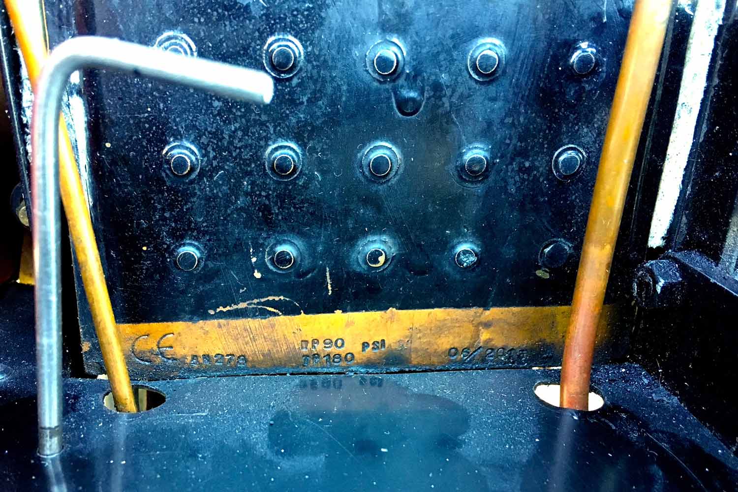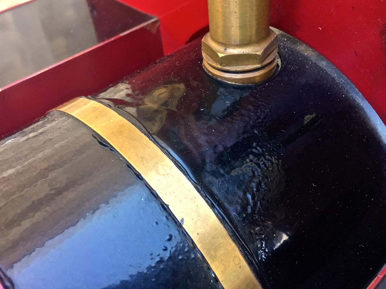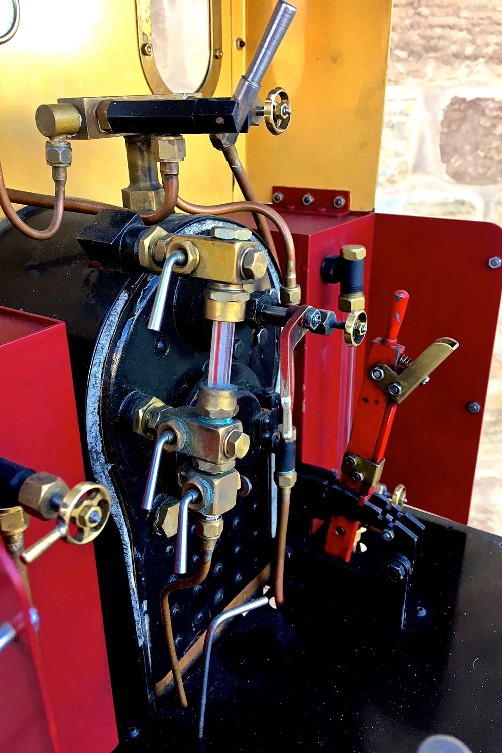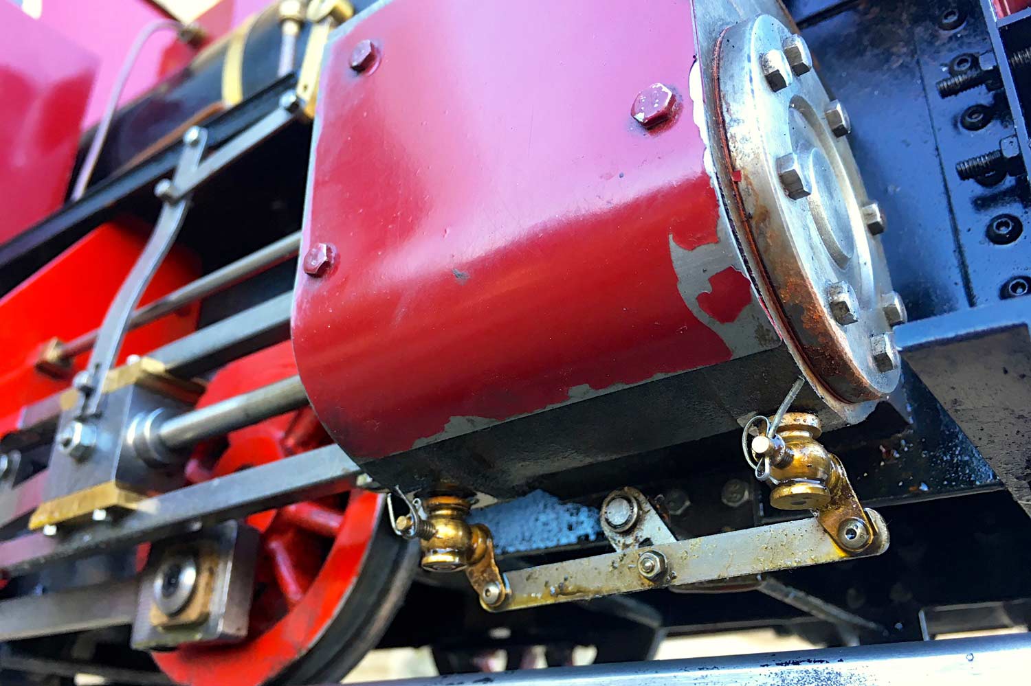 There's no significant slop or wear in the bottom end either, and only the odd paint scuff here n there to give away the fact that she's been run much at all. The black paint on the boiler barrel near the cab has an odd rippled look to it which although mildly unsightly, certainly doesn't detract from the overall appearance. Fitted with an injector, an axle pump with bypas valve and a hand pump in the tank, lubrication is mechanical and there are two fitted, one on each running board.