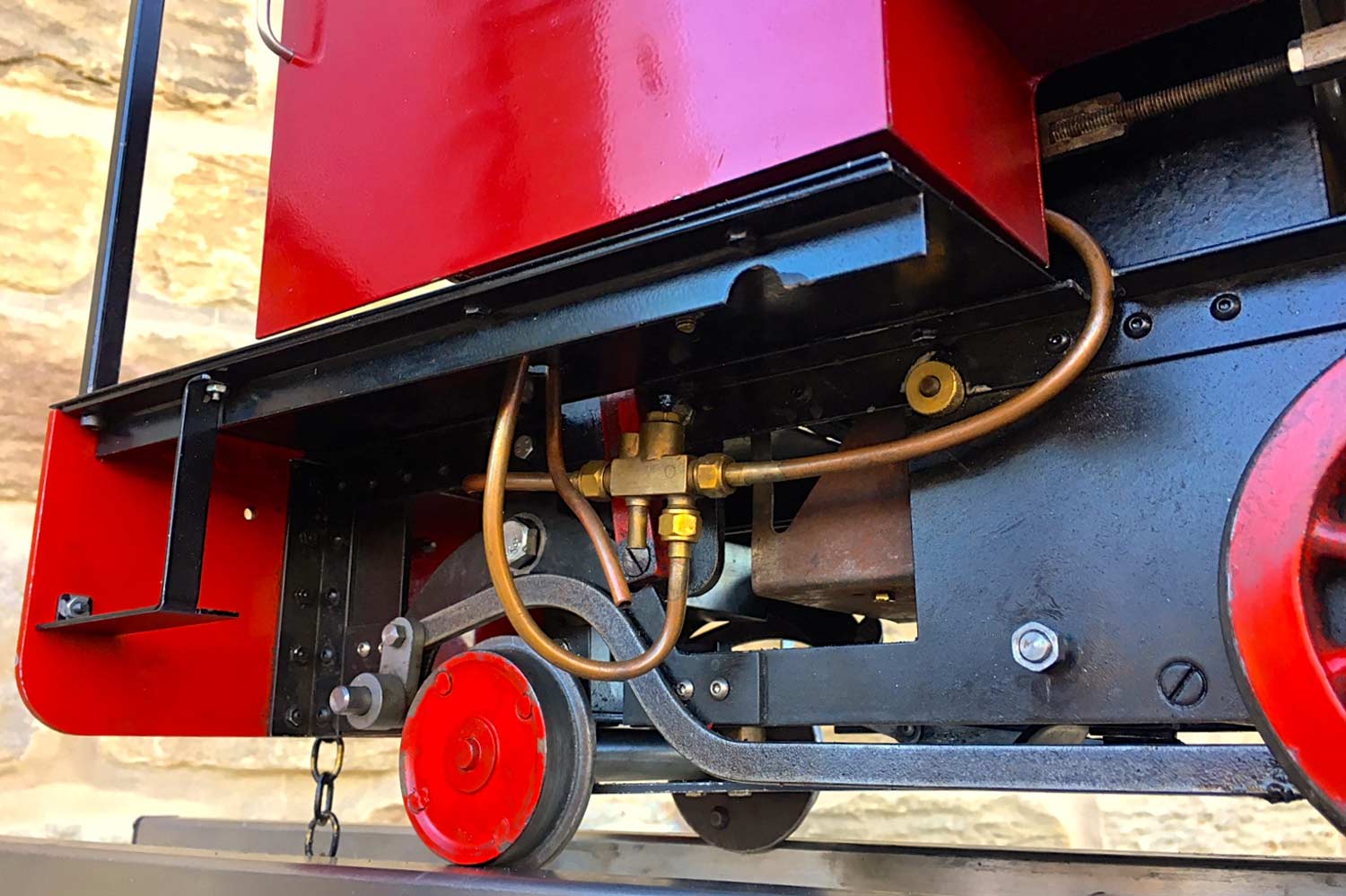 Here we have a rather nicely done 5" Polly 'Caroline' Koppell locomotive. Unusually this one has been modified with a pony truck under the footplate transforming it into a rather attractive 0-4-2. She's pretty much a new loco, having been put together by a very experienced Polly enthusiast and builder. The boiler is the usual extremely neatly constructed professional job from Polly and she's fully tested and ticketed and ready to play.