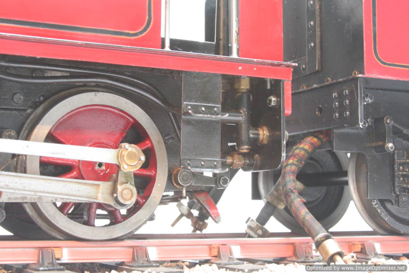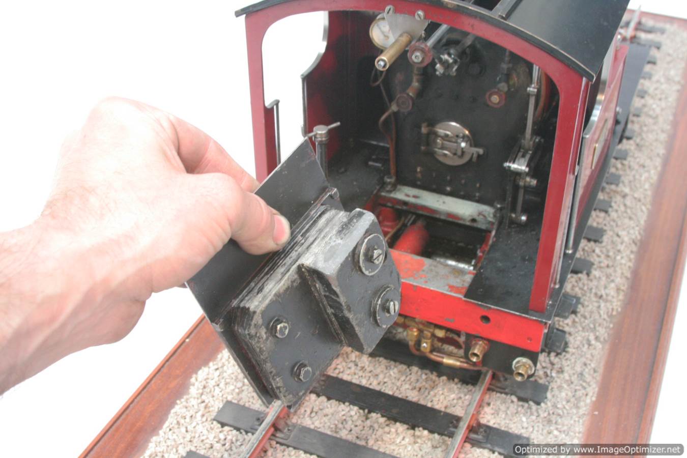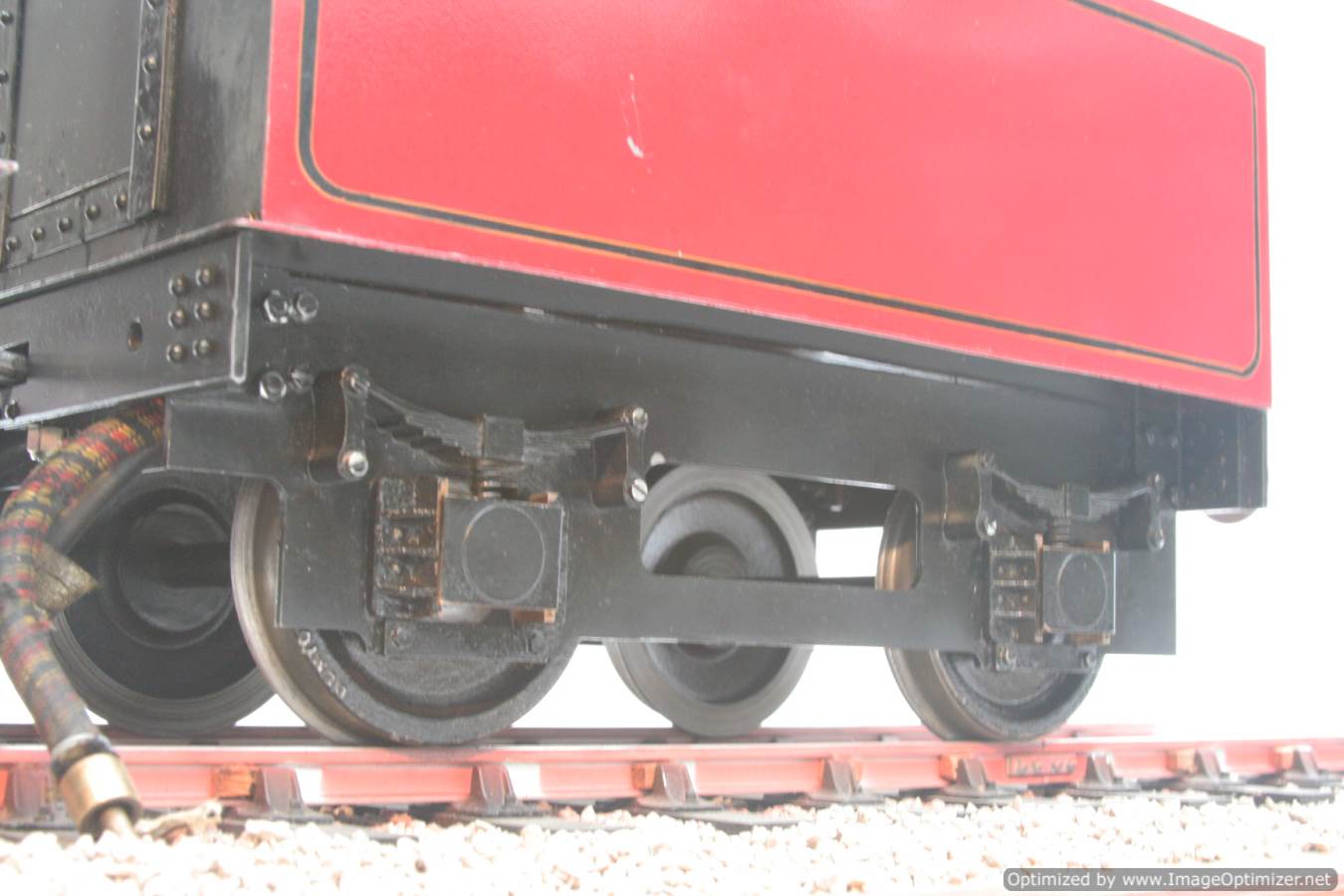 There is an injector, an axle pump and a hand pump in the tender. Lubrication is from twin mechanicals between the frames. There is one large reservoir tank split into two bath so that each cylinders consumption can be monitored. The builder has put a lot of thought into the running of the model, so there is a well designed extension handle on both the regulator and the steam valve for the injector. Huge,.... and we mean, huge lumps of lead on and under the footplate, the top one of which sports a neat little stand to take the fire hole door catch so that it can be held ajar. All in all a superbly conceived model this. Well thought through, well engineered, and built with the finesse that is so often a little lacking in a model. One that we would all gladly give a home in our own collections.