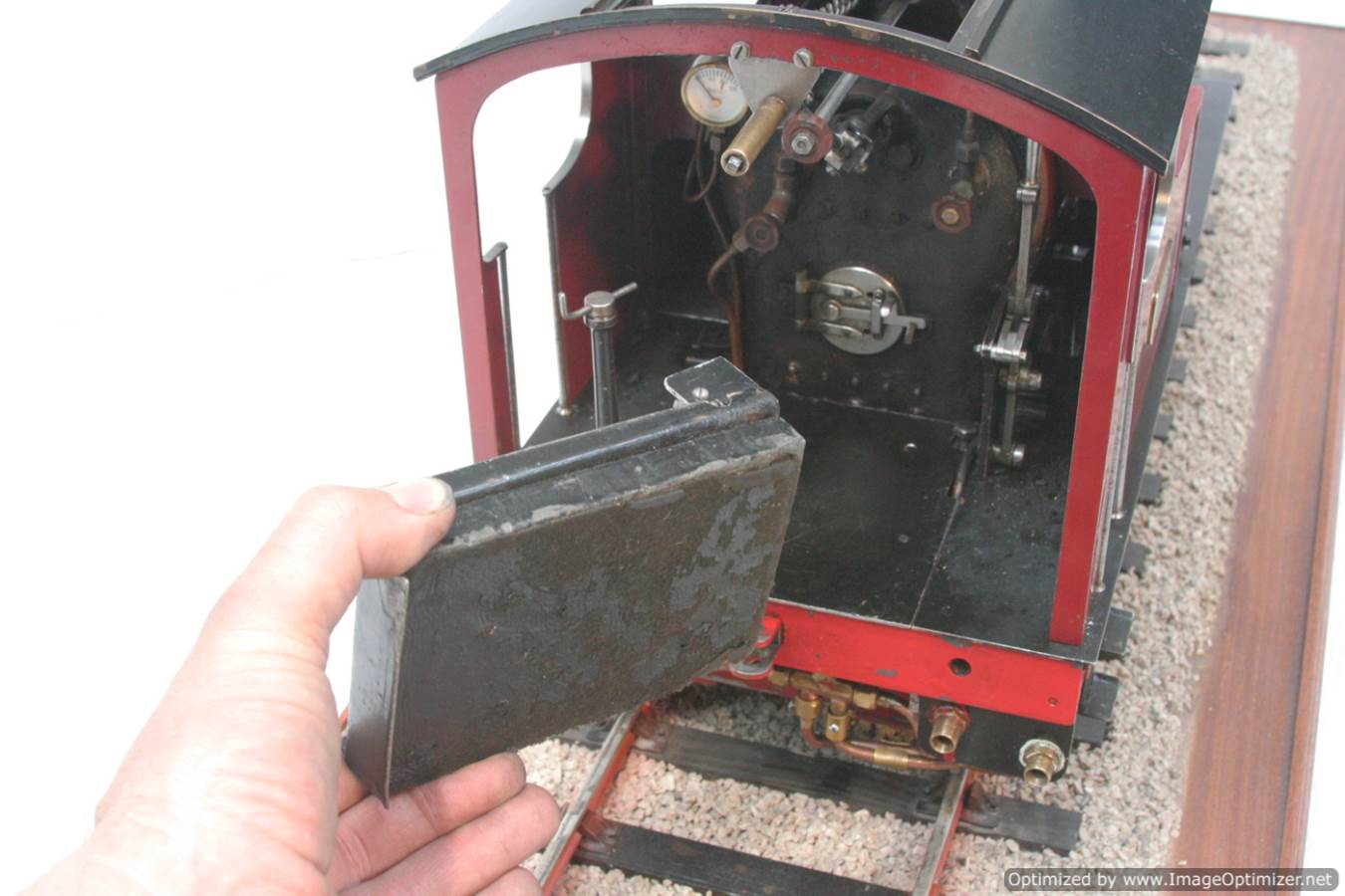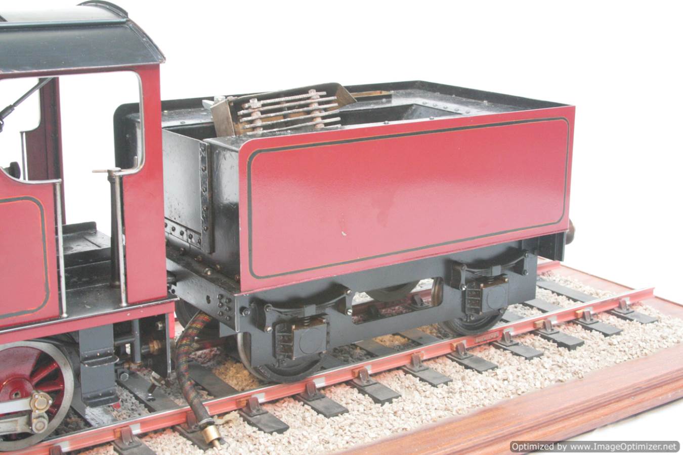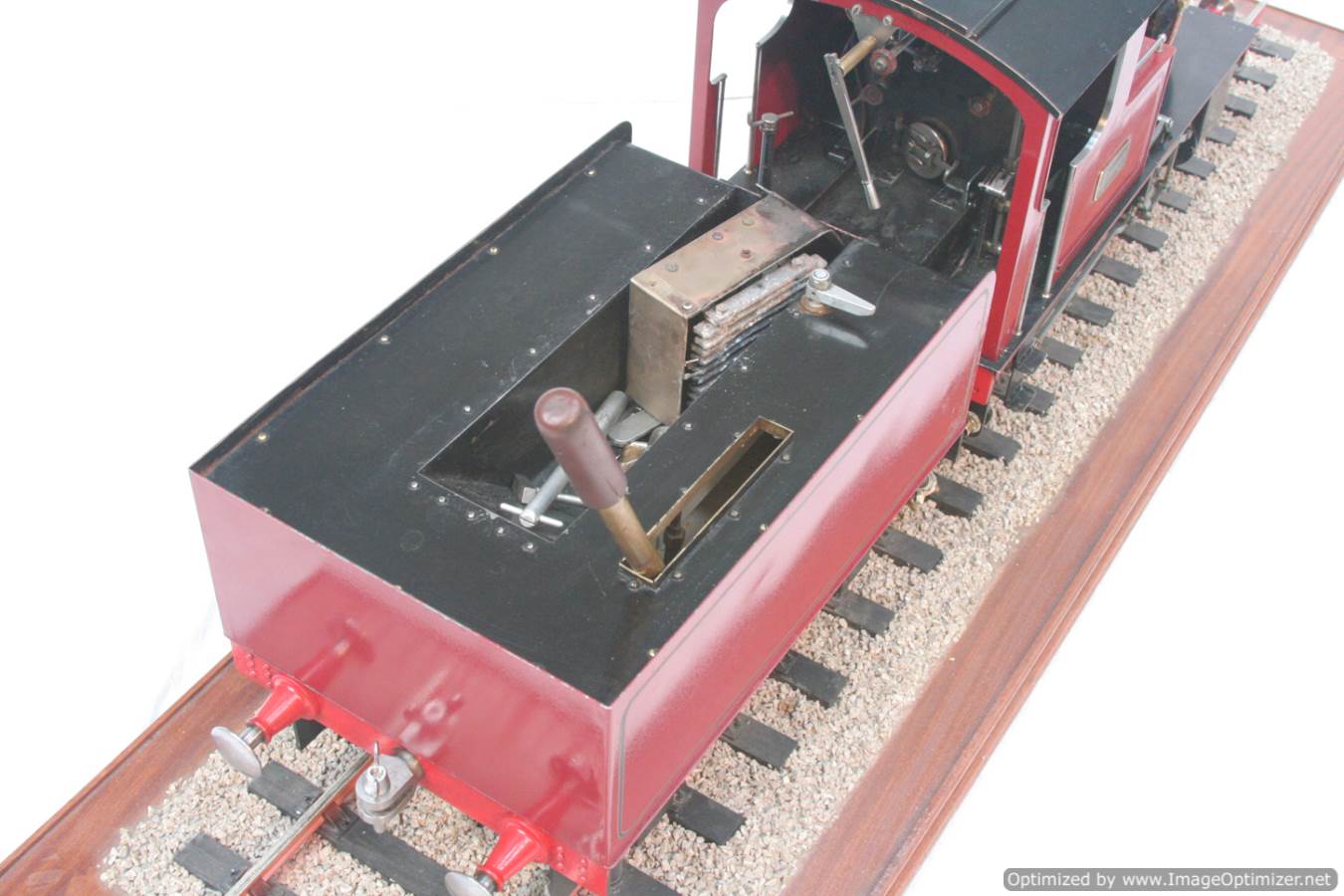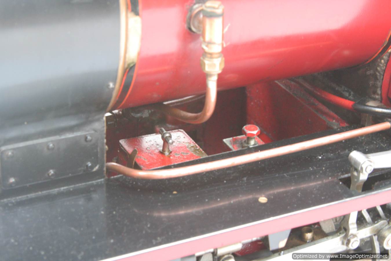 There is an injector, an axle pump and a hand pump in the tender. Lubrication is from twin mechanicals between the frames. There is one large reservoir tank split into two bath so that each cylinders consumption can be monitored. The builder has put a lot of thought into the running of the model, so there is a well designed extension handle on both the regulator and the steam valve for the injector. Huge,.... and we mean, huge lumps of lead on and under the footplate, the top one of which sports a neat little stand to take the fire hole door catch so that it can be held ajar. All in all a superbly conceived model this. Well thought through, well engineered, and built with the finesse that is so often a little lacking in a model. One that we would all gladly give a home in our own collections.