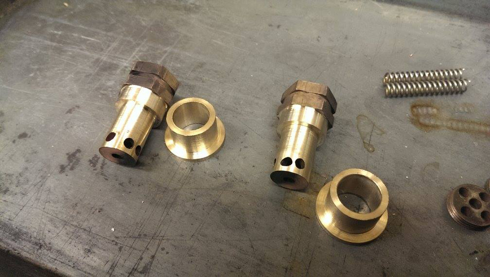 The known issues were firstly, the safety valves. These were old and a little past their sell by date, plus the threaded bushes in the firebox were unacceptably stripped and worn. The cylinders (it's a 2 cylinder model), were each exhausting through individual and separate blast pipes, one directed up each chimney. so as it ran you'd get a chuff up the front chimney and then a chuff from the rear! Lastly, the fittings were likely to be made from brass, and would certainly be crystalised, and need attention if not renewal.