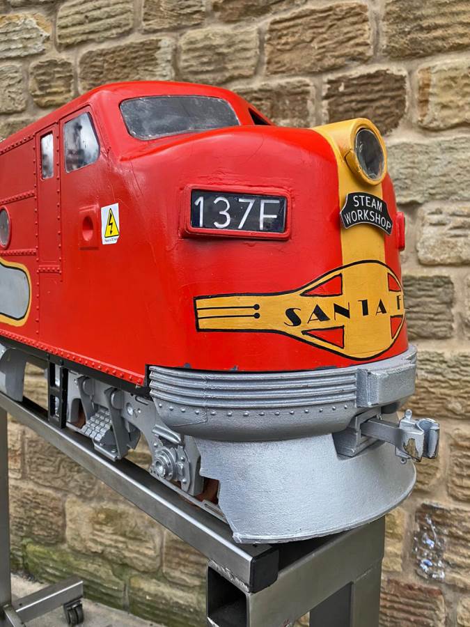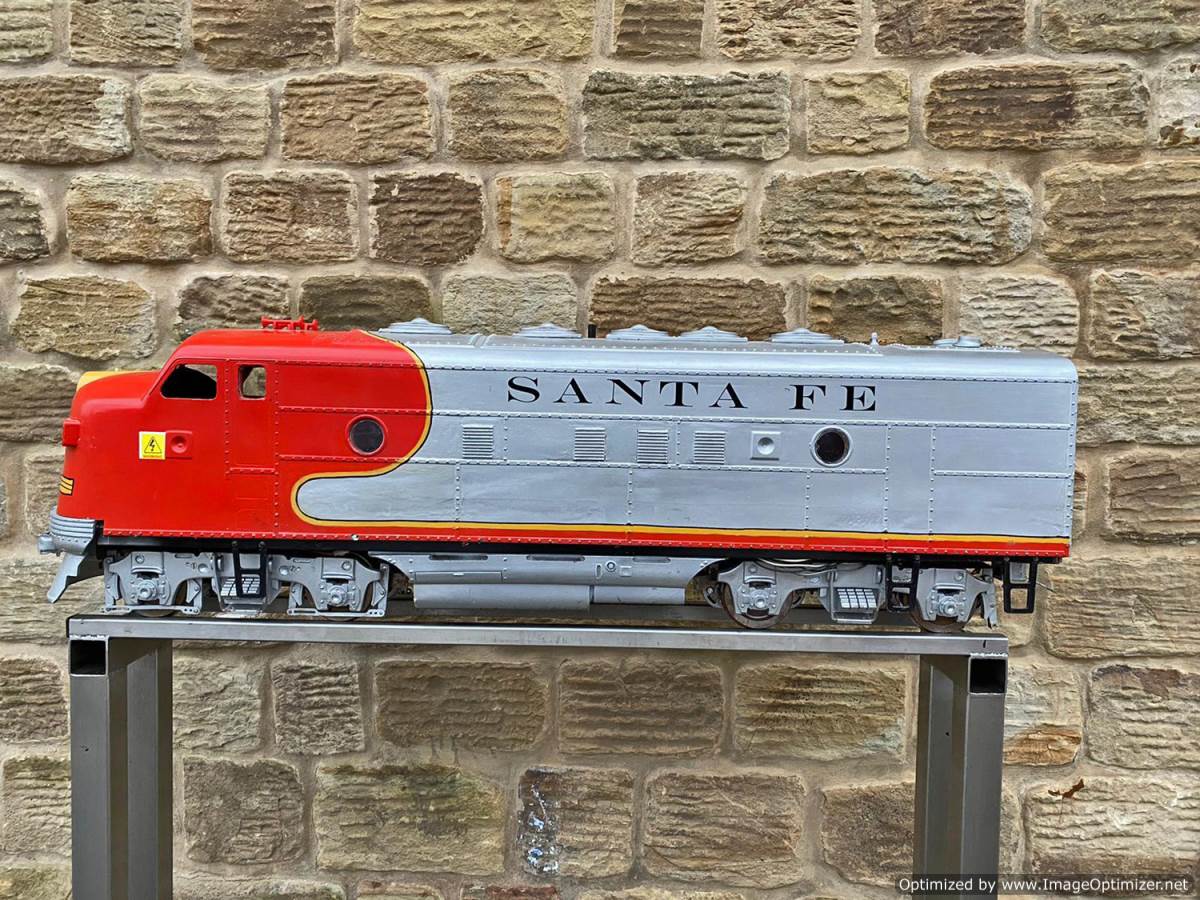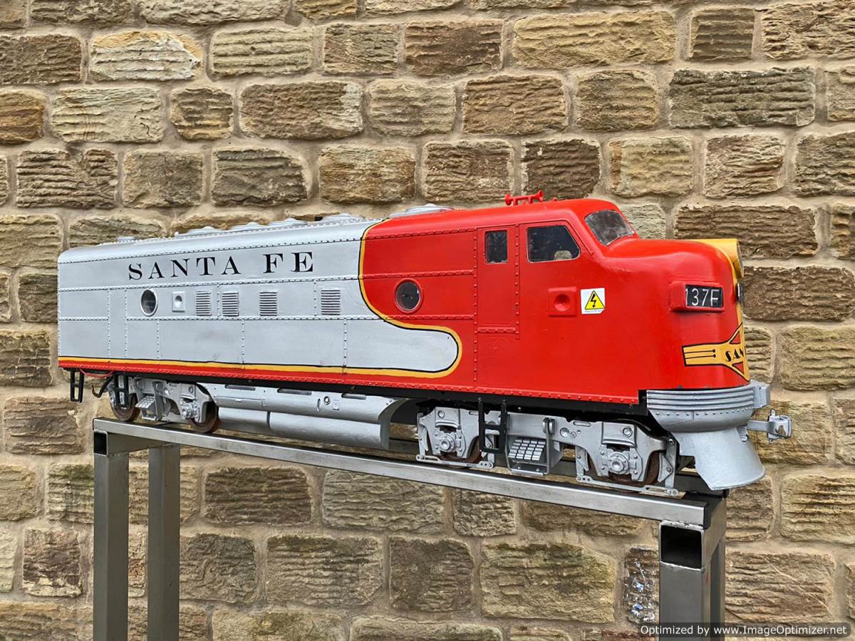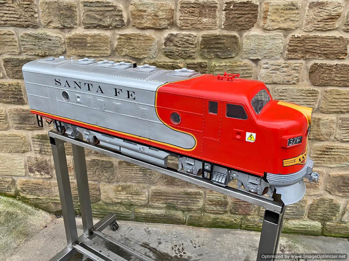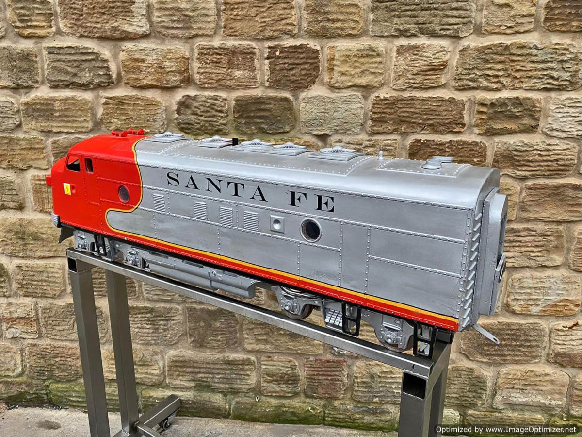 Here we have a 5" Santa Fe F7 Diesel loco built we think from a Maxitrak kit.  In need of a little TLC, but ostensibly complete.  More information to follow soon, but for now have a good look at the photos.