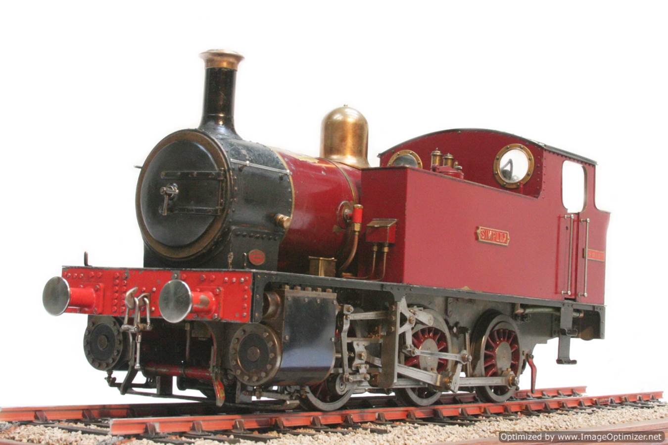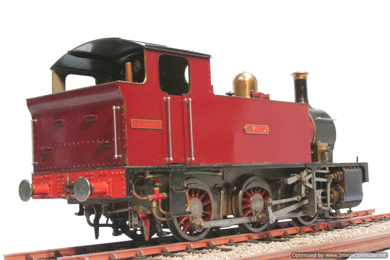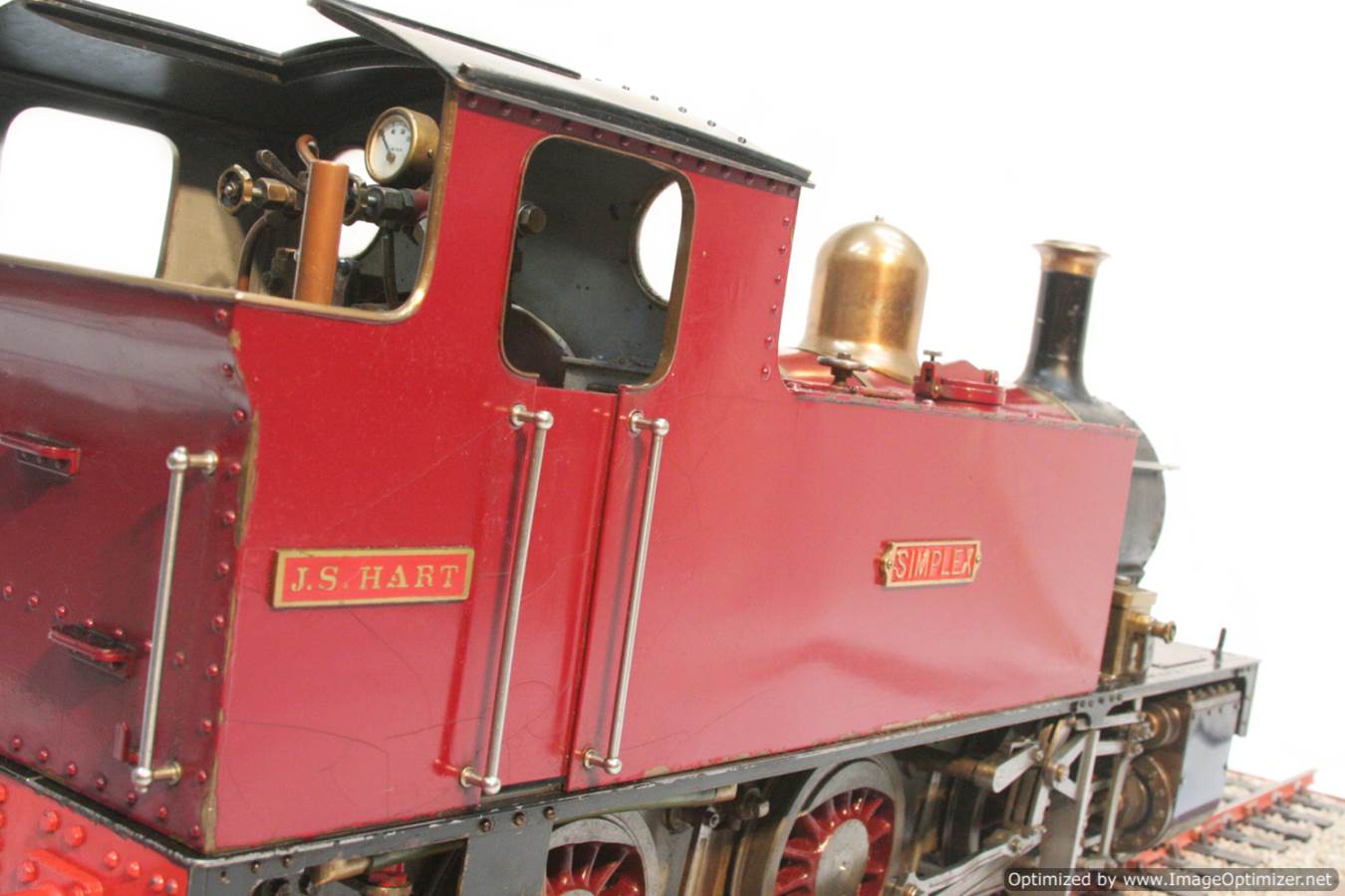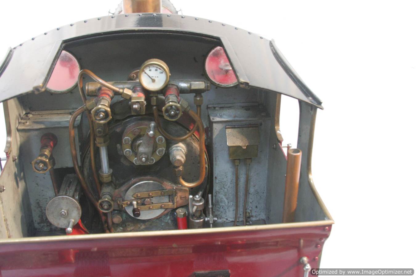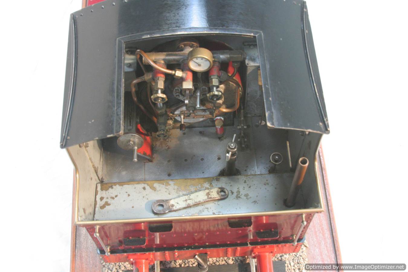 Here we have a well made, and in cosmetically 'run' condition Simplex to Martin Evans' design. Built interestingly by the same builder as the 7 1/4" gauge BR standard class 4 tank that we have just completed the full ground up re-build on, and so fundamentally this is a solidly built model. All the usual bits and bobs are there as it should be, there is an injector, an axle pump with footplate mounted bypass valve and a hand pump in the tank. Lubrication is the usual mechanical job under the front running board. The boiler is of course silver soldered copper, and nicely made, and of course as with all our models she can go fully checked out and tested, with a full fresh 4 year hydraulic certificate and a fresh annual steam certificate. You have to obviously look a little past the tatty paint on this one, but when you do, you'll seer that the machining work is pretty good, and the attention to detail make this a pretty well thought through Simplex.