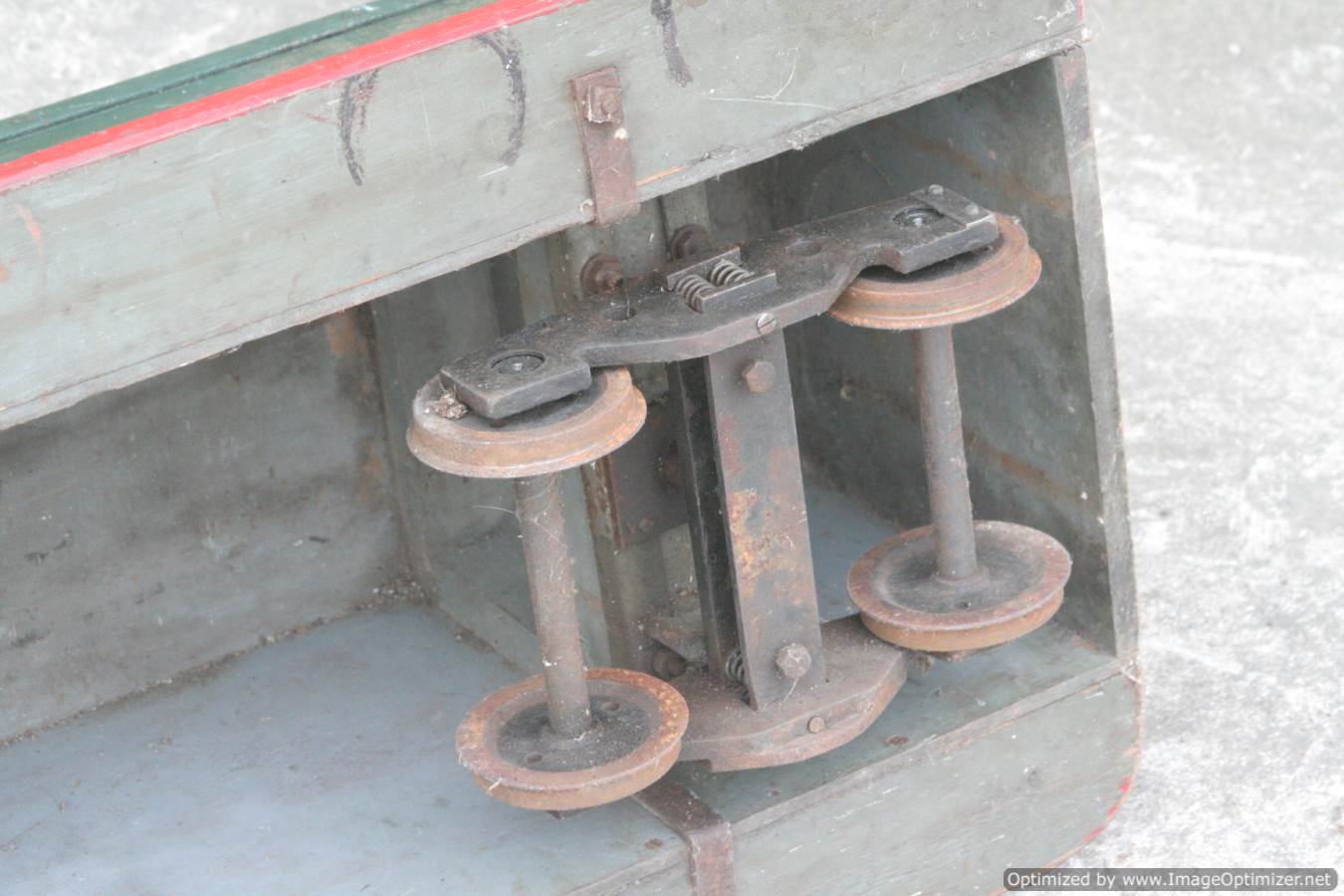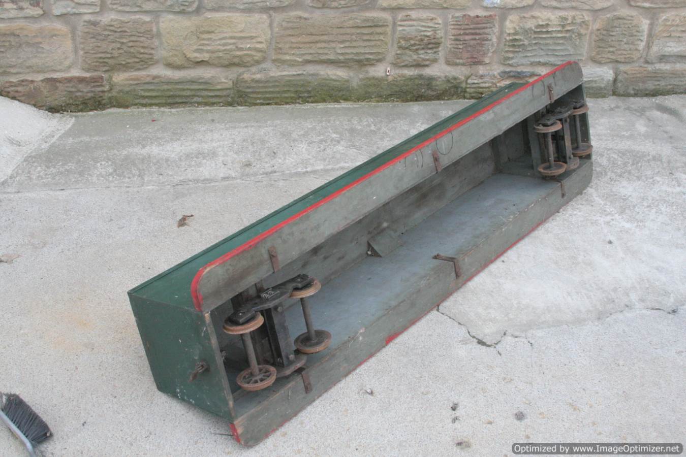 Here we have the second of the pair of 5" bogie passenger riding cars. This is the un-braked one, and therefore is correspondingly less expensive,.... although obviously they run well together so we hope they go as a pair. Nicely made, with well sprung bogies. The body is of sound wood, and although it would benefit from a splash of paint, it is in good condition having been dry stored in the previous owners shed.