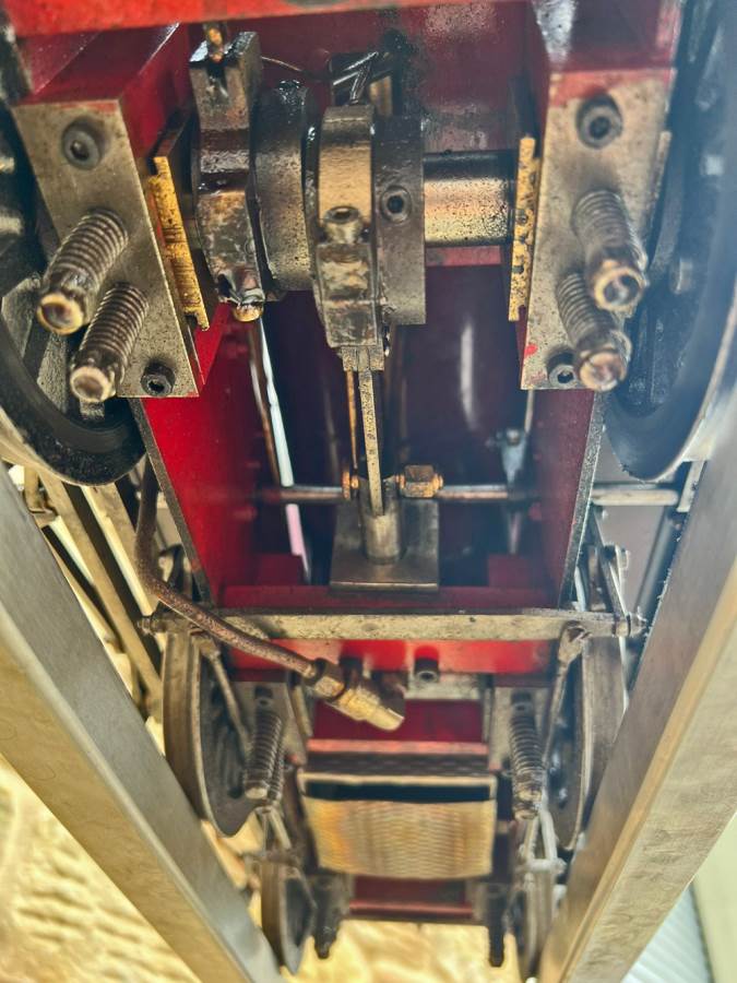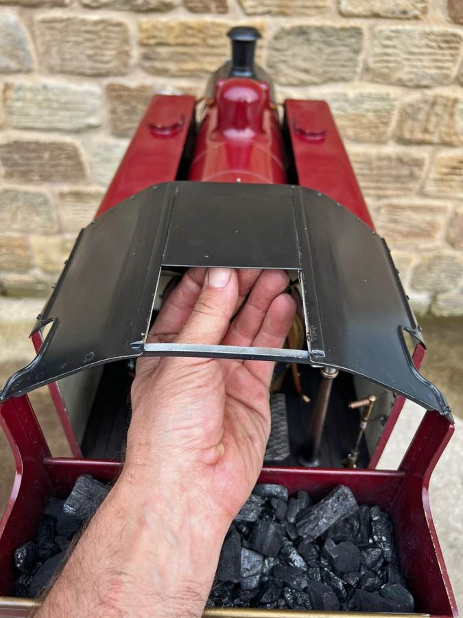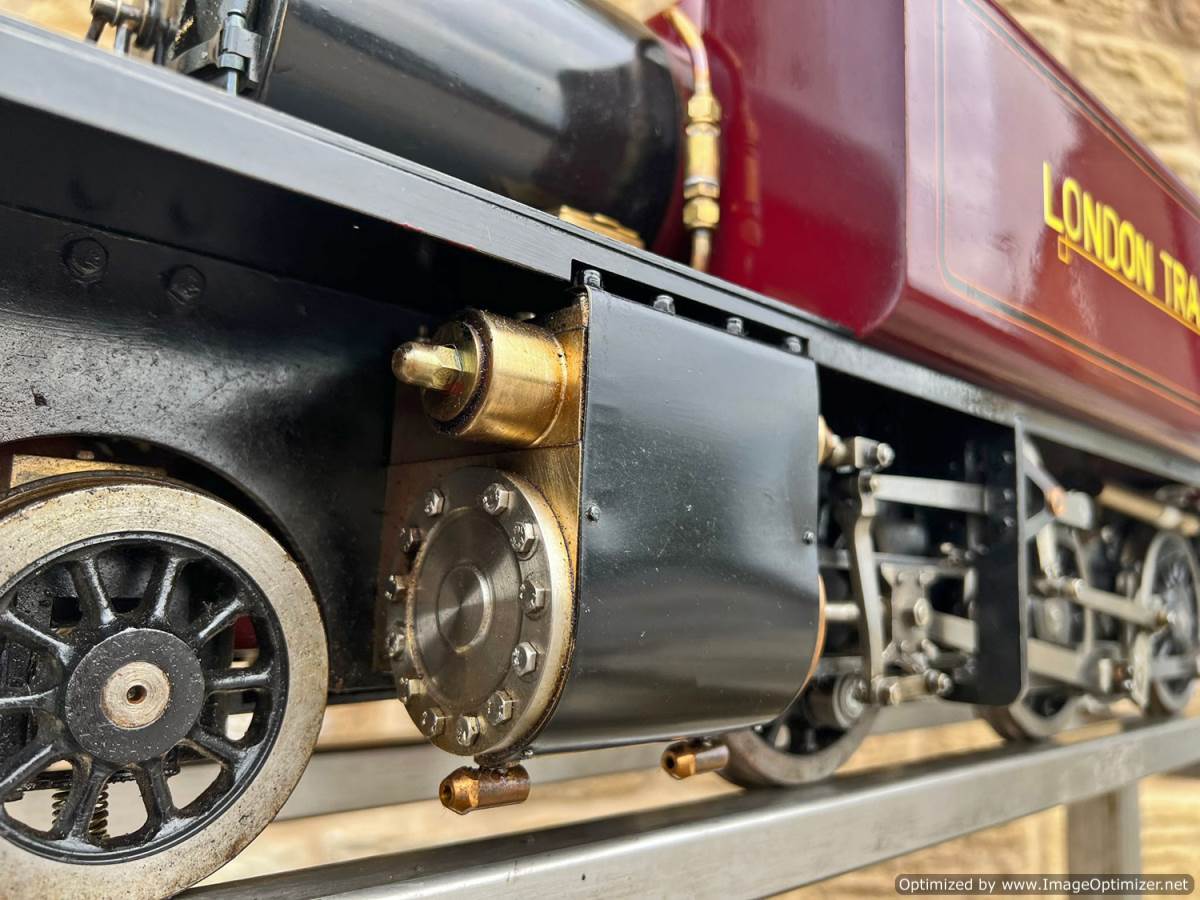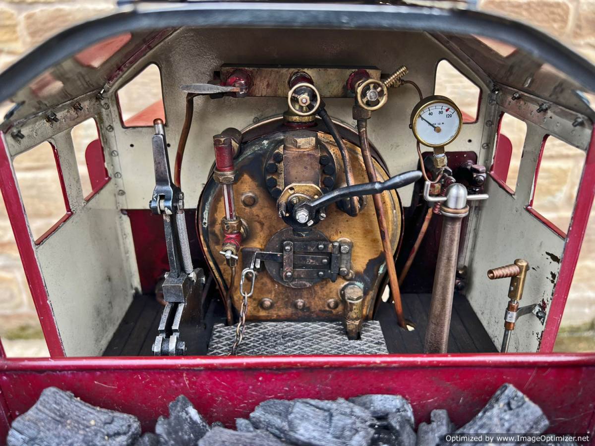 The model doesn't appear to have been run a great deal as everything is in really tight and clean condition, although the degree of soot in the smoke box shows that it has indeed run more than just the odd test steaming. Fitted with an injector, as well as an axle pump with footplate mounted bypass valve, and of course a hand pump in the tank as well. Lubrication is mechanical with a simple reservoir fitted to the front running board. Lots of nice touches including the neat brass oil troughs to enable easy lubrication of the axle boxes. The boiler is superheated and is neatly silver soldered, coming with boiler history as well as fresh hydraulic tests and a fresh annual steam test so she's ready to run.