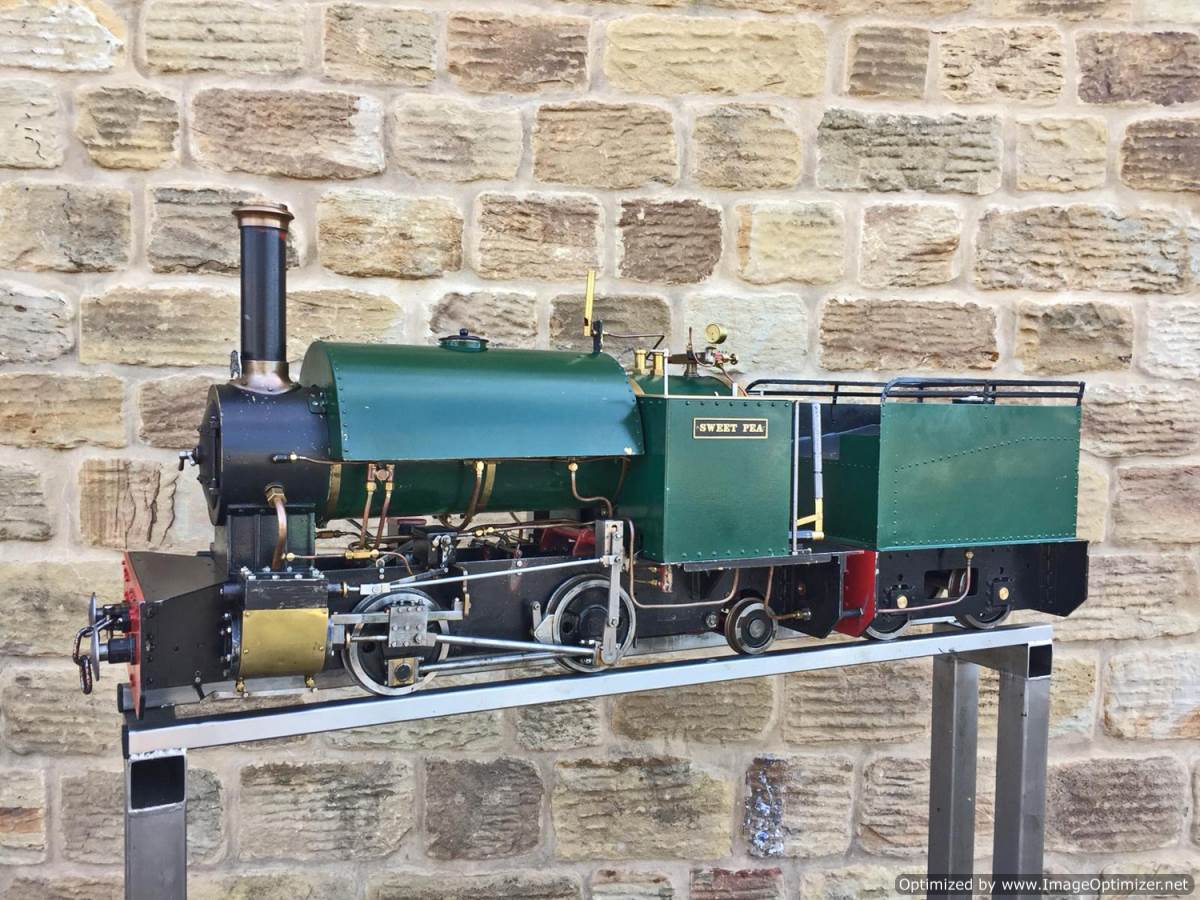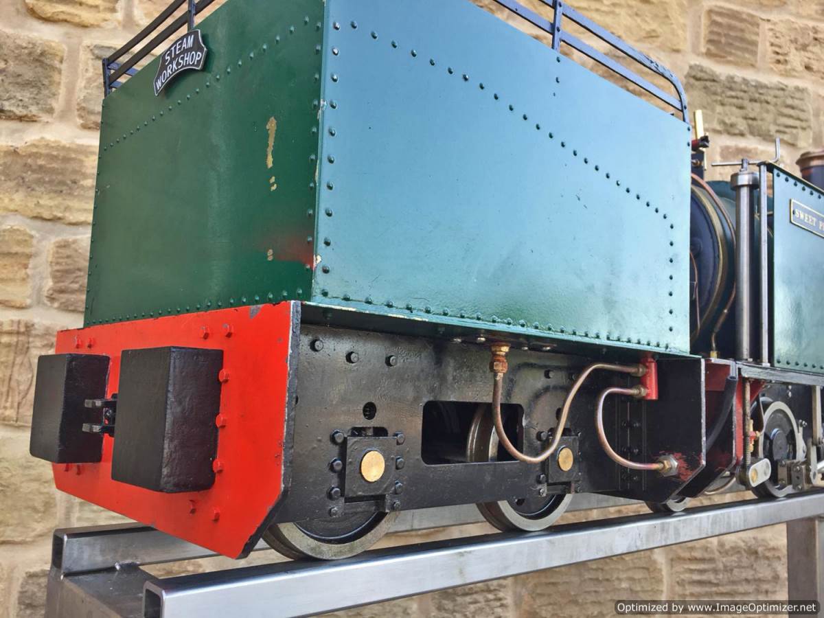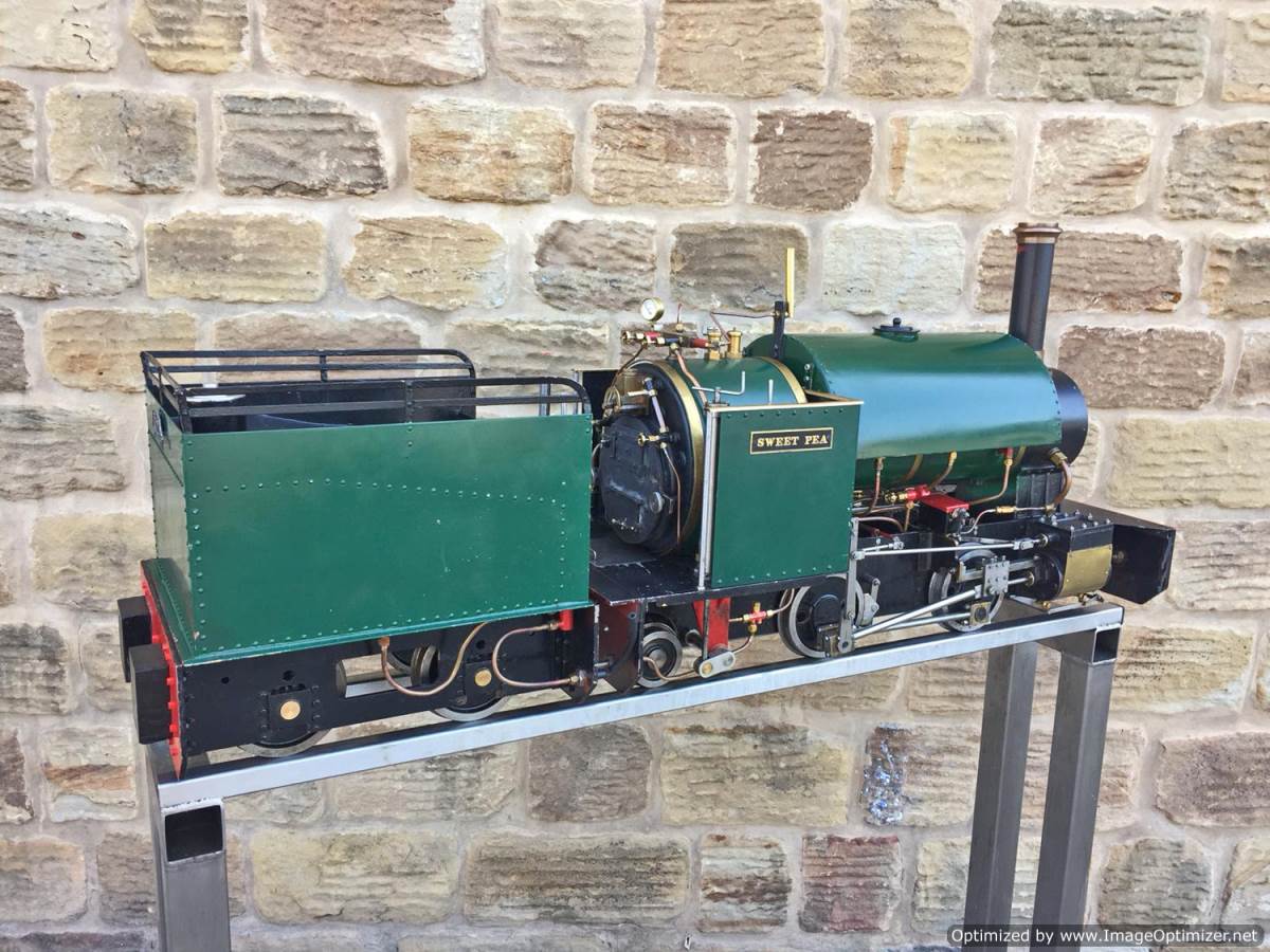 Here we have another nice example of the ever faithful 5" gauge Sweet Pea! This one is a well engineered and proven loco with a tight bottom end. The wear and tear is minimal for Hackworth valve gear, and she certainly runs well enough! Fitted with an injector, a hand pump on the footplate and an axle pump with footplate mounted bypass valve. Lubrication is through twin mechanical lubricators, one for each cylinder that are easily accessible above the valve gear on each side.