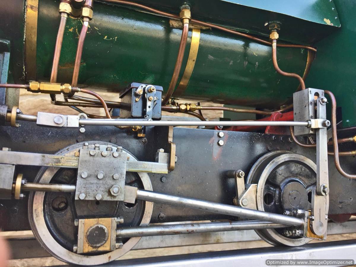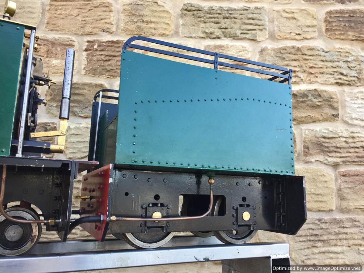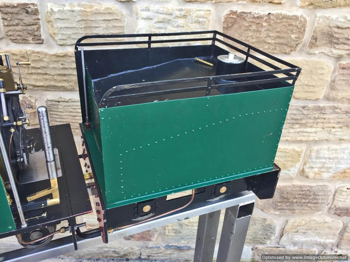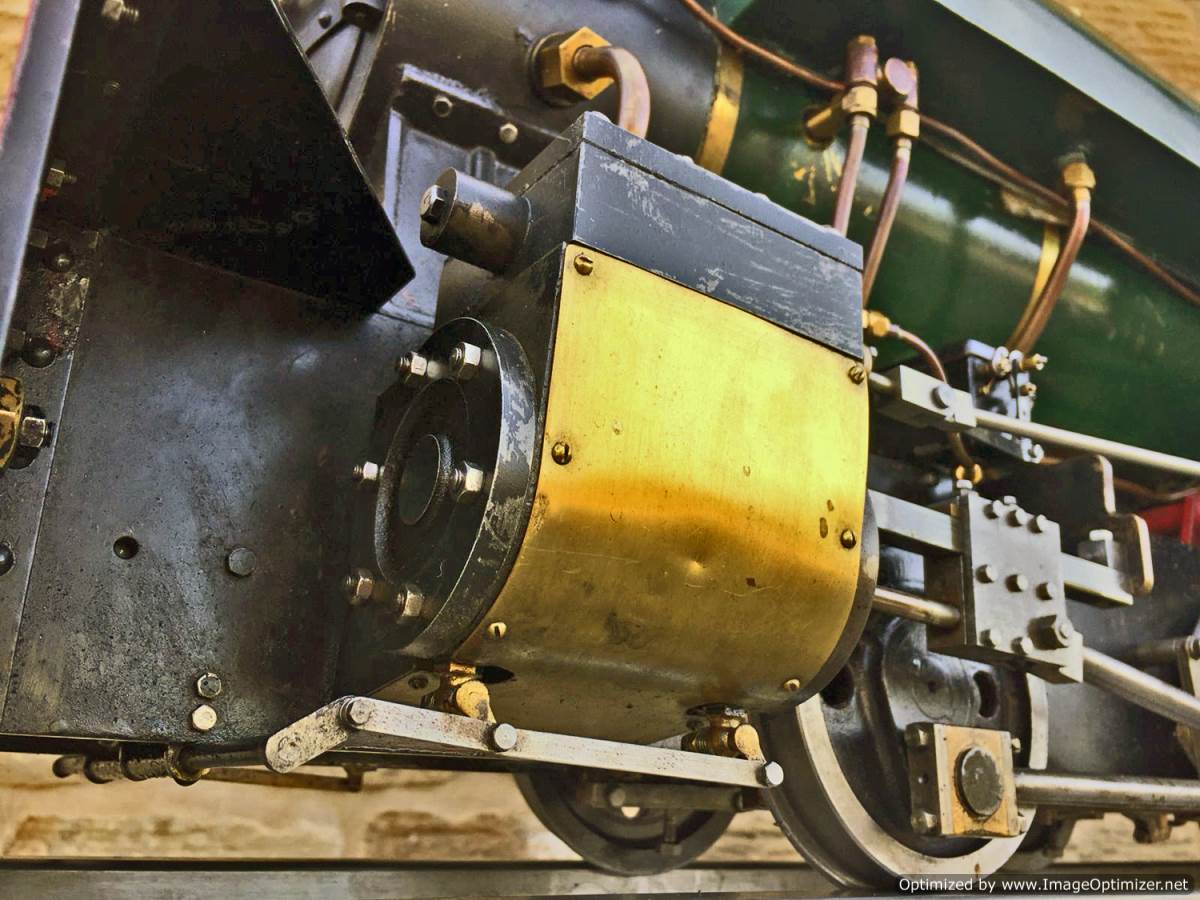 Here we have another nice example of the ever faithful 5" gauge Sweet Pea! This one is a well engineered and proven loco with a tight bottom end. The wear and tear is minimal for Hackworth valve gear, and she certainly runs well enough! Fitted with an injector, a hand pump on the footplate and an axle pump with footplate mounted bypass valve. Lubrication is through twin mechanical lubricators, one for each cylinder that are easily accessible above the valve gear on each side.