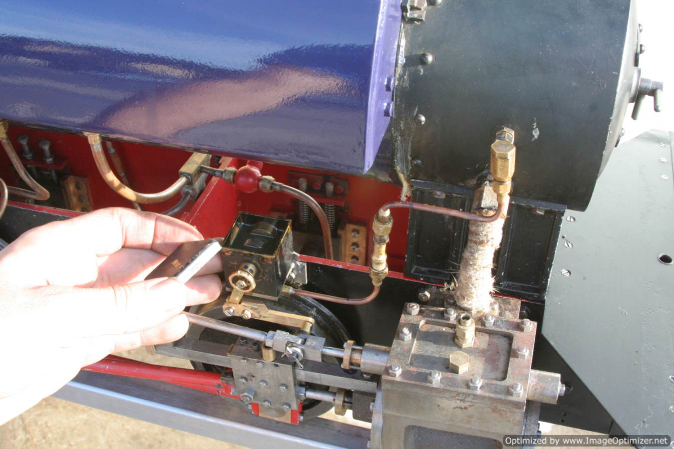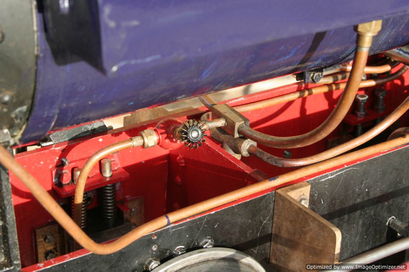 She is fitted with an injector, an axle pump with footplate bypass valve, and also a hand pump on the footplate. The model is not brand new, and has clearly been used, but with that in mind it is well built, and has recently had a fresh coat of paint to tidy up the odd chip and scuff here n there.