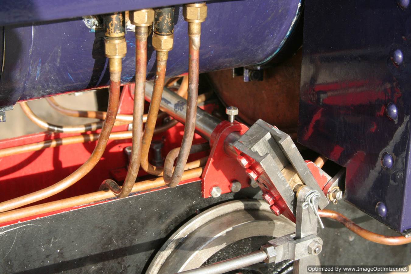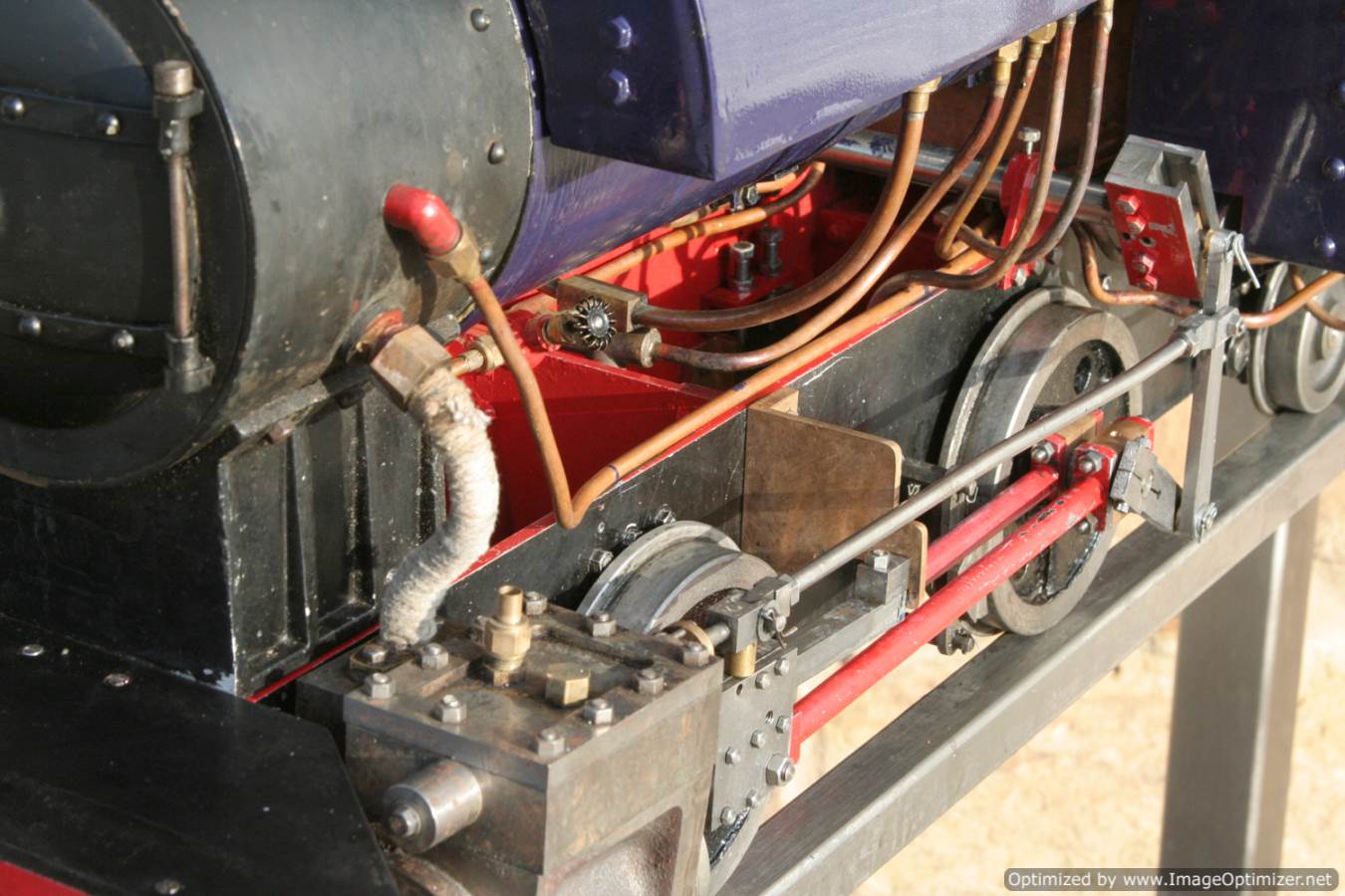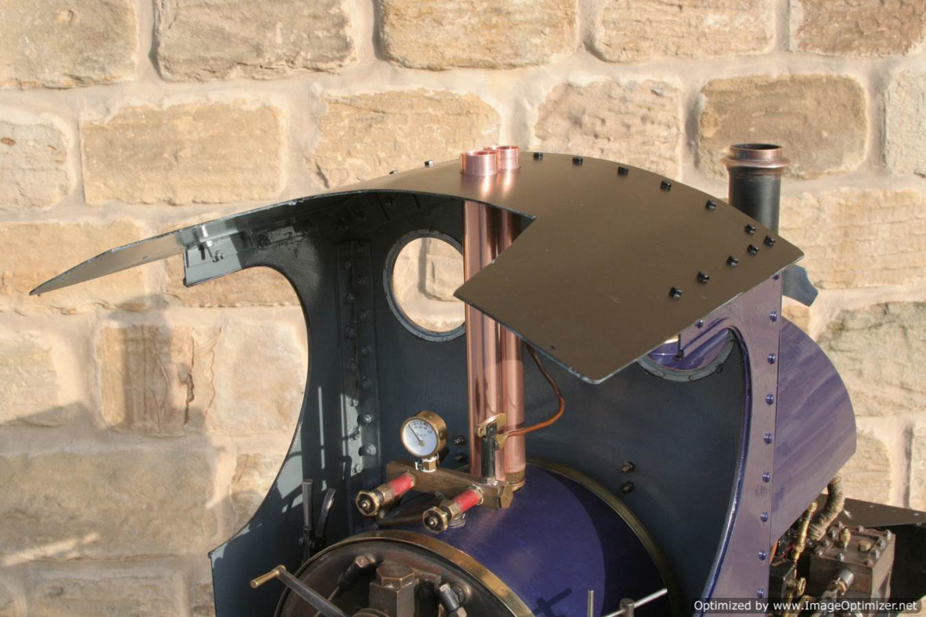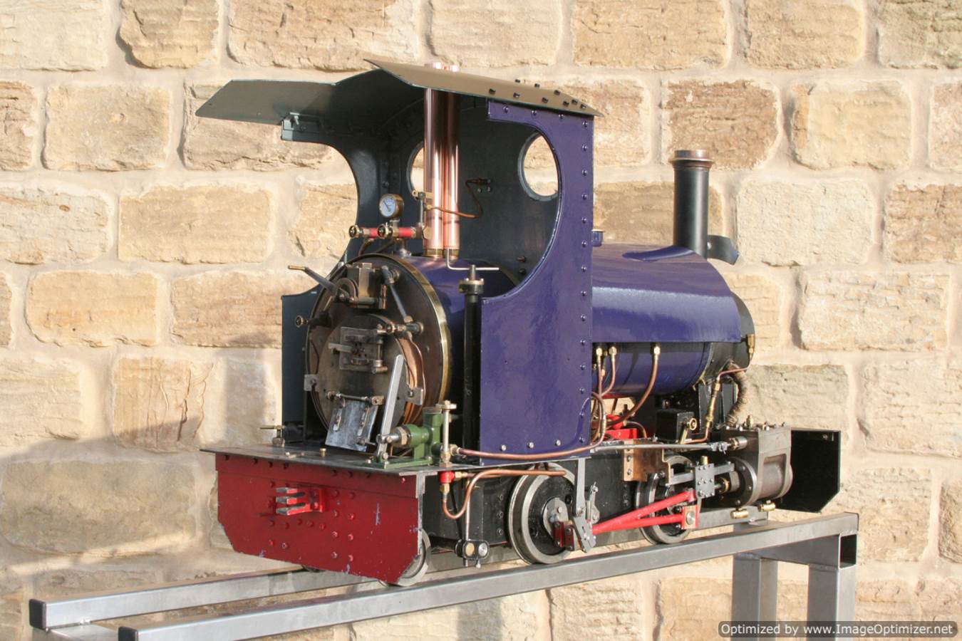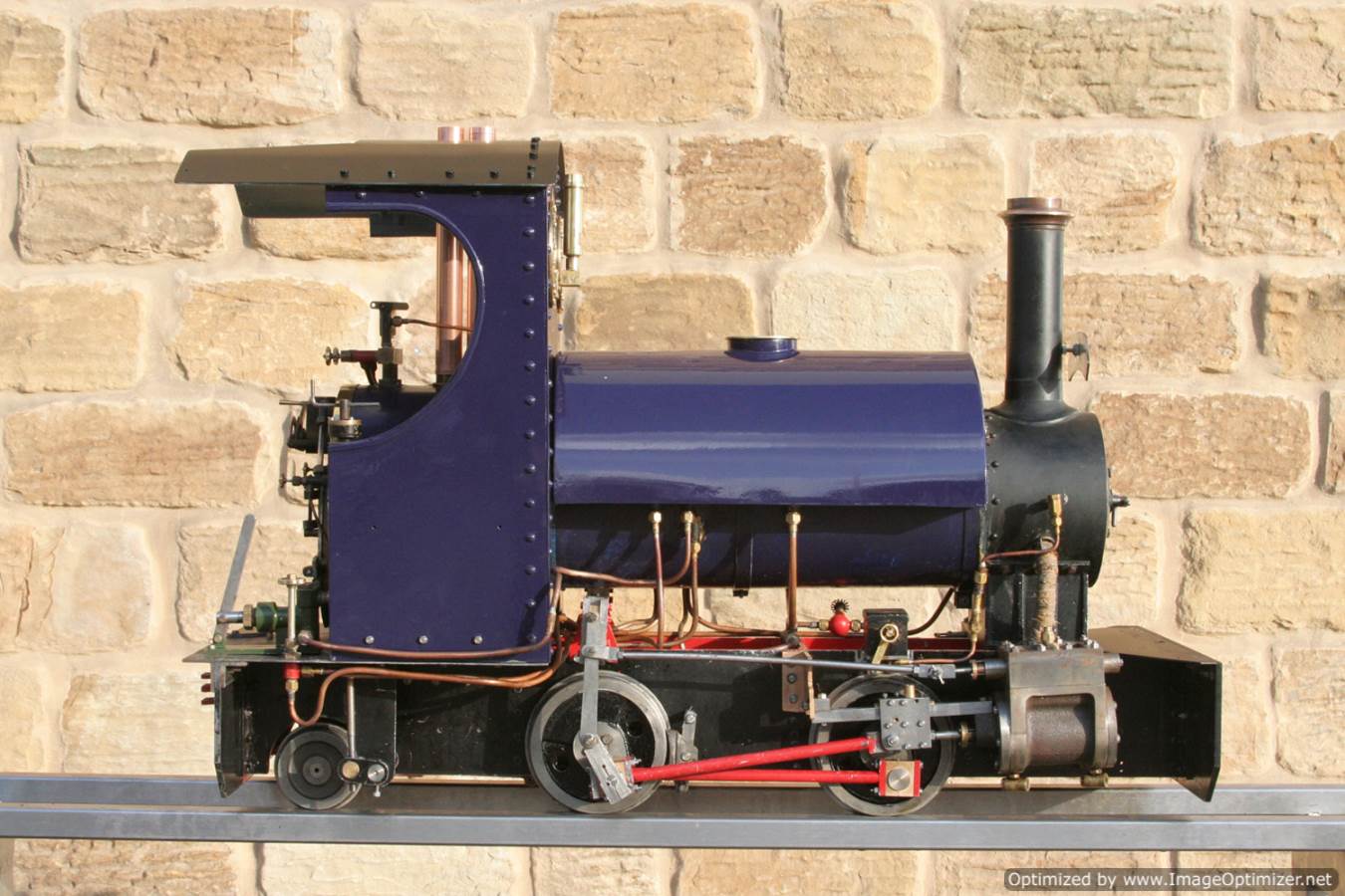 Here we have another ready to play 5" gauge Sweet Pea, to the ever popular design. The boiler is a very tidy, professional looking copper silver soldered one, and of course we've tested that everything works as it should so she can come with a full 4 year boiler test certificate and a fresh annual steam certificate. She is painted in the rather nice deep purple blue that we painted the Burrell traction engine that we recently finished re-building, Yorkshire Lass.