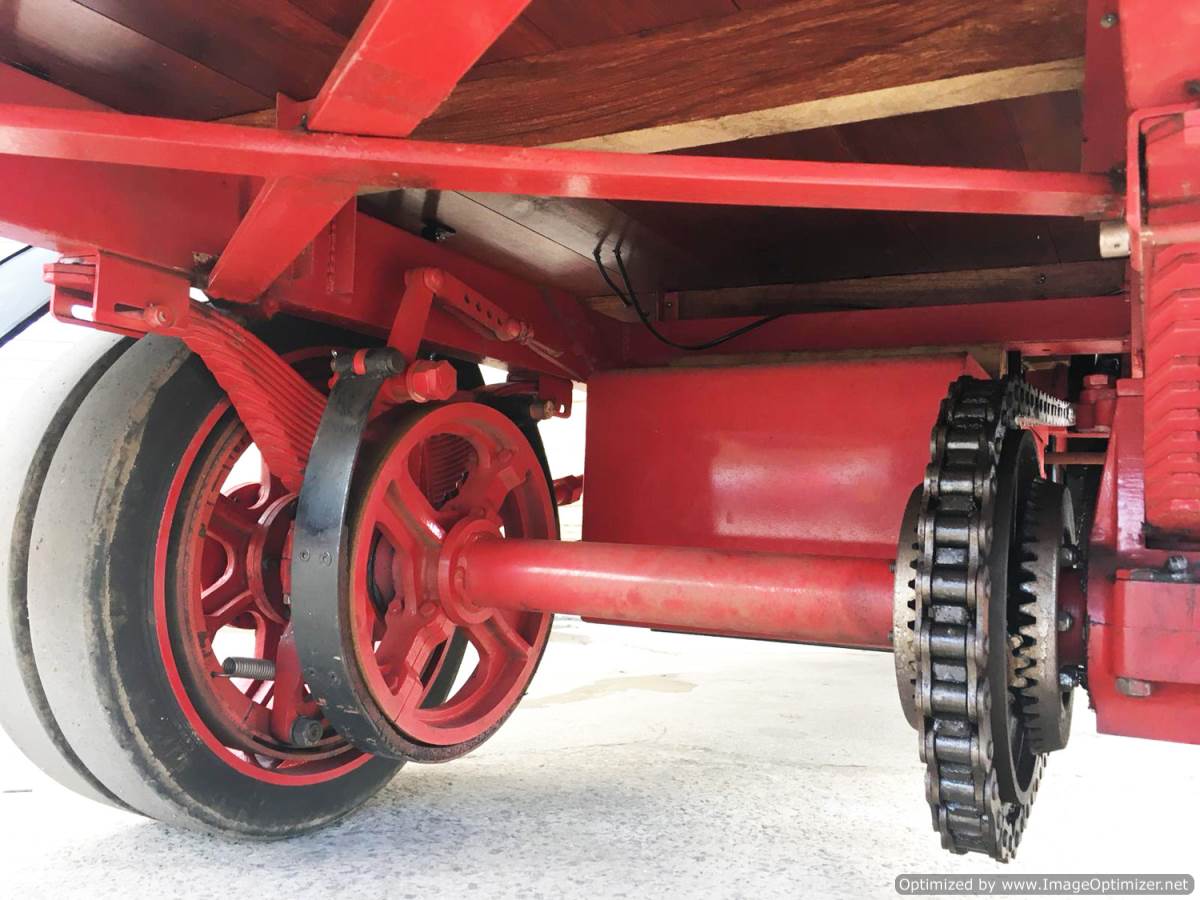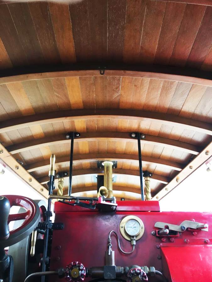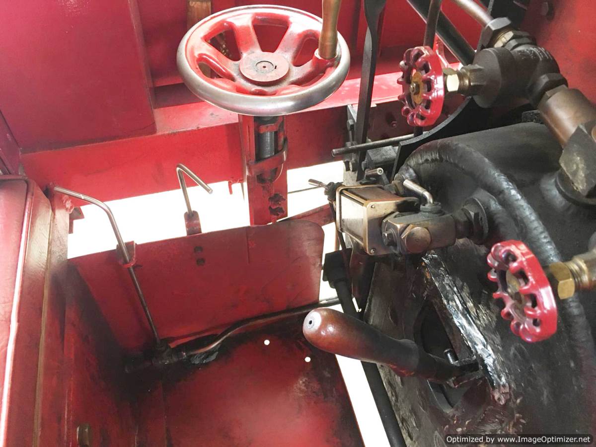 It steams freely enough as well. If you let the pressure drop below 100psi, then it does get a little bit gutless, but as long as you keep on top of the fire and maintain the pressure up where it belongs, it's a capable and fun machine. You will have to change gears to climb any sort of hill, but once in low gear it is a pretty good climber. Once on the flat or going down the other side, the high gears will produce a mildly scary turn of speed. The previous owner claims he's seen 30mph,...... we've not seen anything over 20, but even though the brakes are superb, we are all chickens who didn't really fancy making the front page of the Daily Mail.