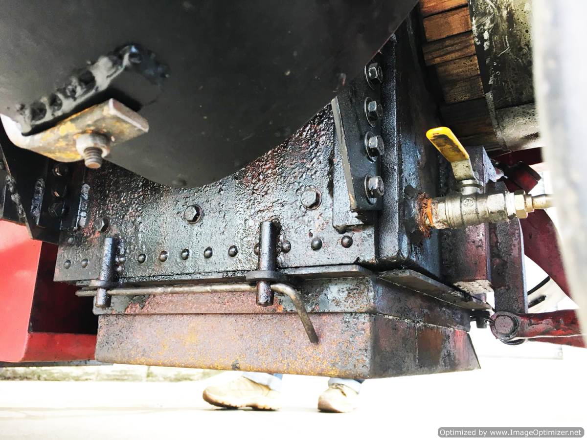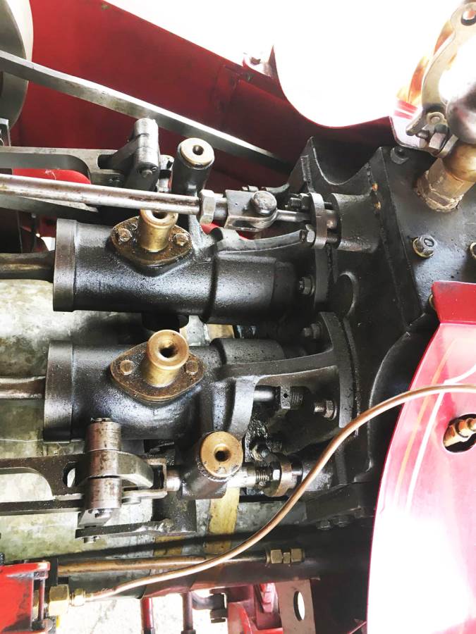 Mechanically the bottom end is nicely made, and hasn't seen a great deal of use or wear by the looks of it. The valve gear is a little crudely made and finished,..... that is to say it's not the prettiest set of machined rods that we've ever seen,..... but it's none the less functional for it. It certainly runs well enough as our little film running to Mcdonalds and round the yard here at the works can testify.