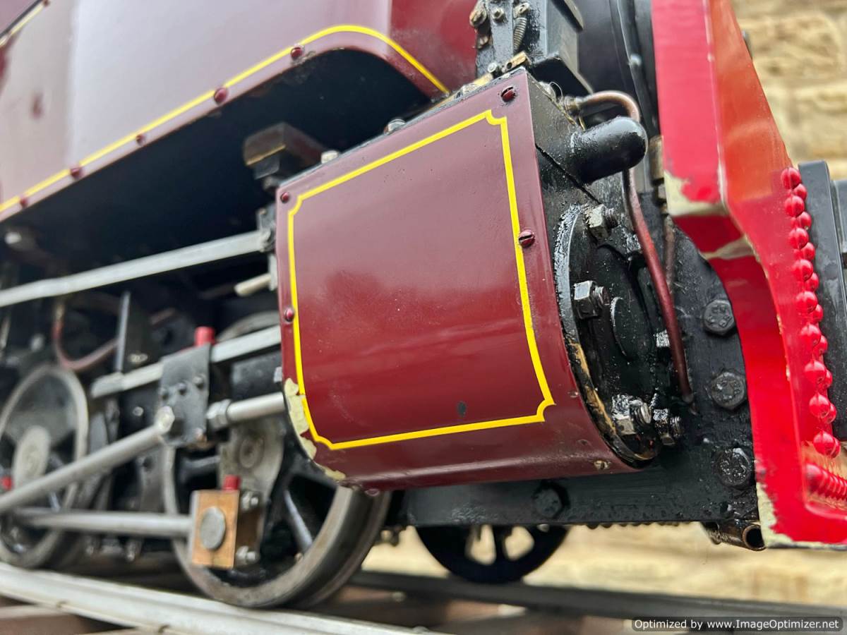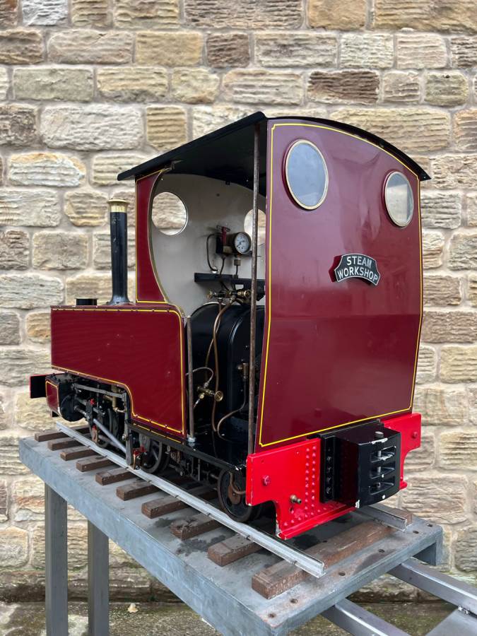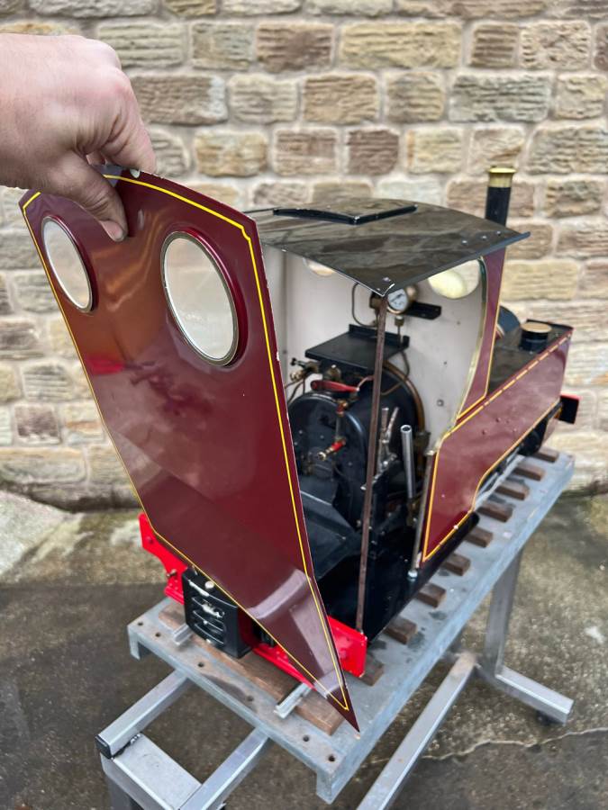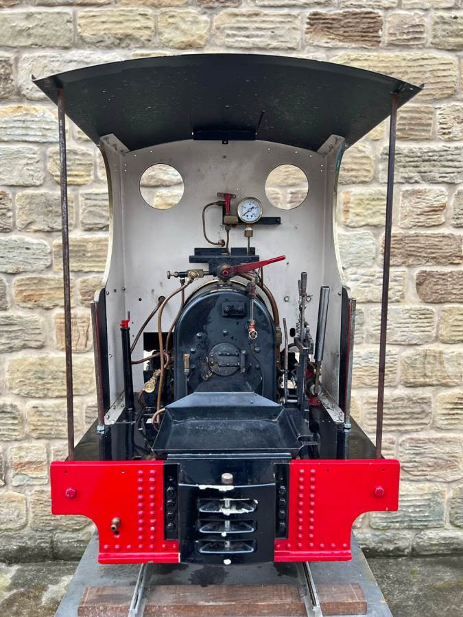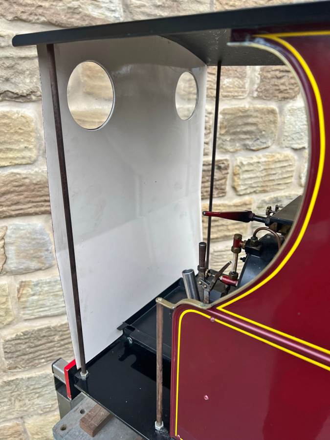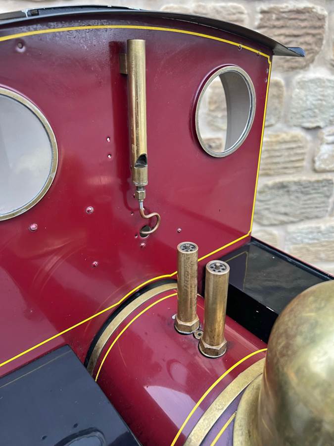 Here we have a 7 1/4" gauge Maxitrak Opal. A great size loco this for getting into 7 1/4" gauge. It's large enough to not be at all fiddly to drive, superb for kids to get used to, but a lot of the 'bulk' is the tanks and cab rather than the mechanicals so it isn't a hugely heavy engine to move about. The boiler is professionally made silver soldered copper by Maxitrak, and of course comes with fresh hydraulic and steam tests. Cosmetically she's been used with the off scuff and paint chip here and there, but there's no significant mechanical wear to worry about.