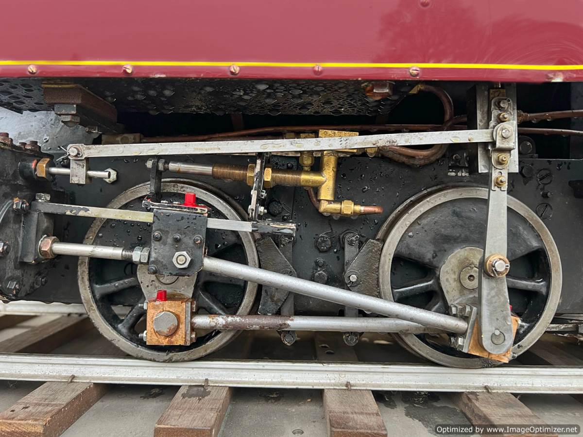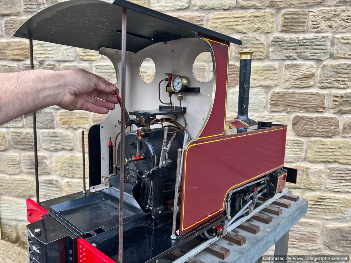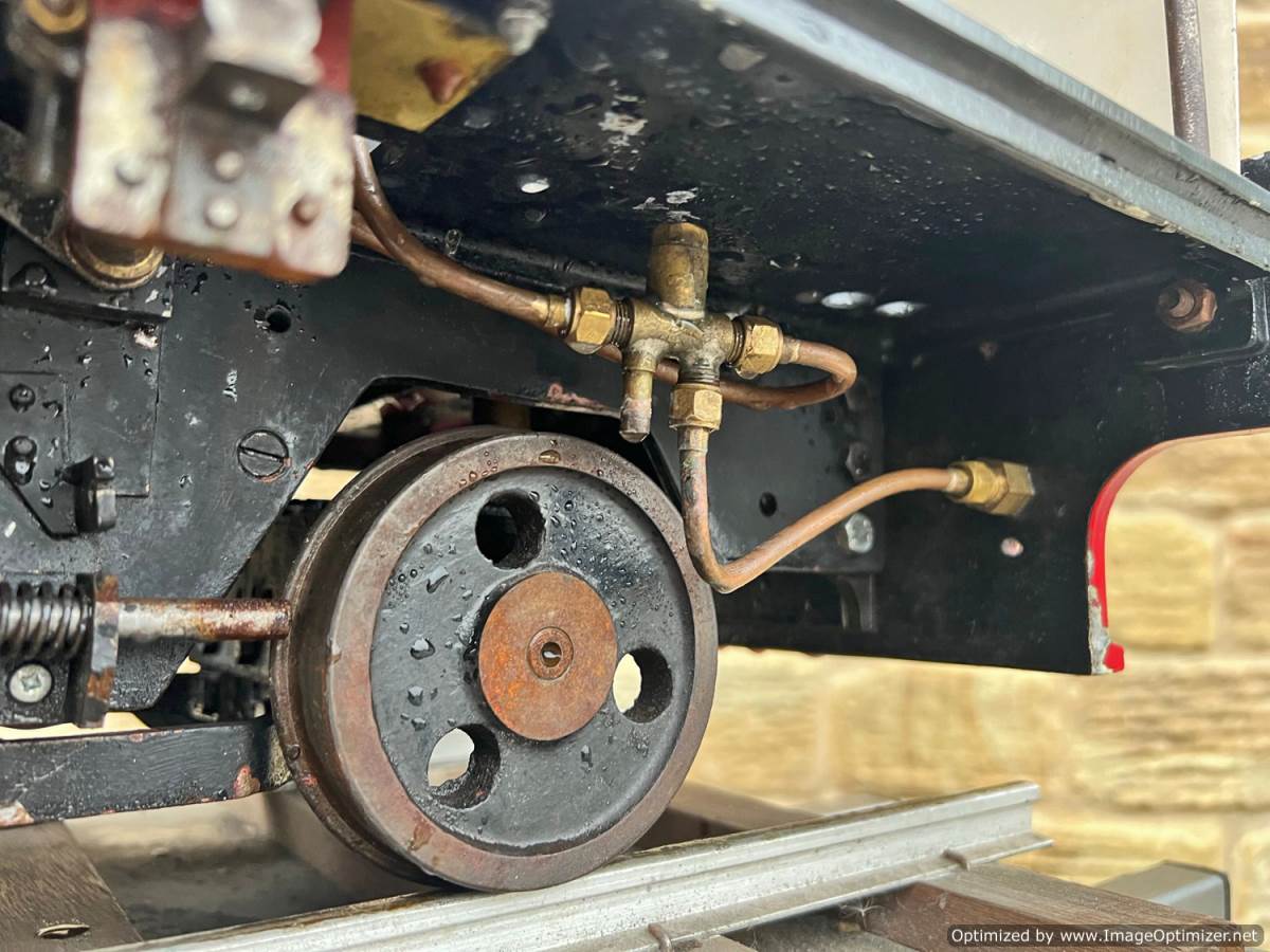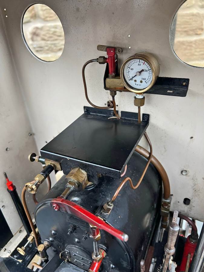 Fitted with an injector as well as a crosshead water pump with footplate mounted bypass valve and of course a large hand pump on the footplate. Lubrication is mechanical with the pot visible on the front of the right hand side tank.