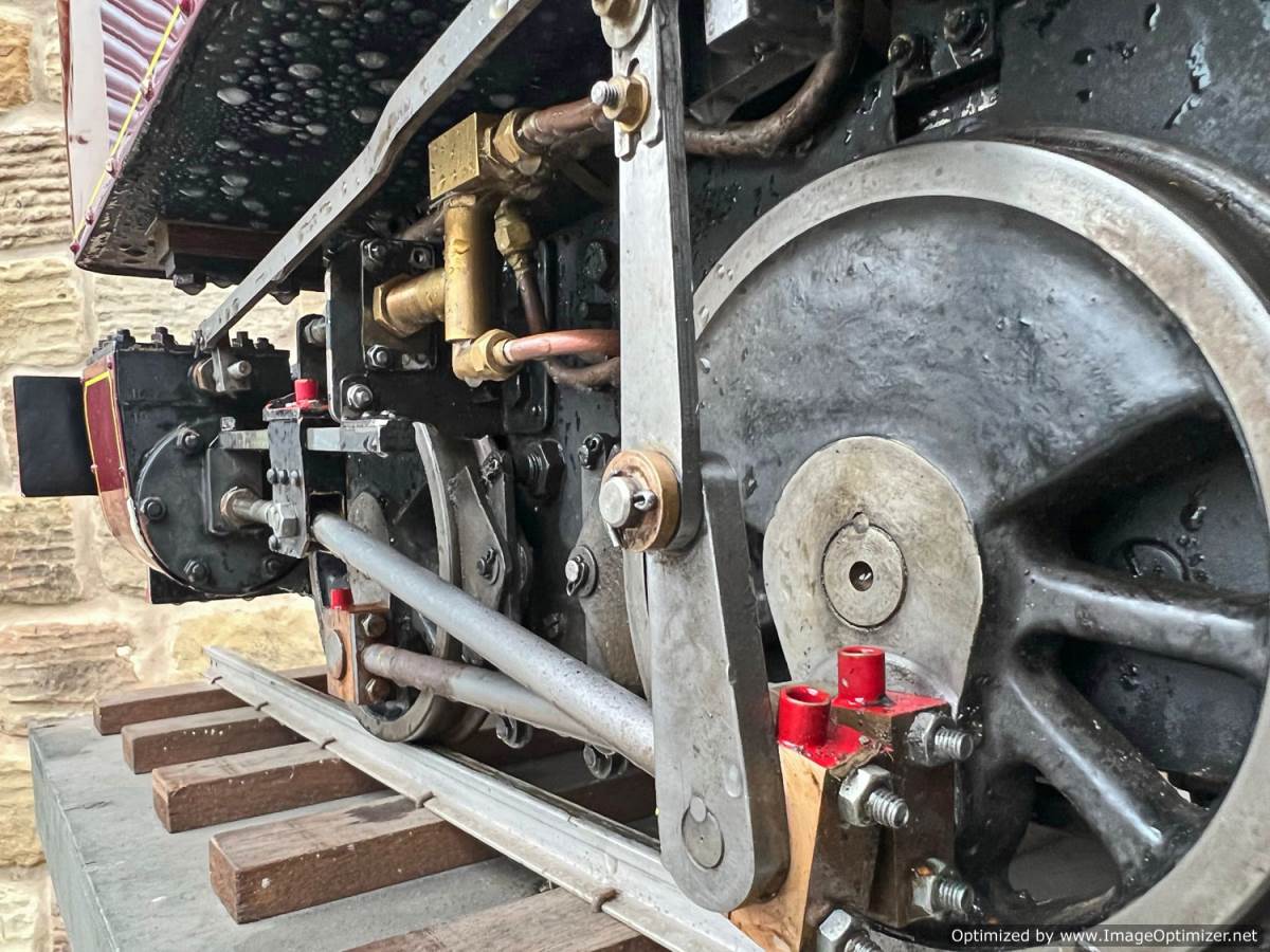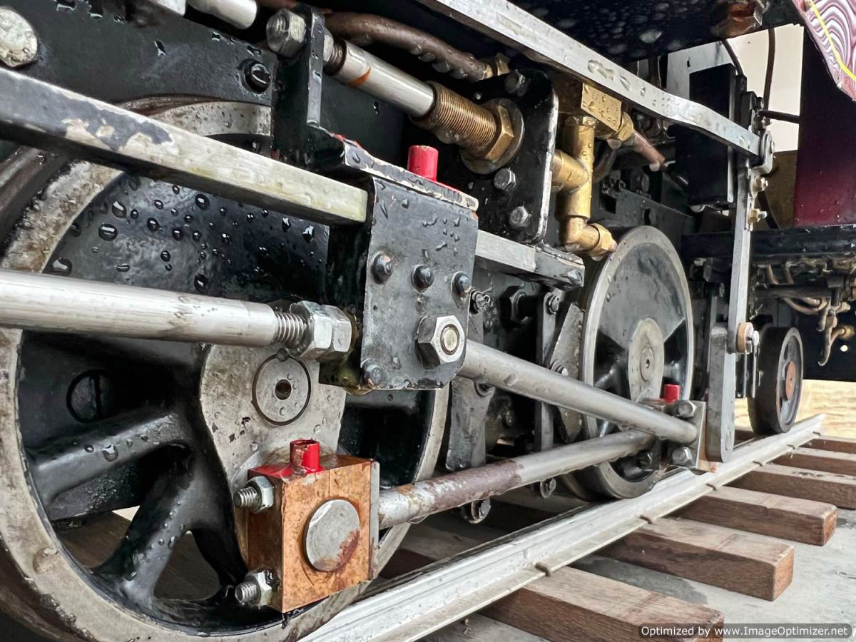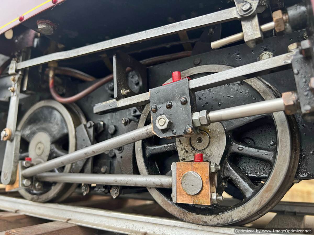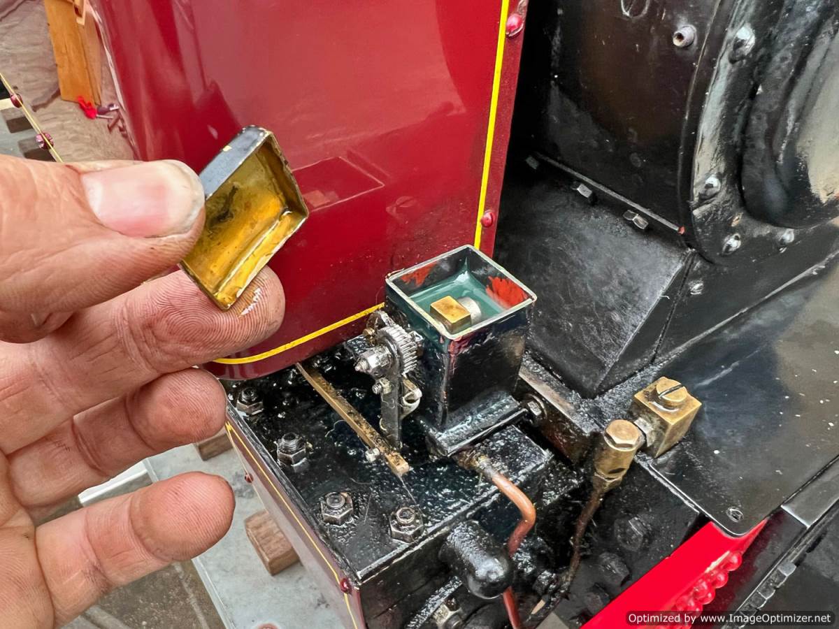 Fitted with an injector as well as a crosshead water pump with footplate mounted bypass valve and of course a large hand pump on the footplate. Lubrication is mechanical with the pot visible on the front of the right hand side tank.