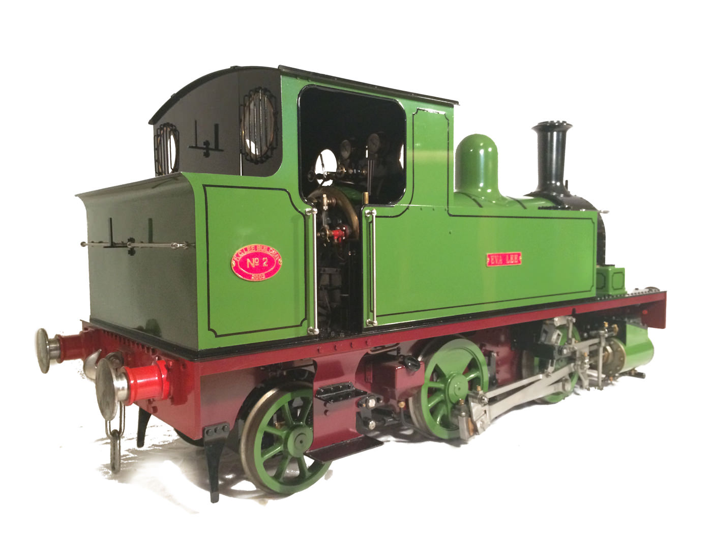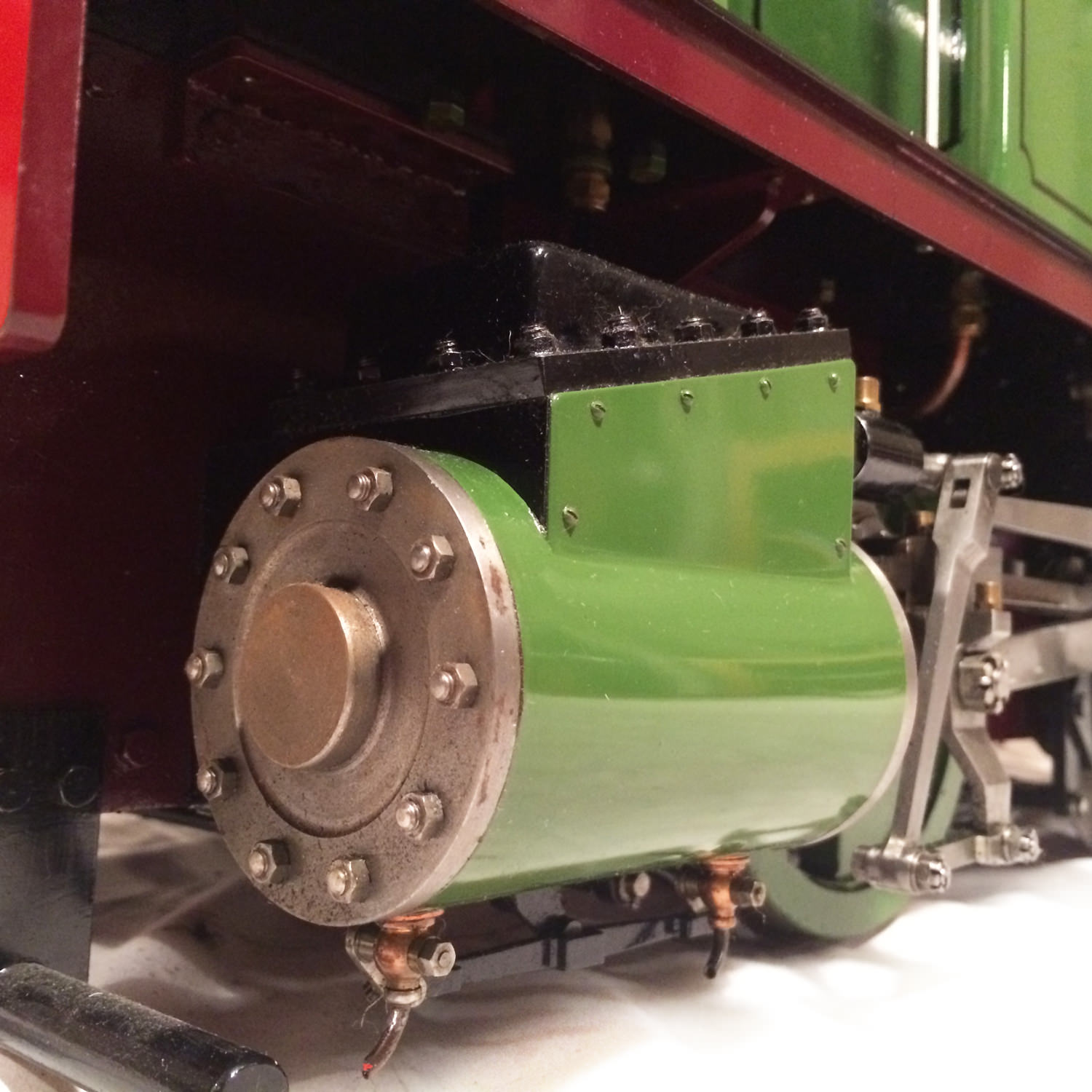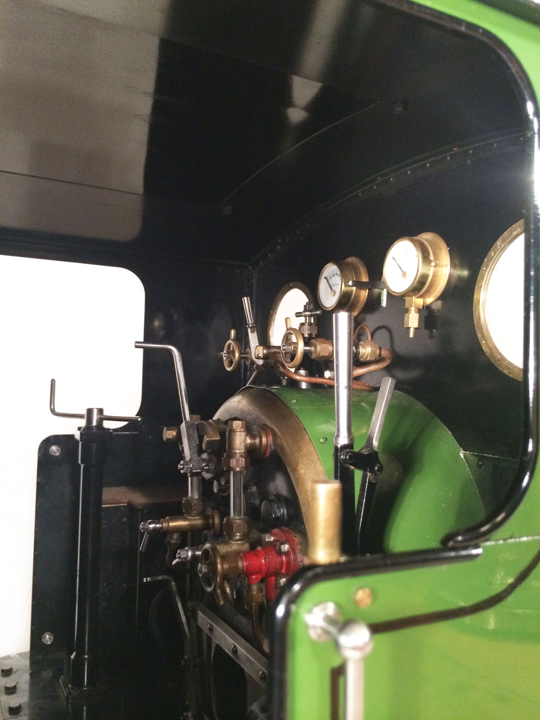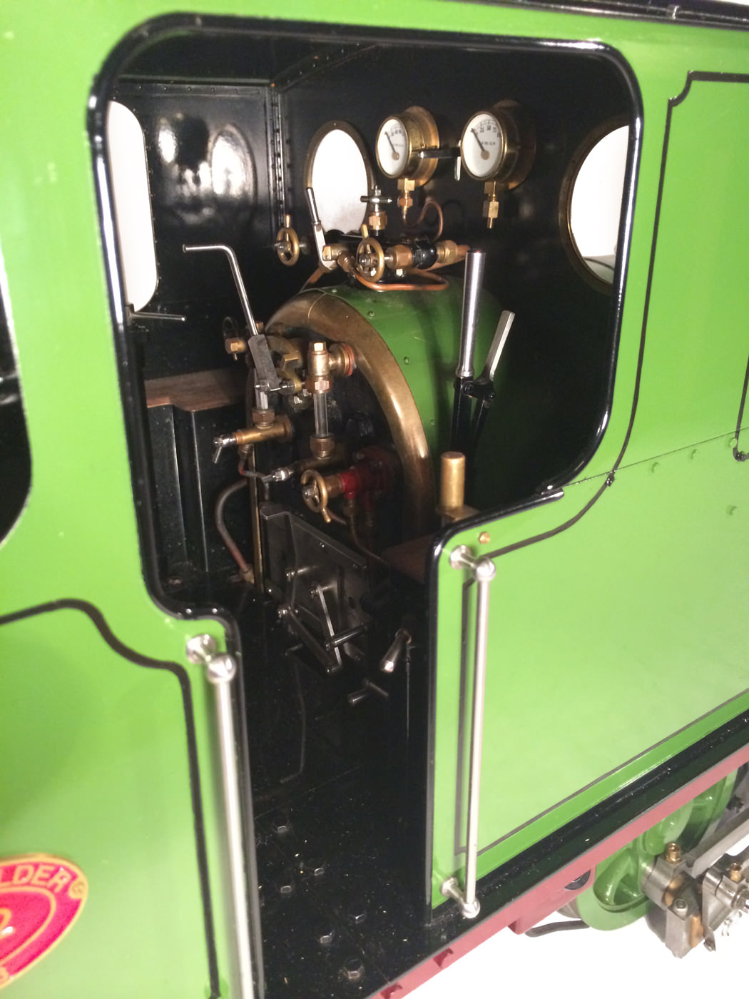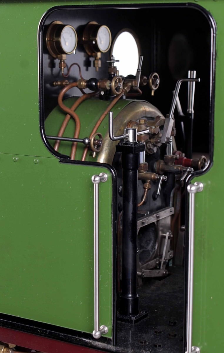 She was built by the late Mr. Fred Lee, a very skilled model engineer to the well proven design by Ken Swan. The boiler is obviously copper and silver soldered, and is fitted with all the usual things you'd like to see. Twin water gauge glasses, pressure gauges, (vacuum and steam) injector, and cab operated cylinder drain cocks.